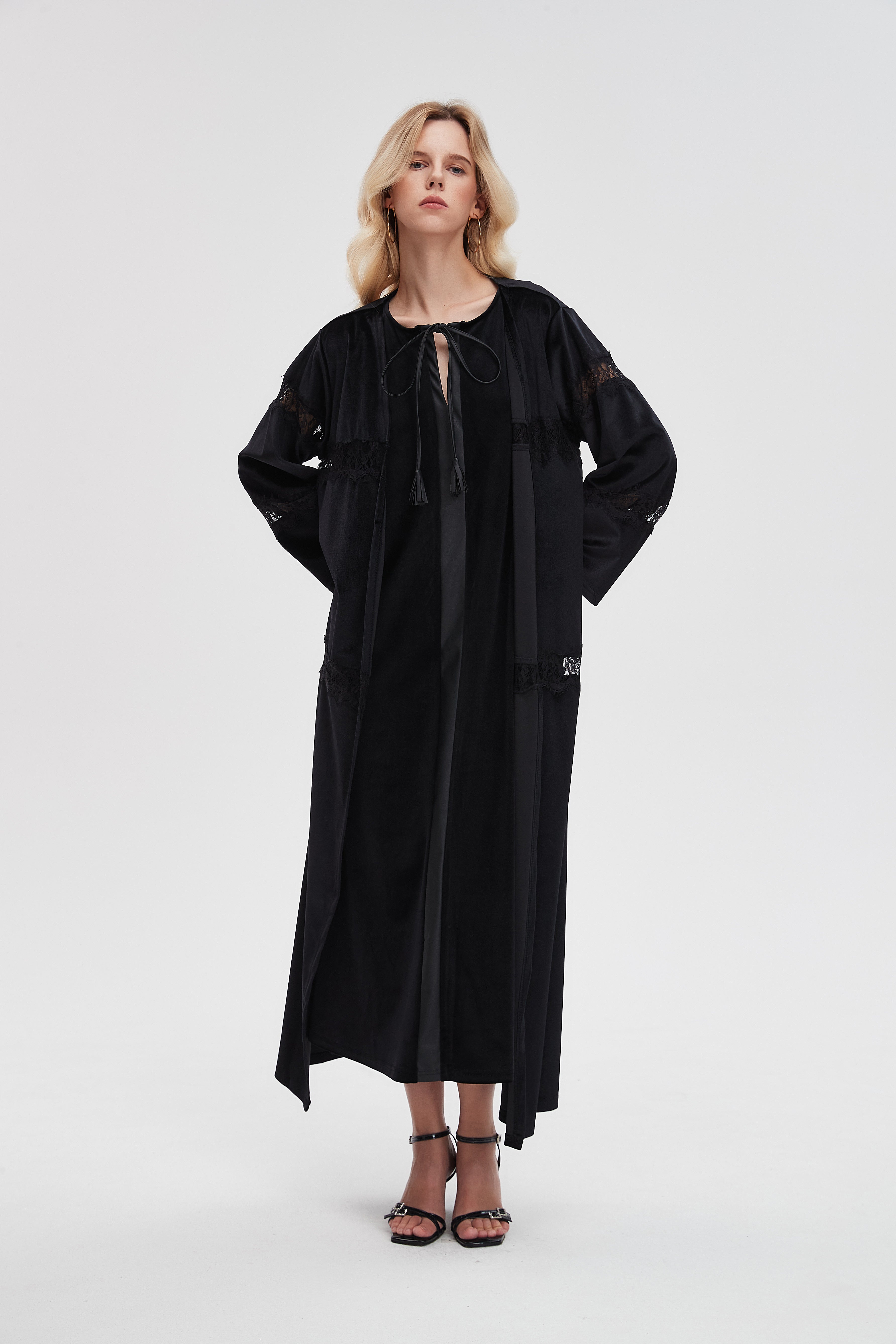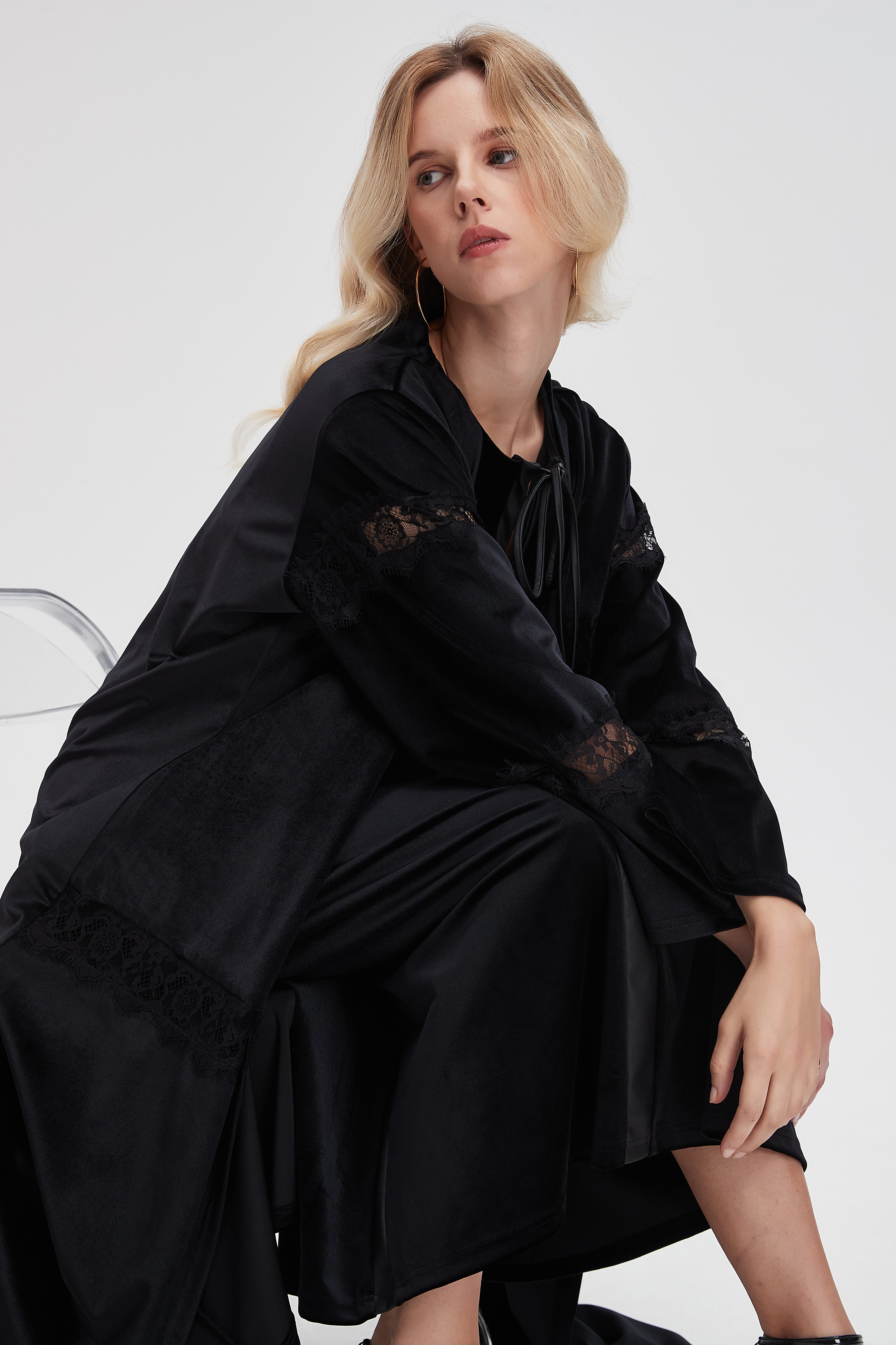 This long jacket with lace detailing adds an elegant touch to your look for every occasion. Combining elegance and comfort, its unique design highlights a woman's beauty and instills exceptional confidence. Suitable for all seasons, this jacket can be easily paired with a variety of outfits, making it an ideal choice for work or a night out with friends. The lace detailing adds a touch of delicacy and femininity, making it a must-have in your wardrobe. Don't miss out—order now for an exceptional look! Product number: lv0271w254jn