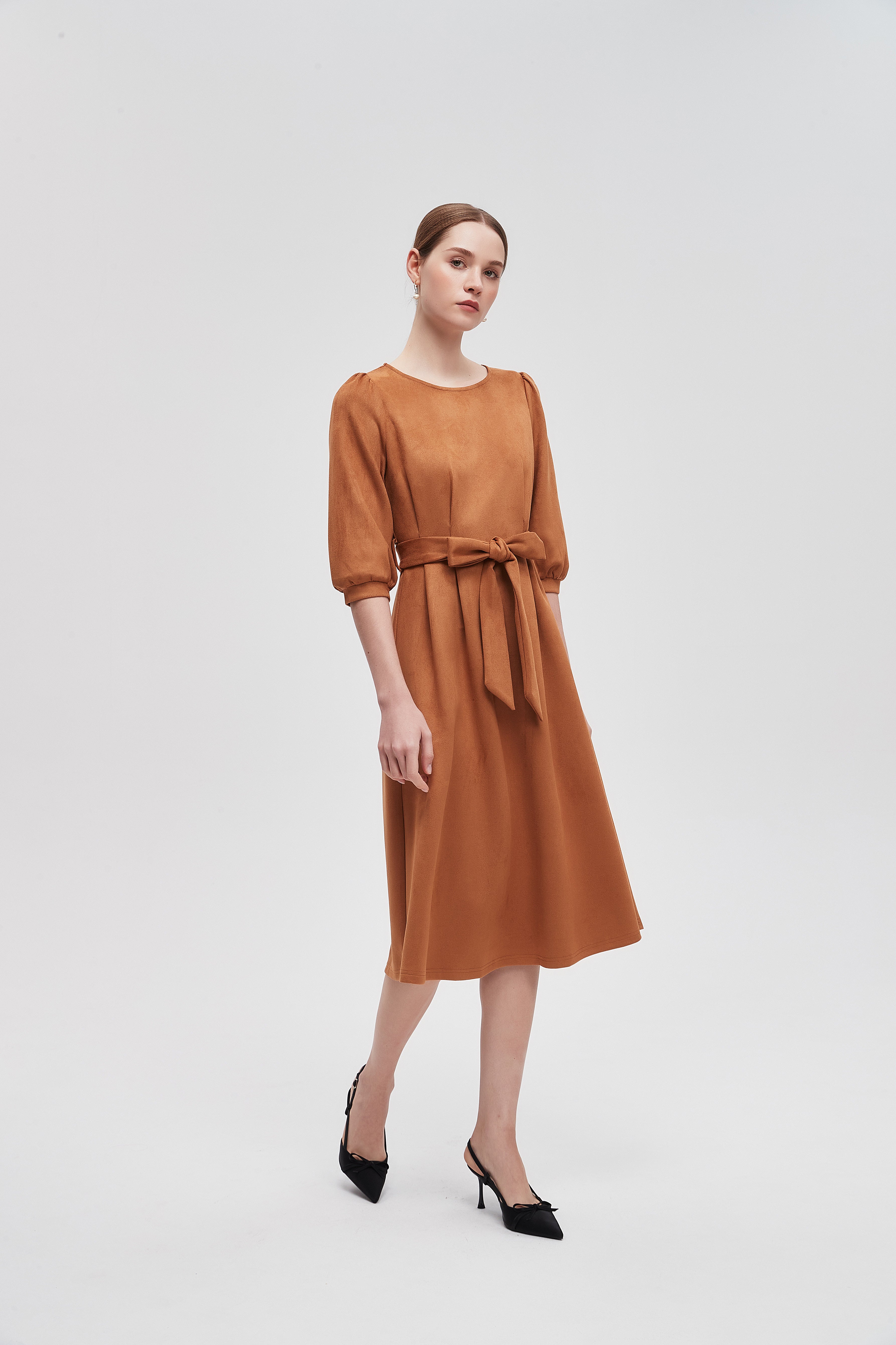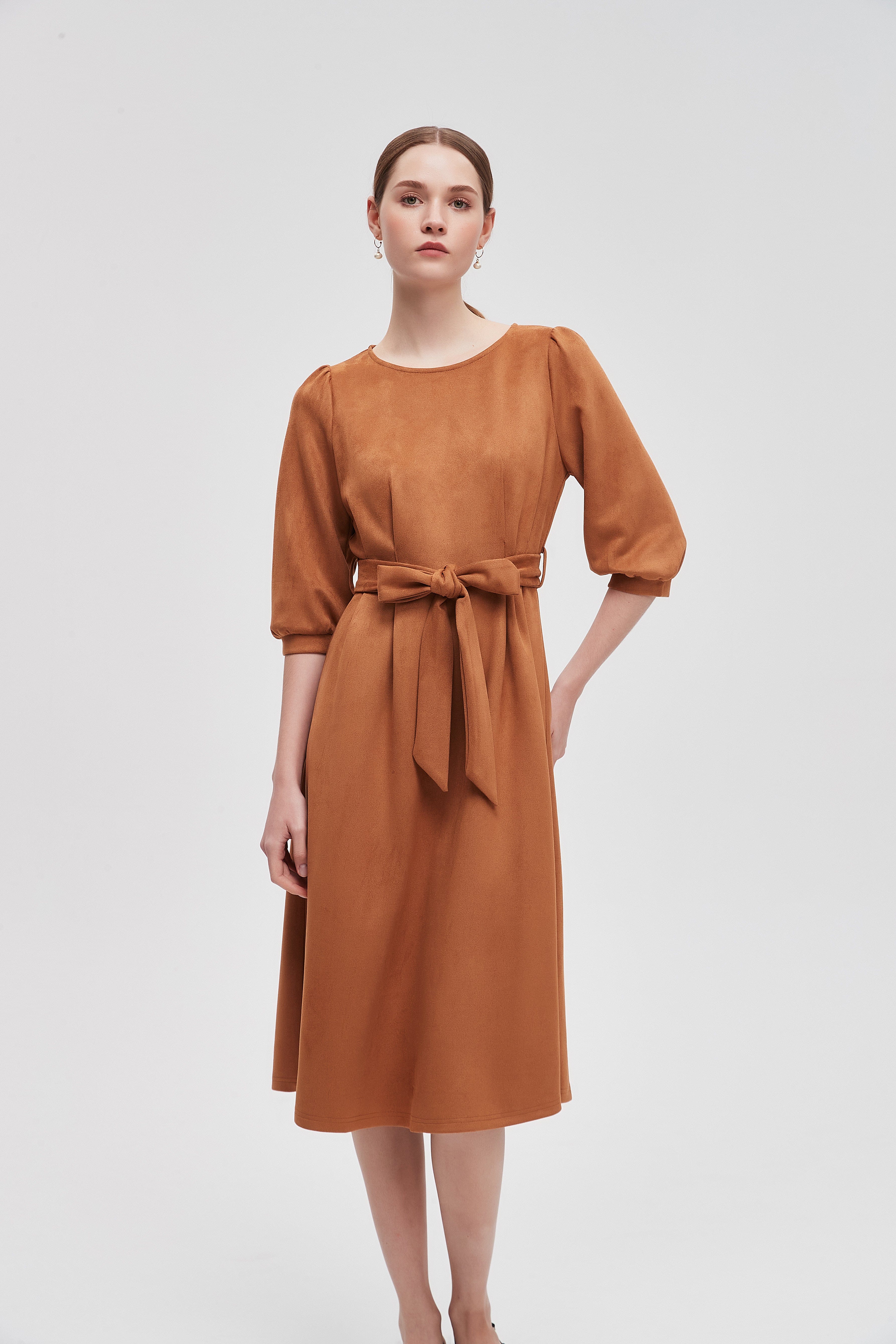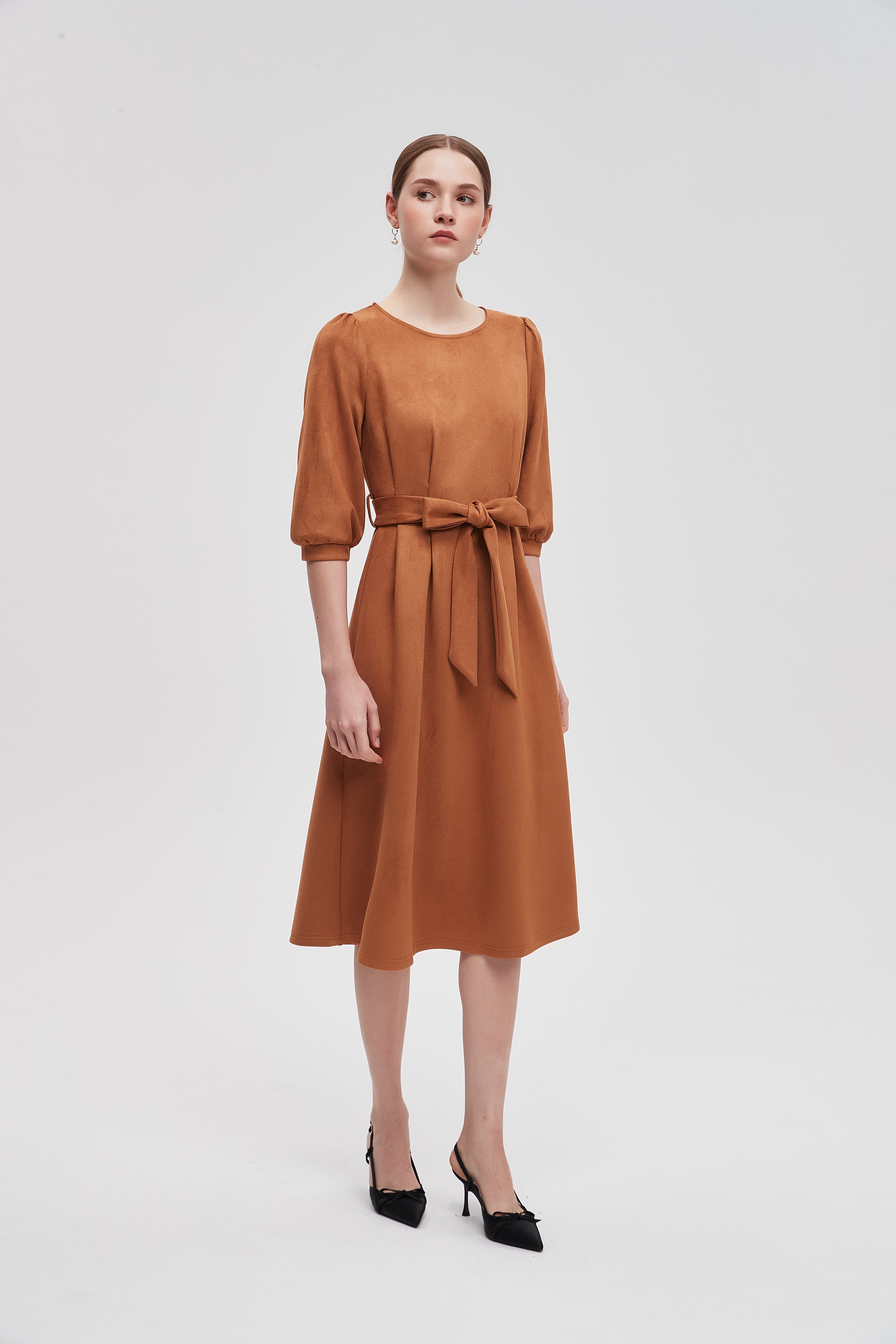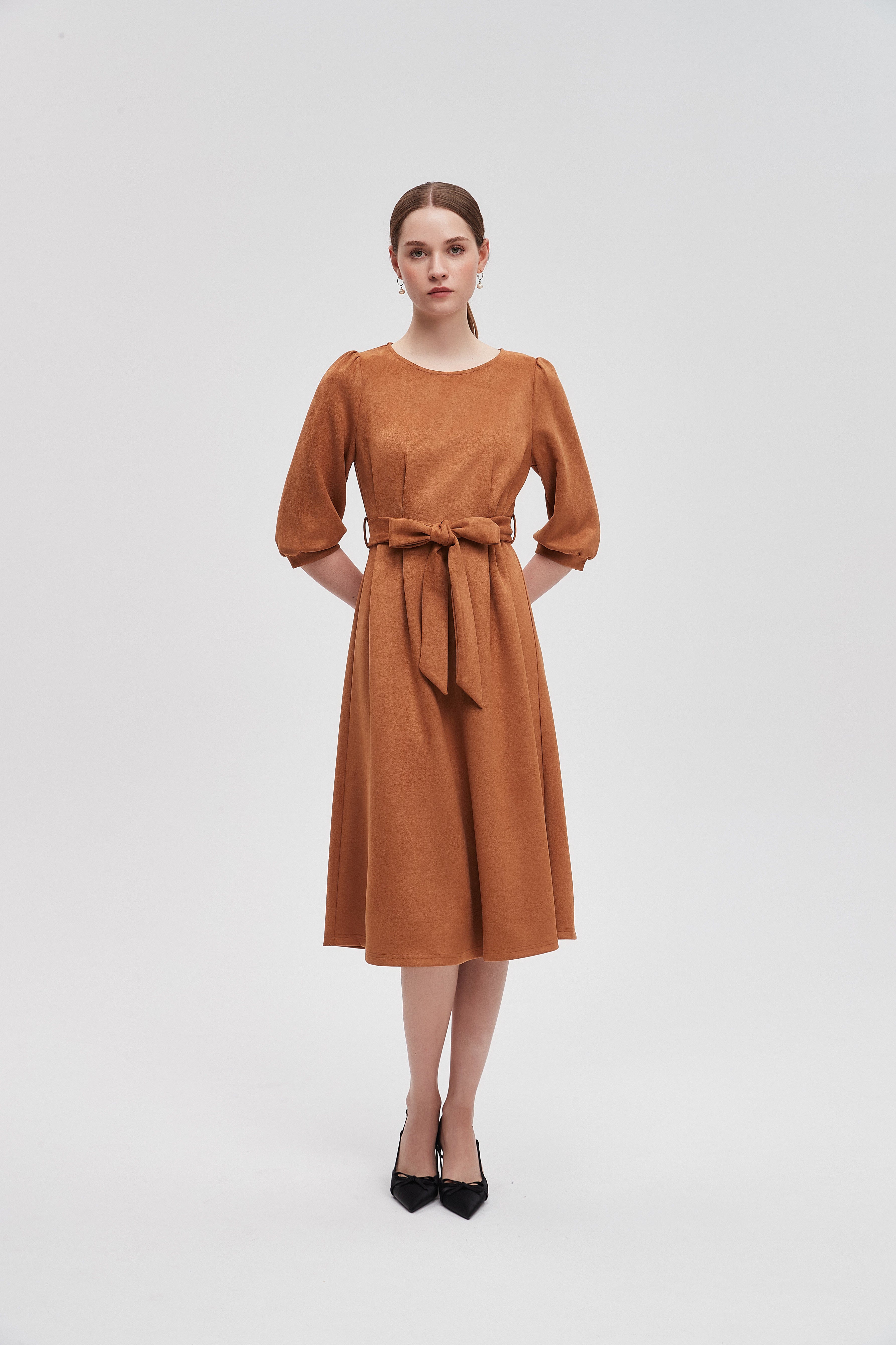 Every wardrobe deserves a classic piece that combines comfort and style effortlessly. The Plain 3/4 Sleeve Knee Length Dress is designed to be your go-to outfit for any occasion. Its simple yet elegant silhouette flatters all body types, while the knee-length cut provides a perfect balance between casual and chic. The 3/4 sleeves offer a touch of sophistication, making it suitable for both daytime outings and evening gatherings. Product Number: lv0330w254wn