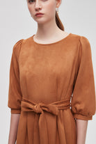 Plain 3/4 Sleeve Knee Length Dress