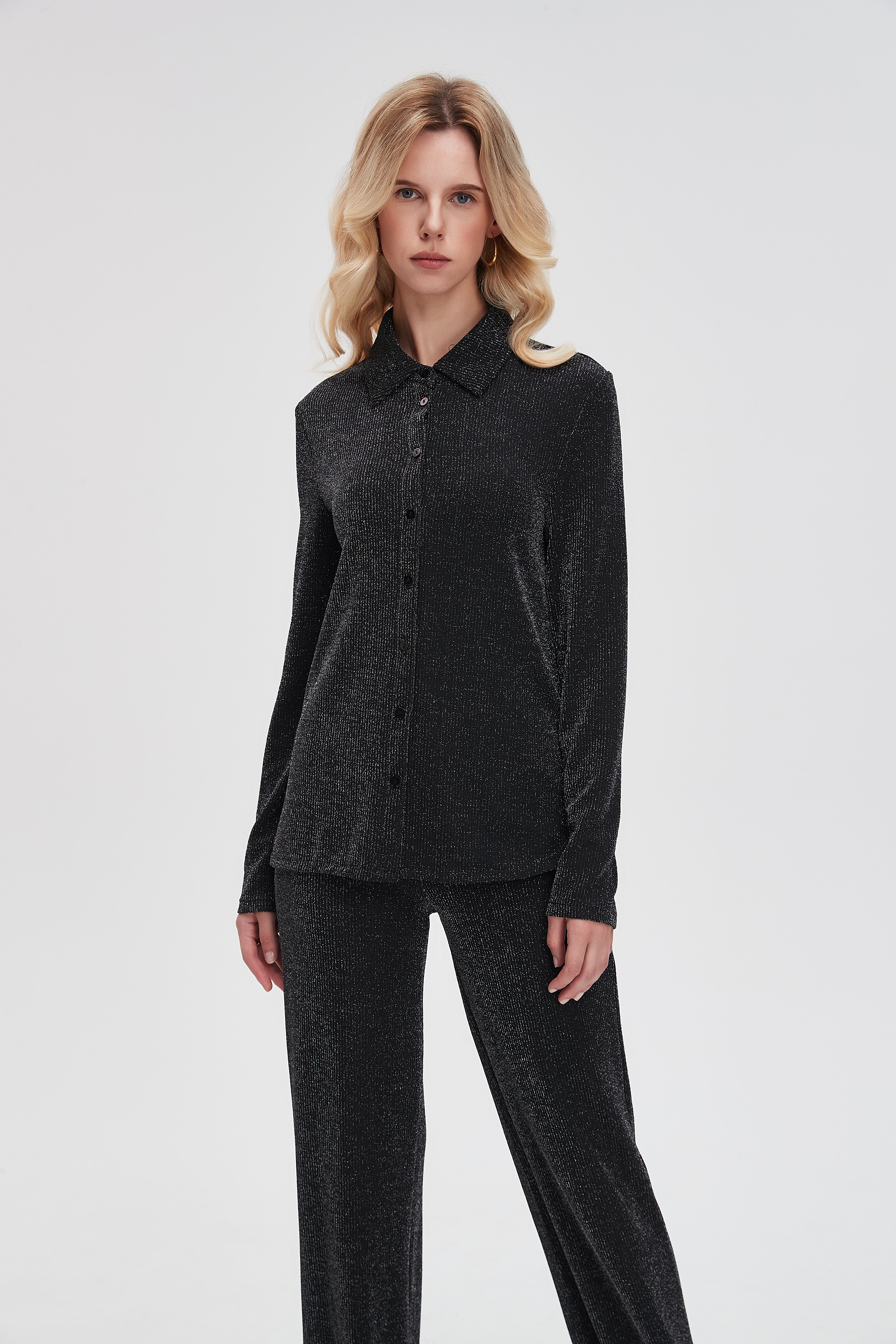 This long-sleeved ribbed button-front blouse is the perfect choice for every woman seeking both style and comfort. Featuring a modern design that flatters your figure, the front buttons add a touch of elegance and sophistication. It can be easily paired with jeans or a skirt for a stunning look at various occasions. Whether you're at work or out with friends, you'll feel comfortable and confident in this soft fabric blouse. Don't miss out—order your blouse online now and enjoy a unique look! Product number: lv0346w254vt