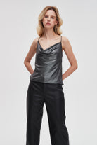 If you're looking for a touch of modern elegance, the "Shiny Spaghetti Strap Top" is the perfect choice for you. This top features an elegant design that highlights your feminine beauty. It comes in a shiny color that adds a touch of sparkle to any occasion. Its thin straps add a touch of delicacy and softness, making it a great choice for pairing with your favorite jeans or skirt. This top is more than just a piece of clothing; it's an expression of your personal style. Crafted from high-quality materials, it ensures all-day comfort, whether at work or on a special evening out. Product number: lv0372w254cz