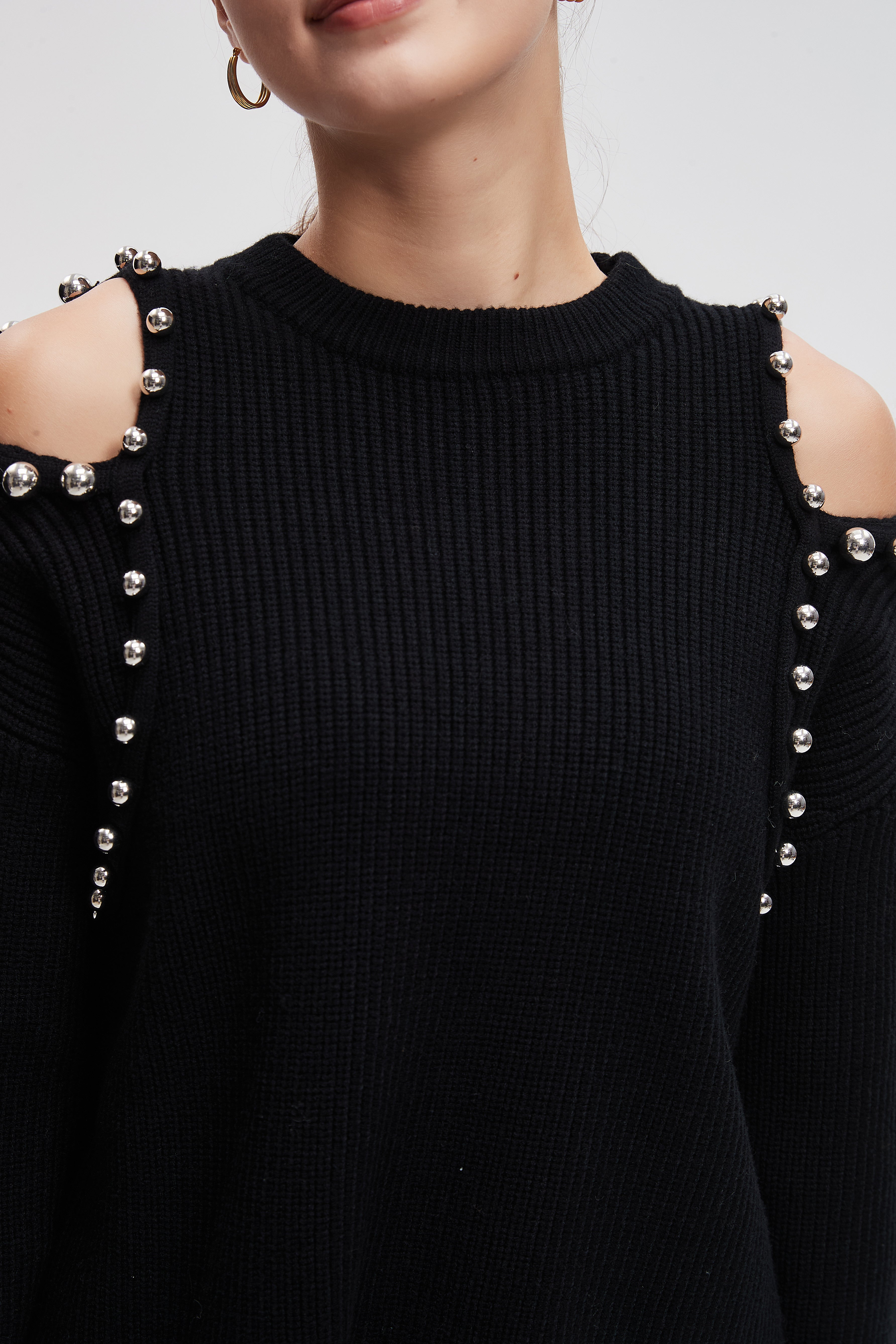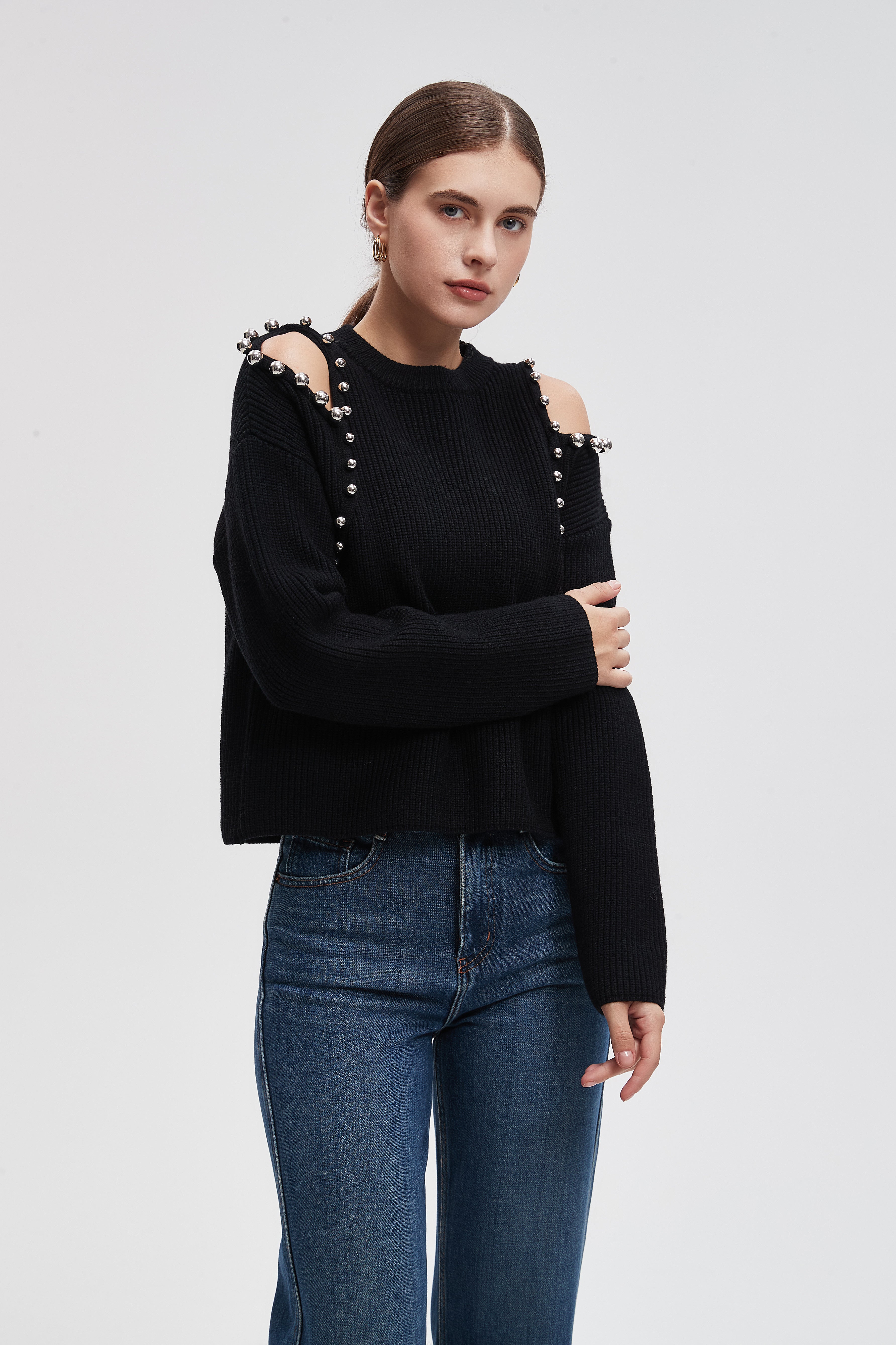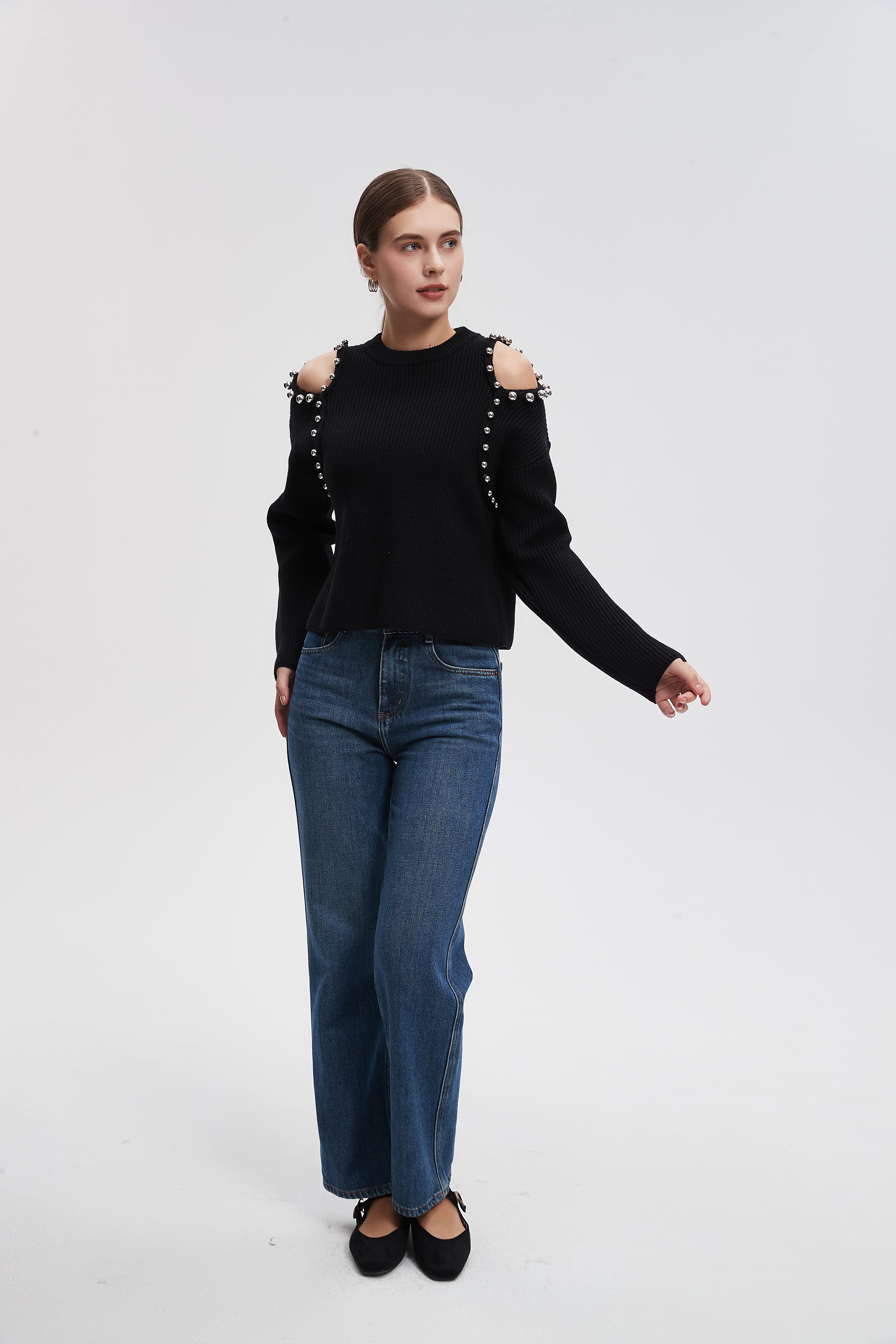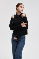 Long Sleeve Off-Shoulder Blouse with Embellished Stones