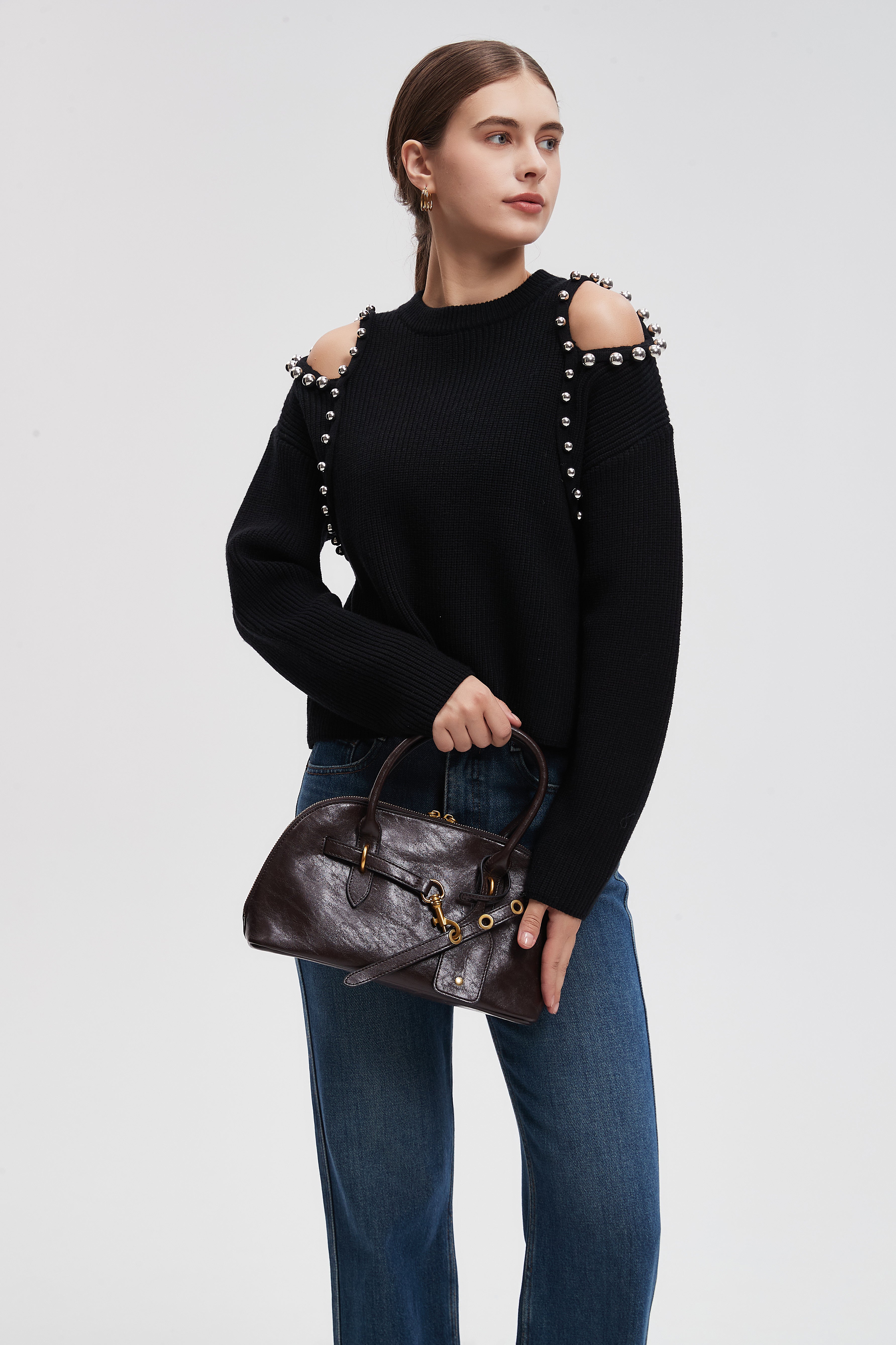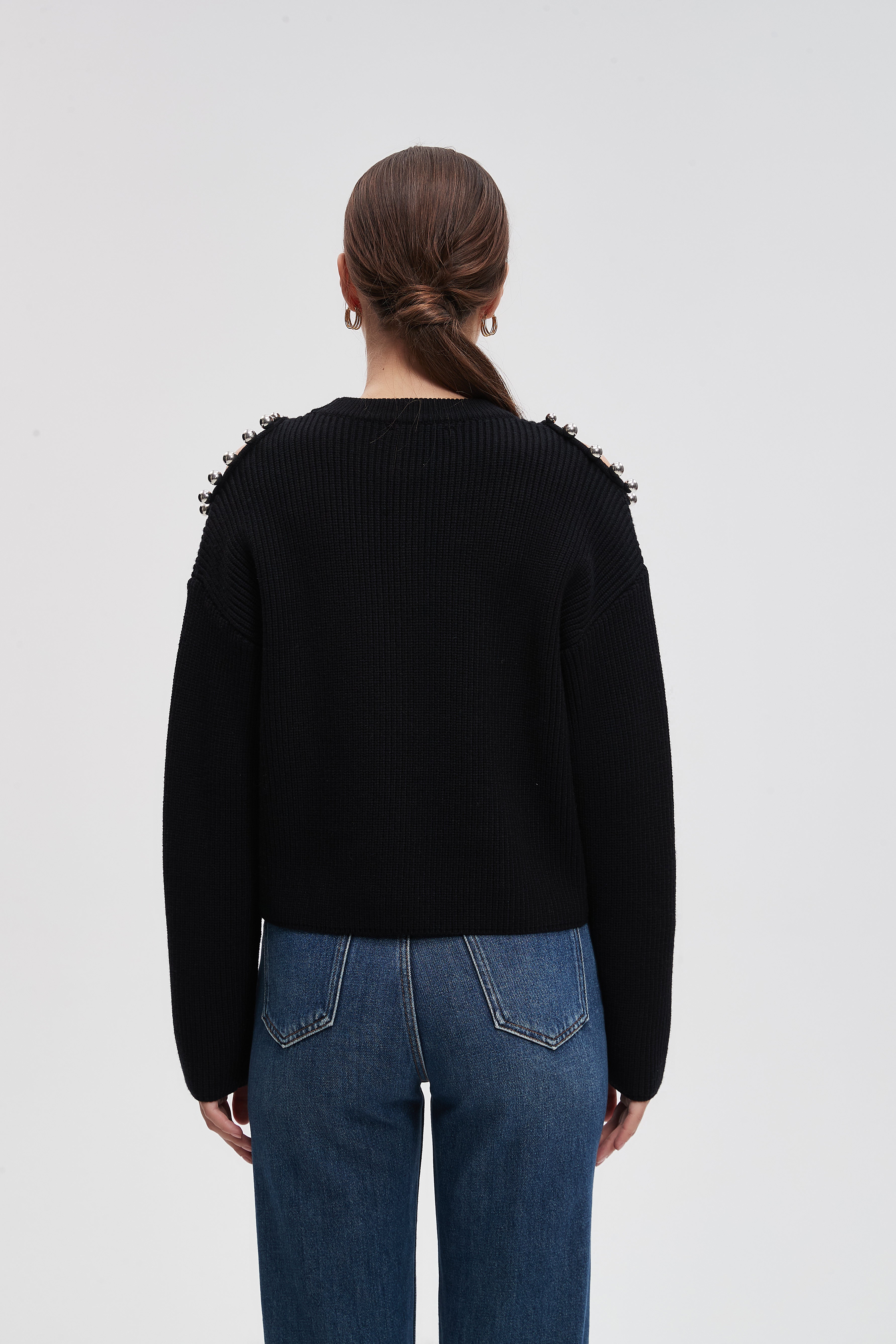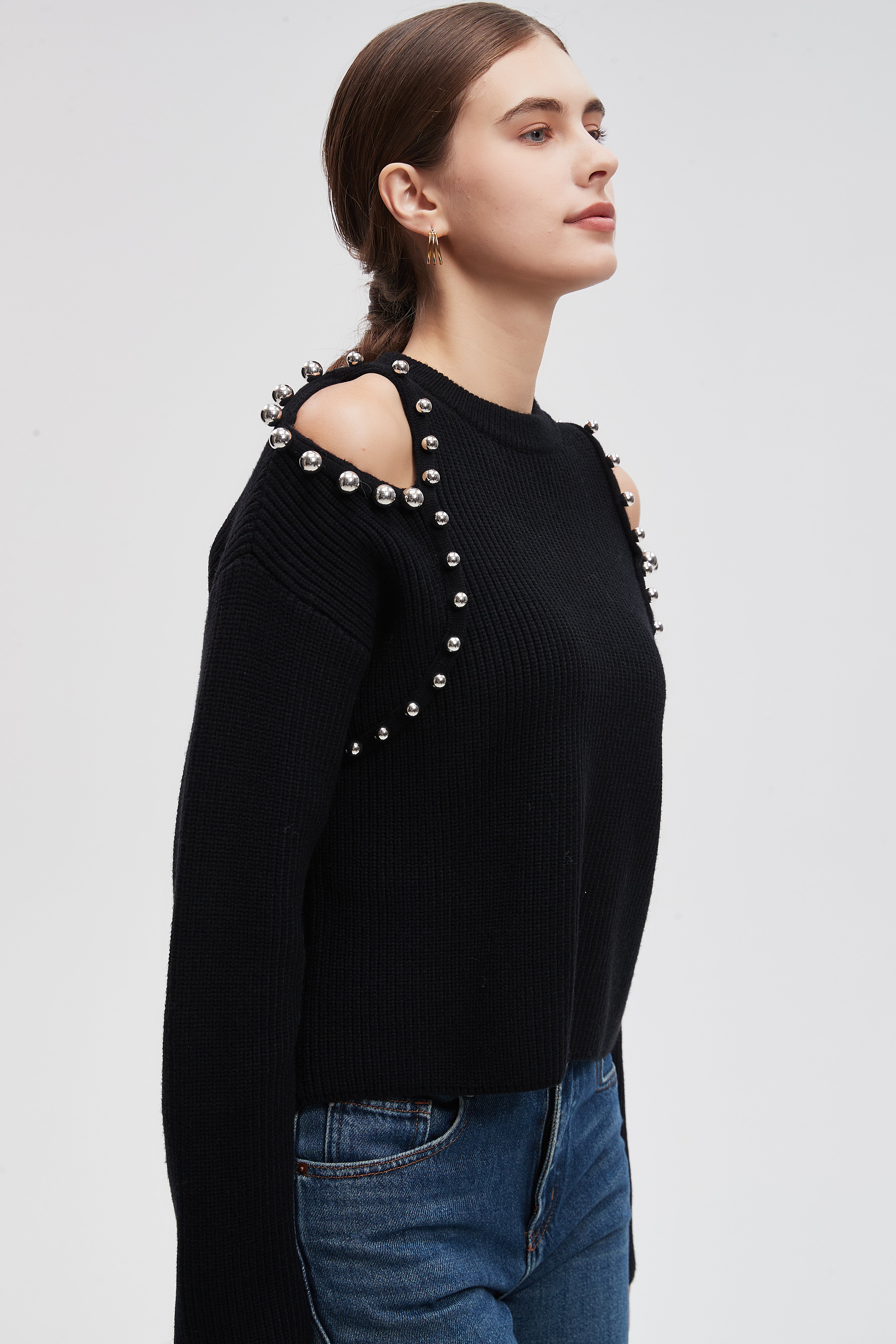 Long Sleeve Off-Shoulder Blouse with Embellished Stones