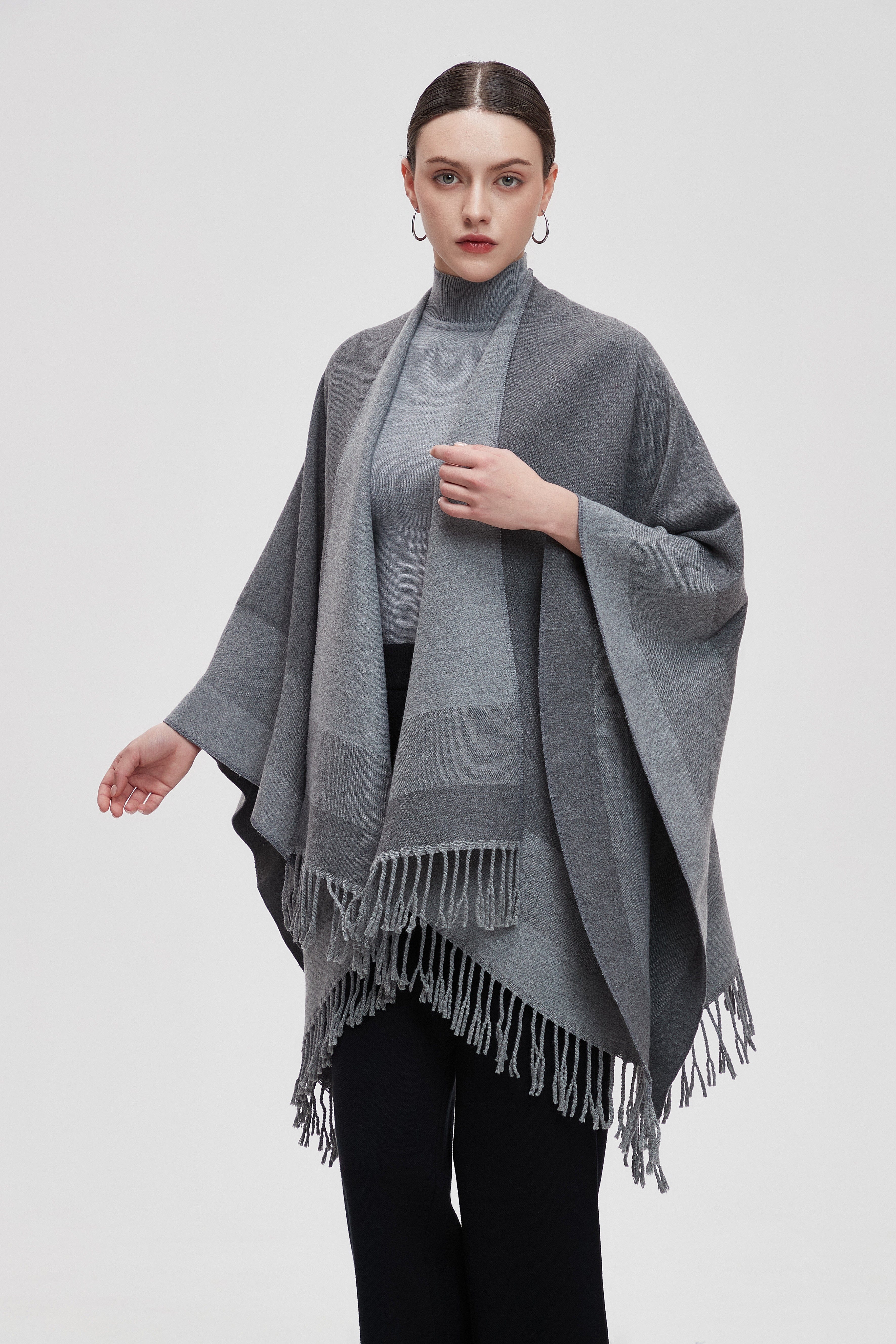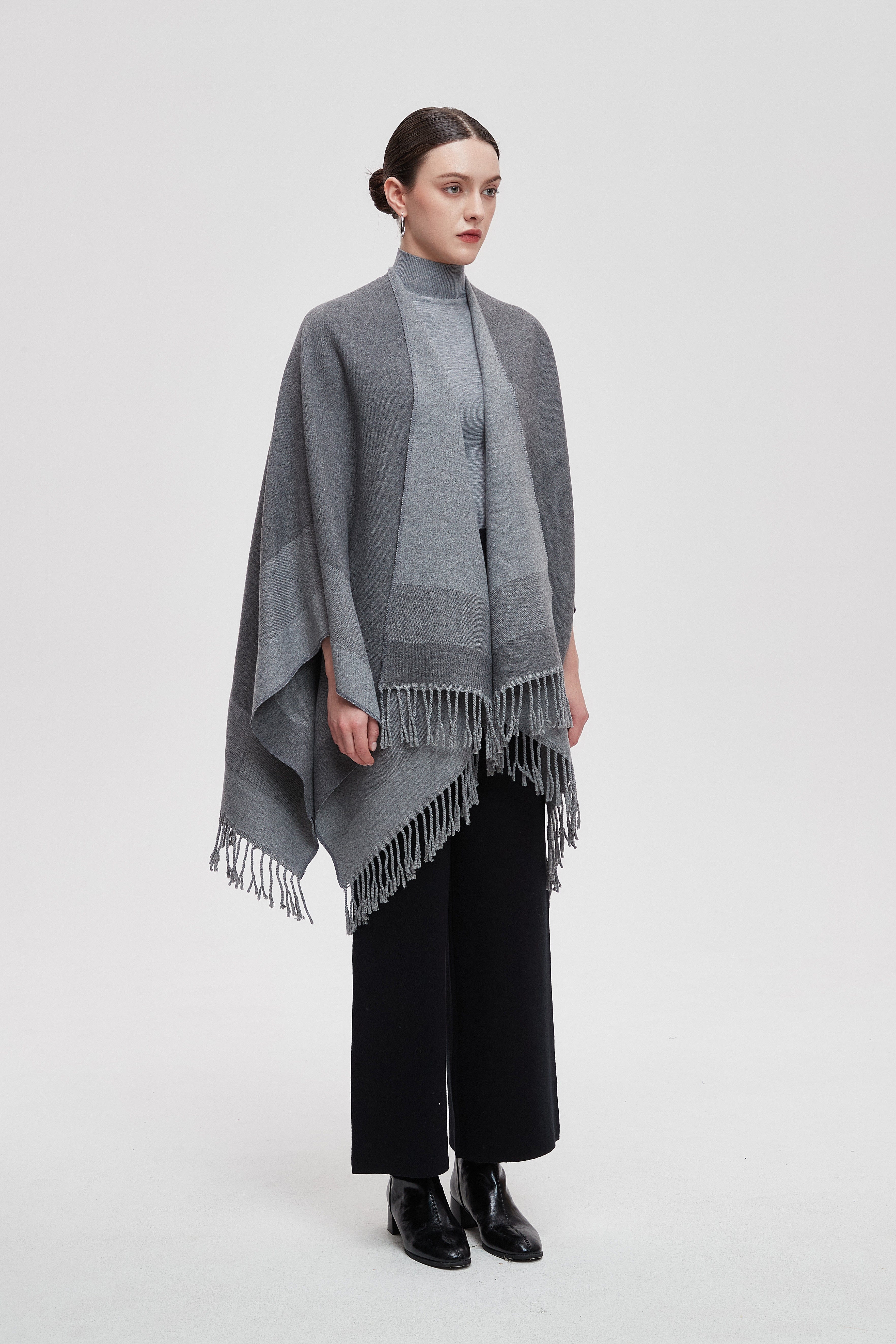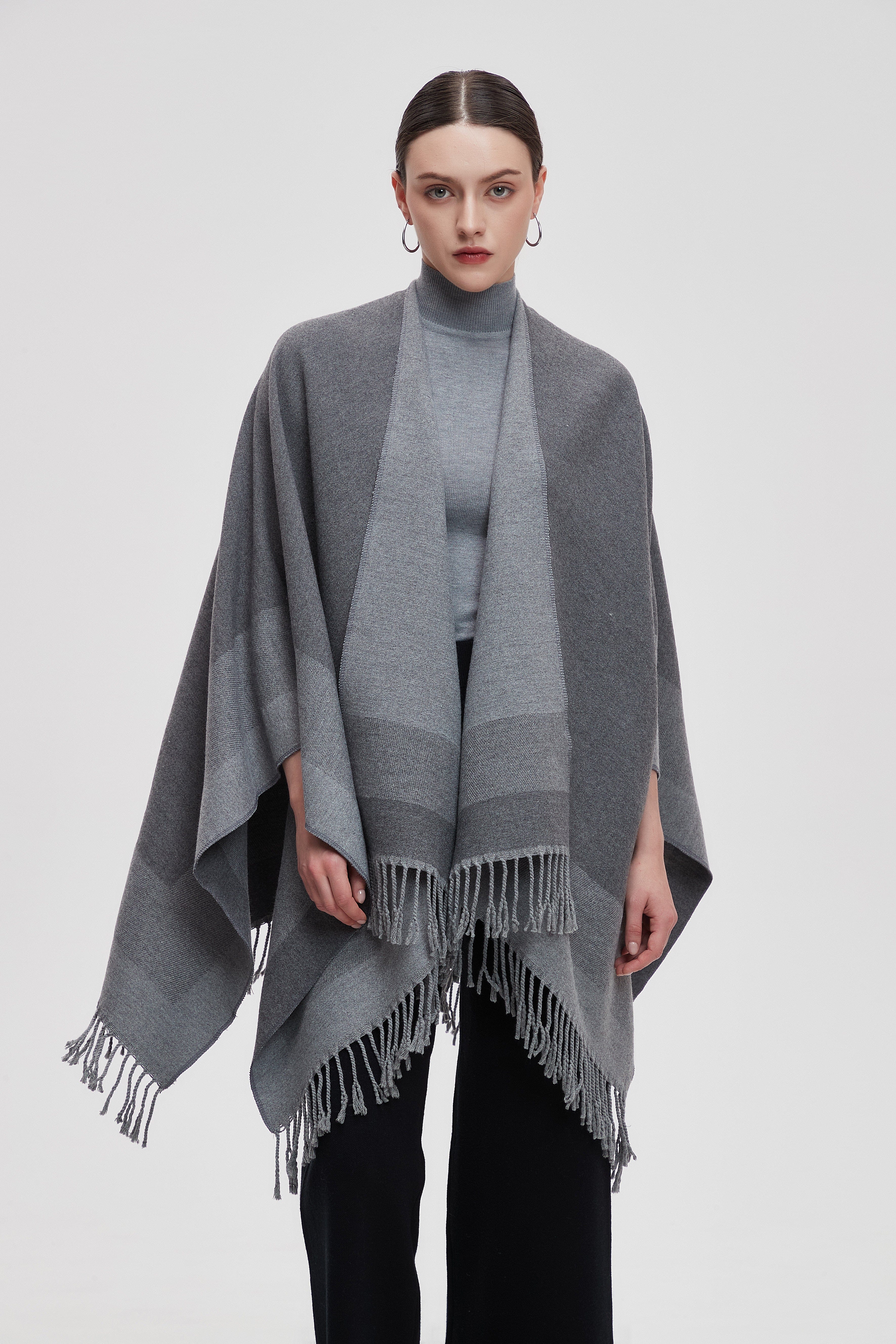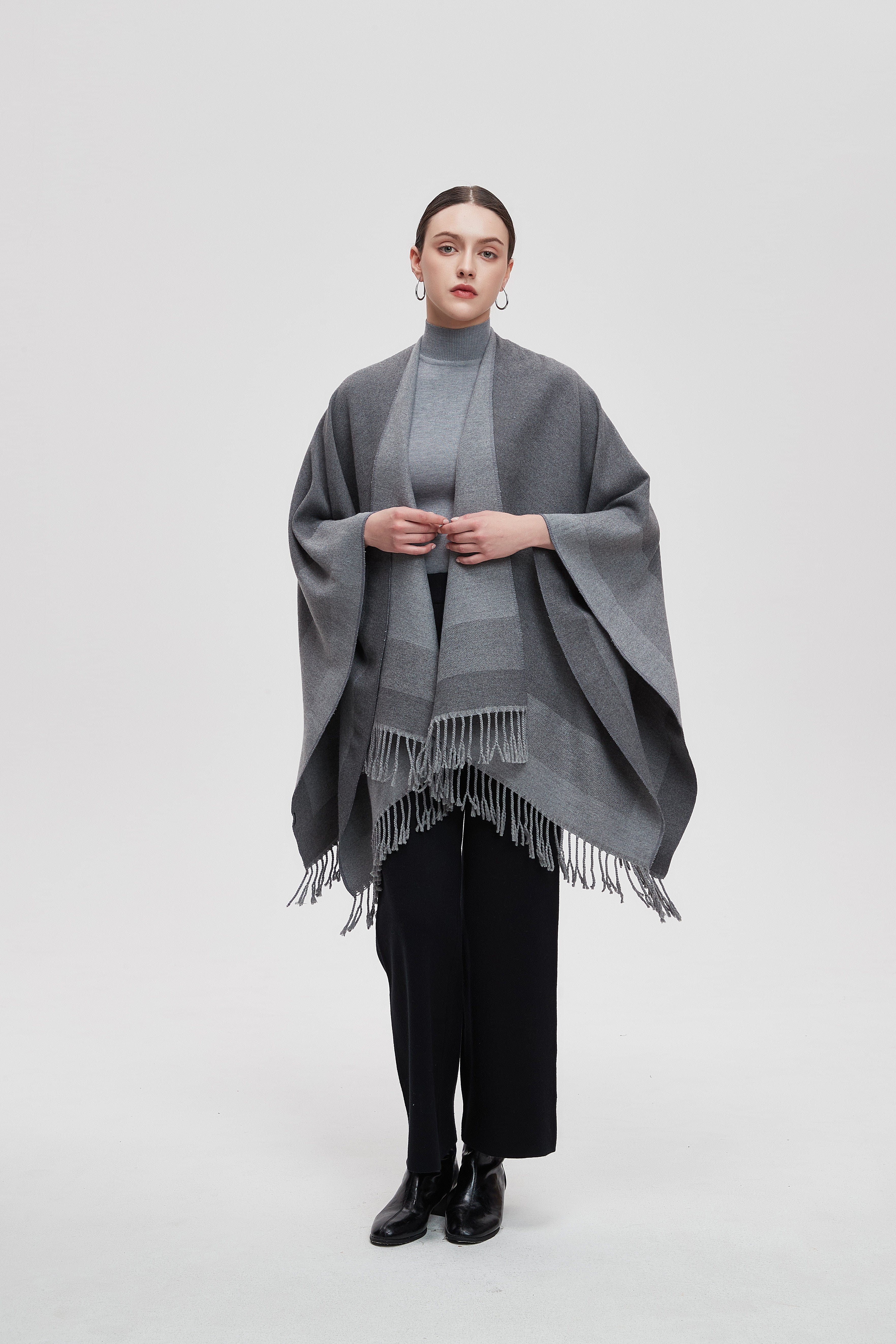 Wrap yourself in the charm of our Long Gradient Color Poncho with Long Sleeves, where comfort meets style. This poncho is designed to make a statement while keeping you cozy. The beautiful gradient colors flow seamlessly, adding a touch of elegance to any outfit. Perfect for layering, it features long sleeves that provide warmth without sacrificing style. Whether you're heading to a casual outing or enjoying a relaxing day at home, this poncho is your go-to choice. Product Number: m2025q4030