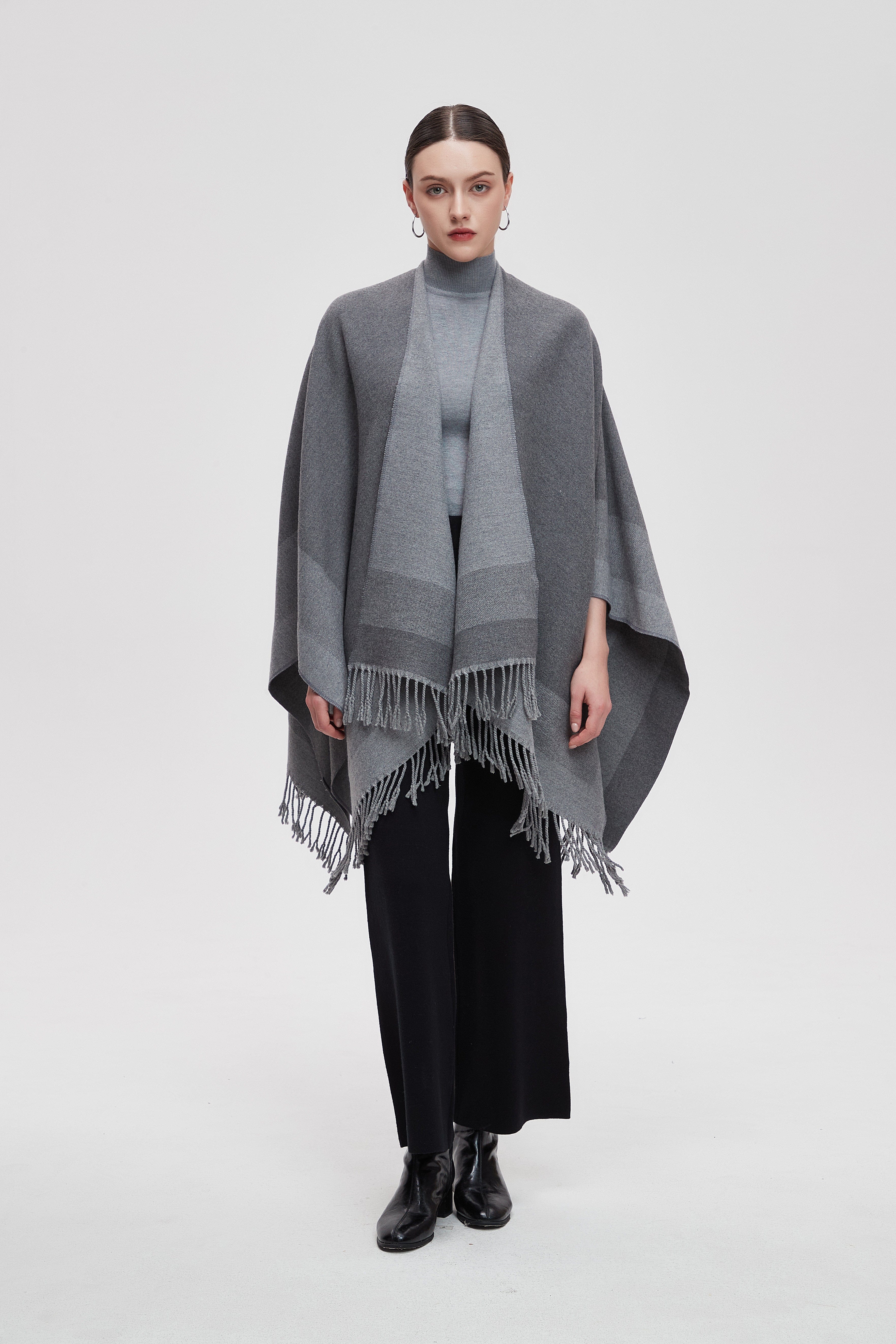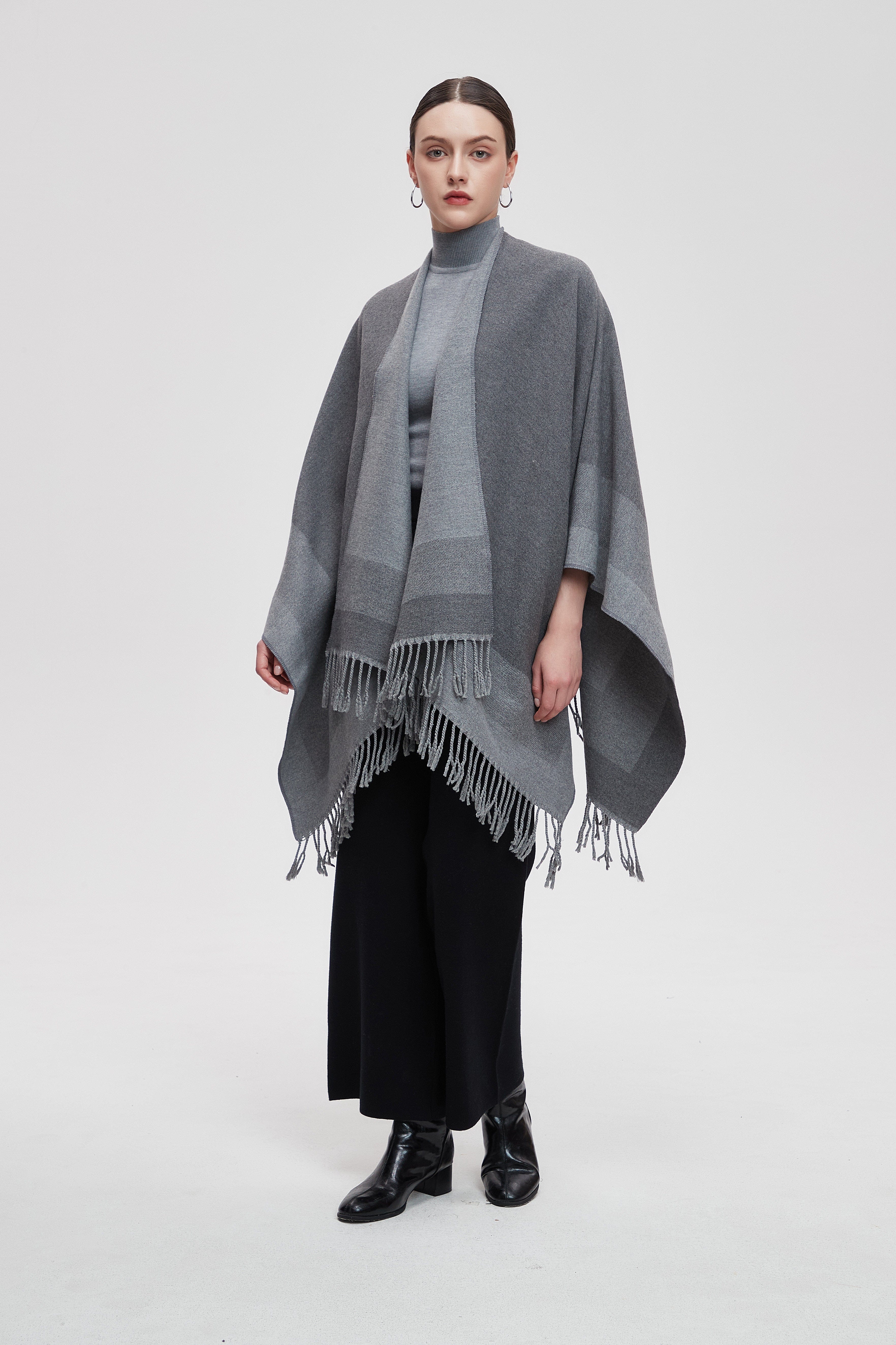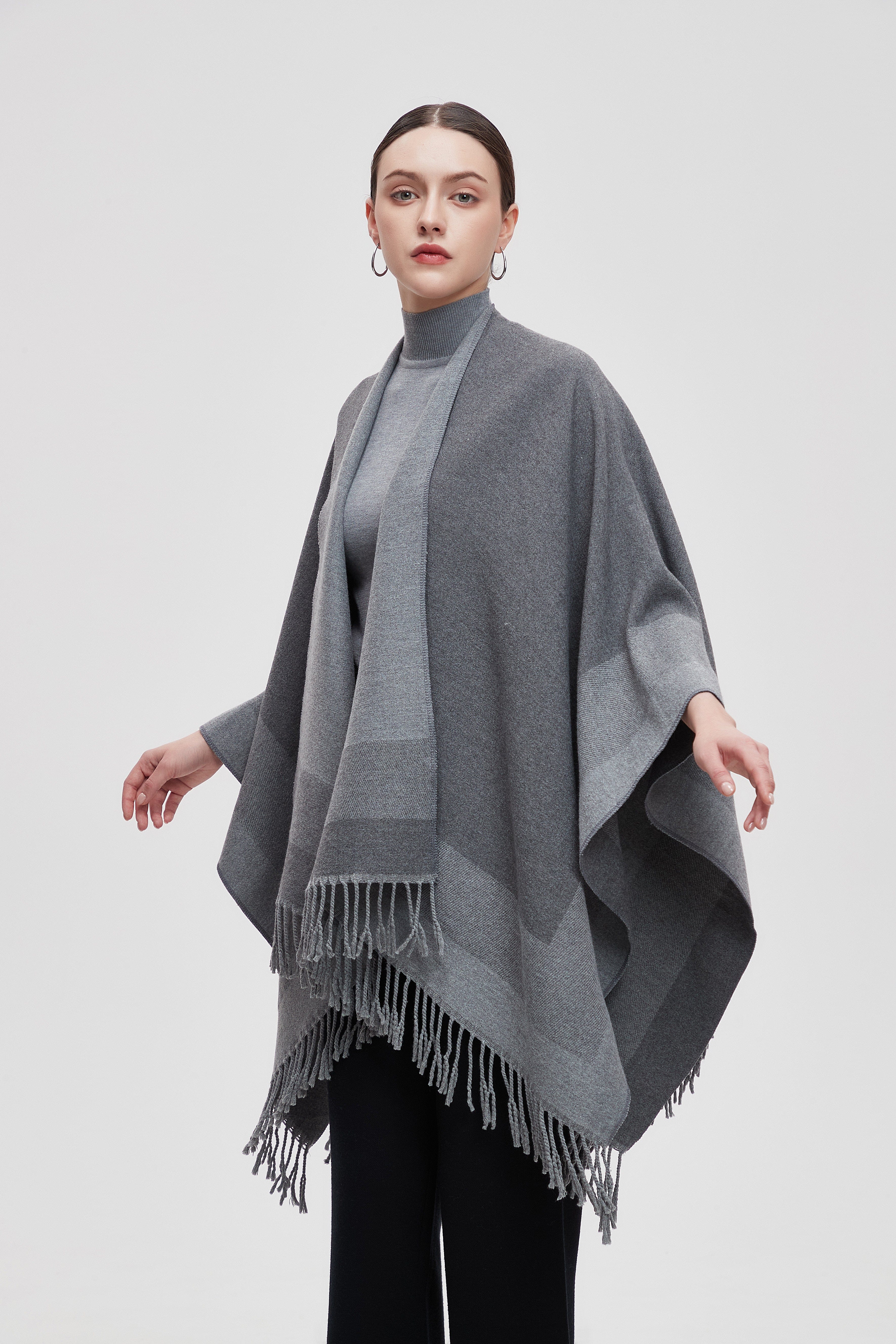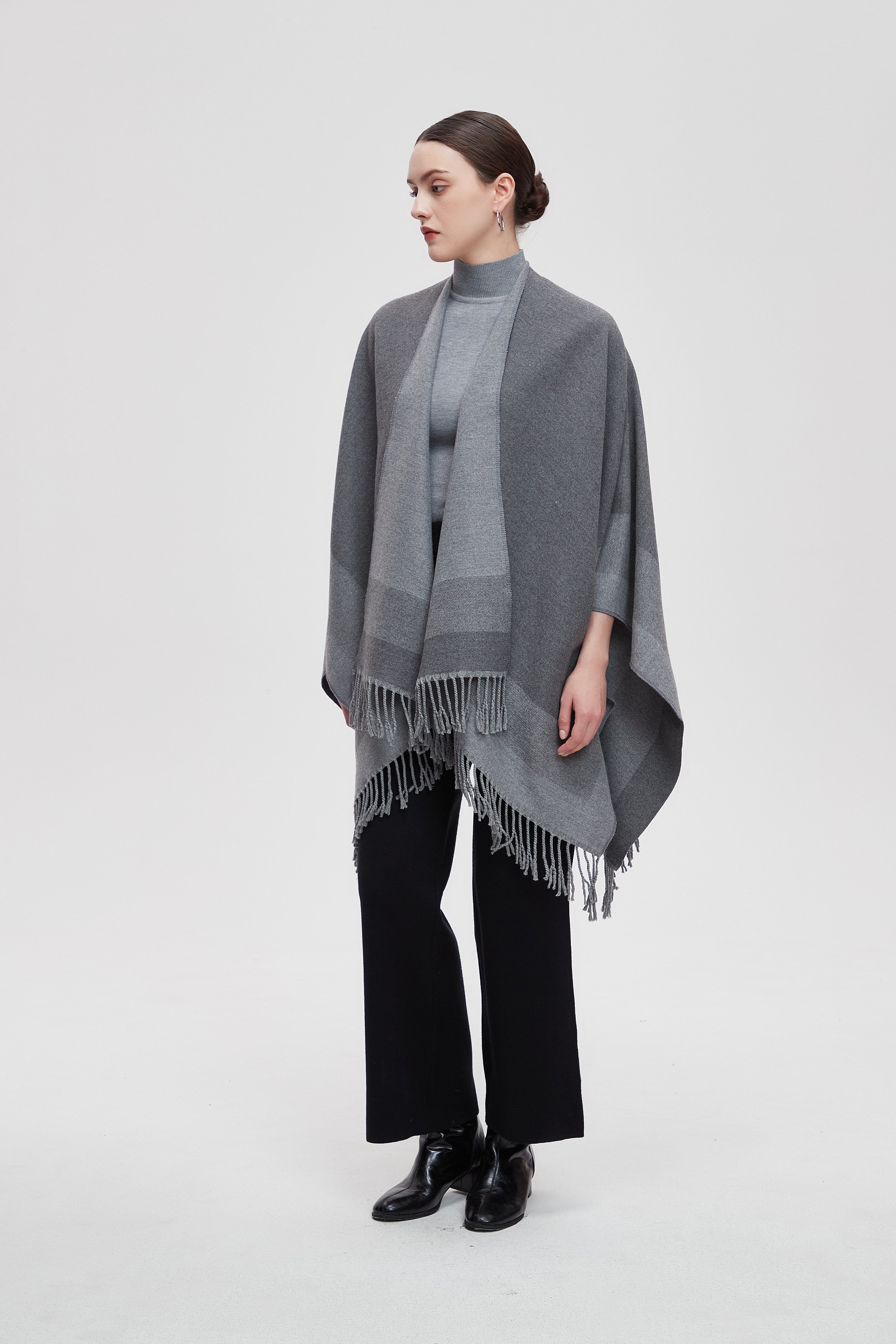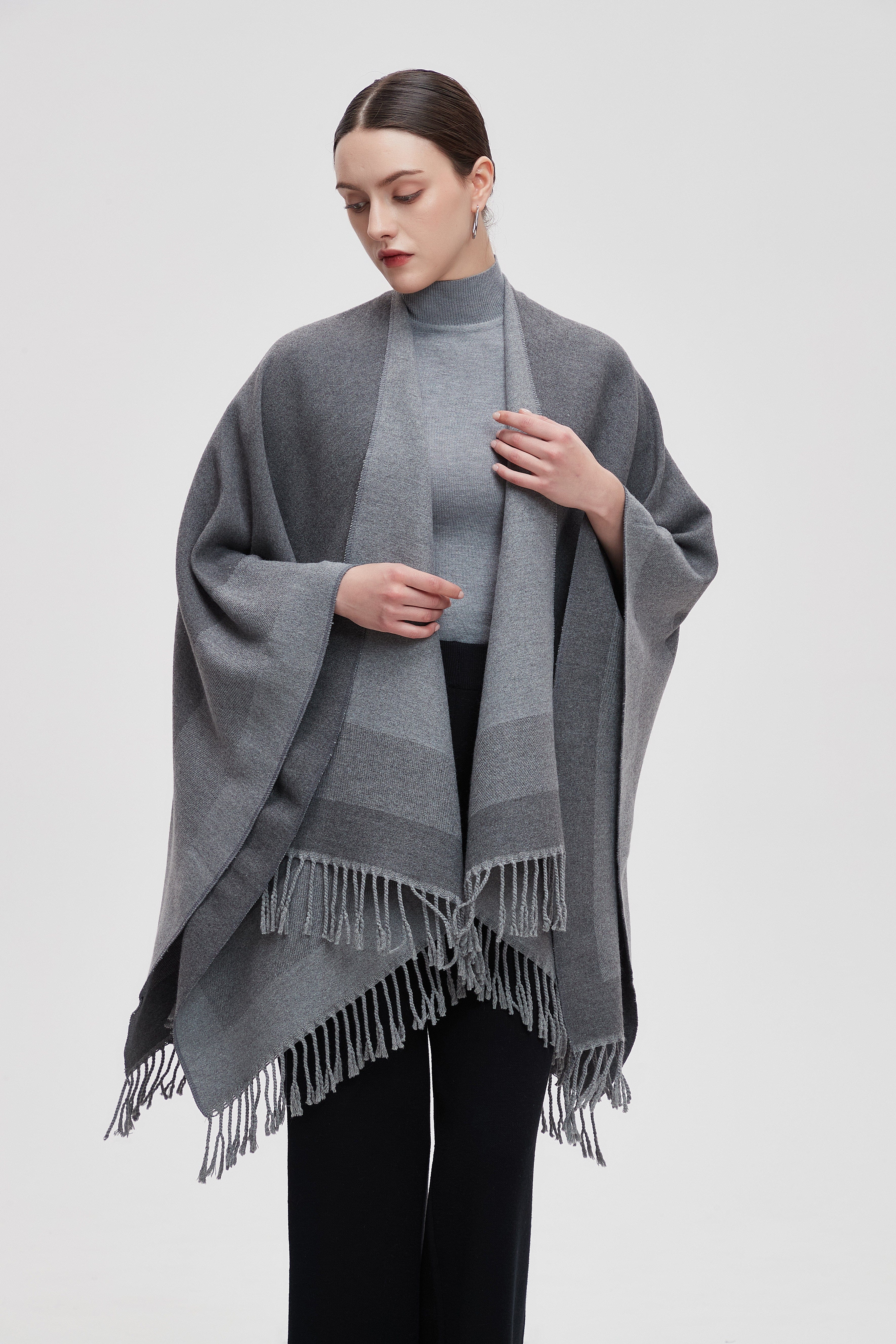 Wrap yourself in the charm of our Long Gradient Color Poncho with Long Sleeves, where comfort meets style. This poncho is designed to make a statement while keeping you cozy. The beautiful gradient colors flow seamlessly, adding a touch of elegance to any outfit. Perfect for layering, it features long sleeves that provide warmth without sacrificing style. Whether you're heading to a casual outing or enjoying a relaxing day at home, this poncho is your go-to choice. Product Number: m2025q4030