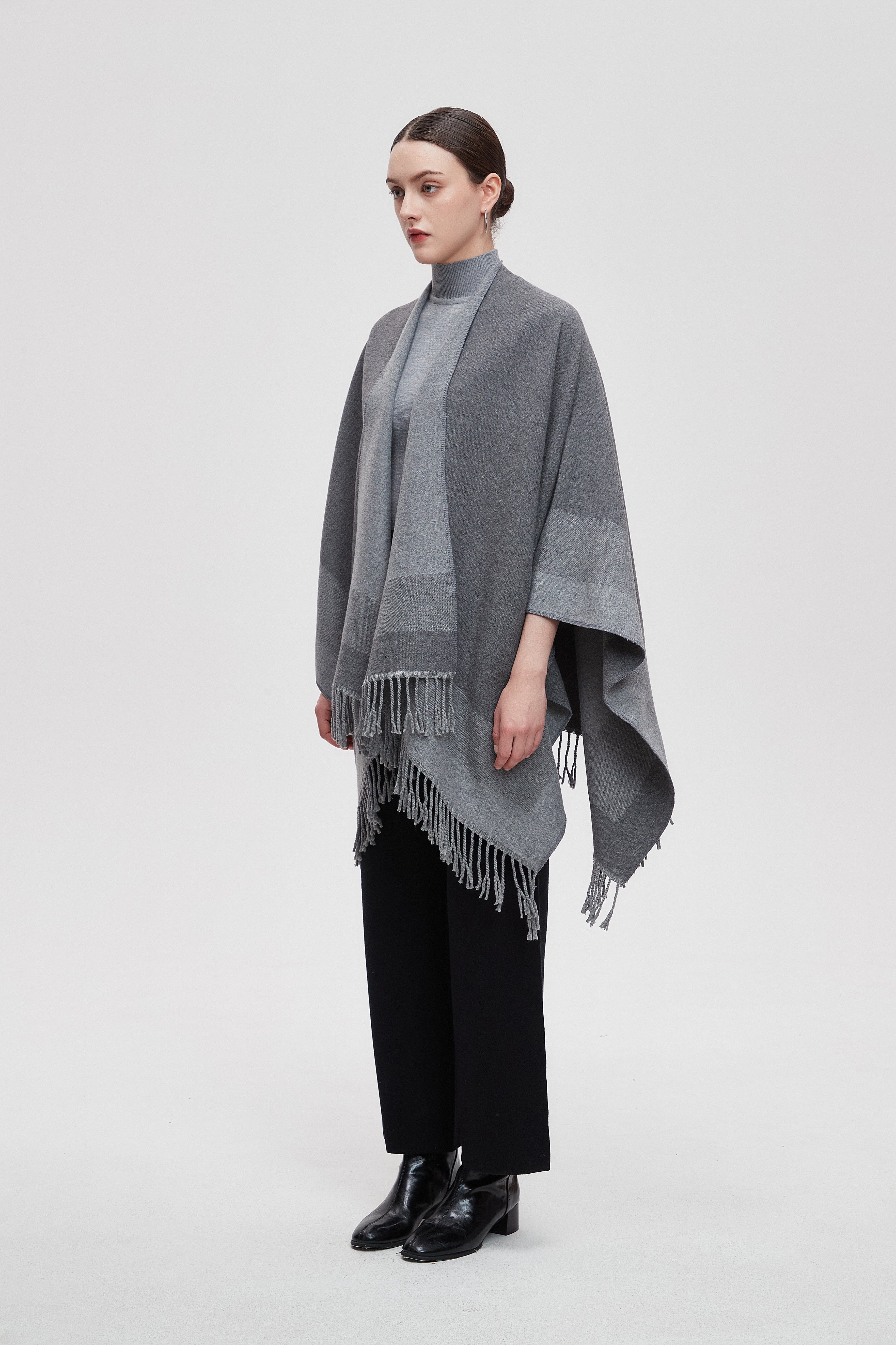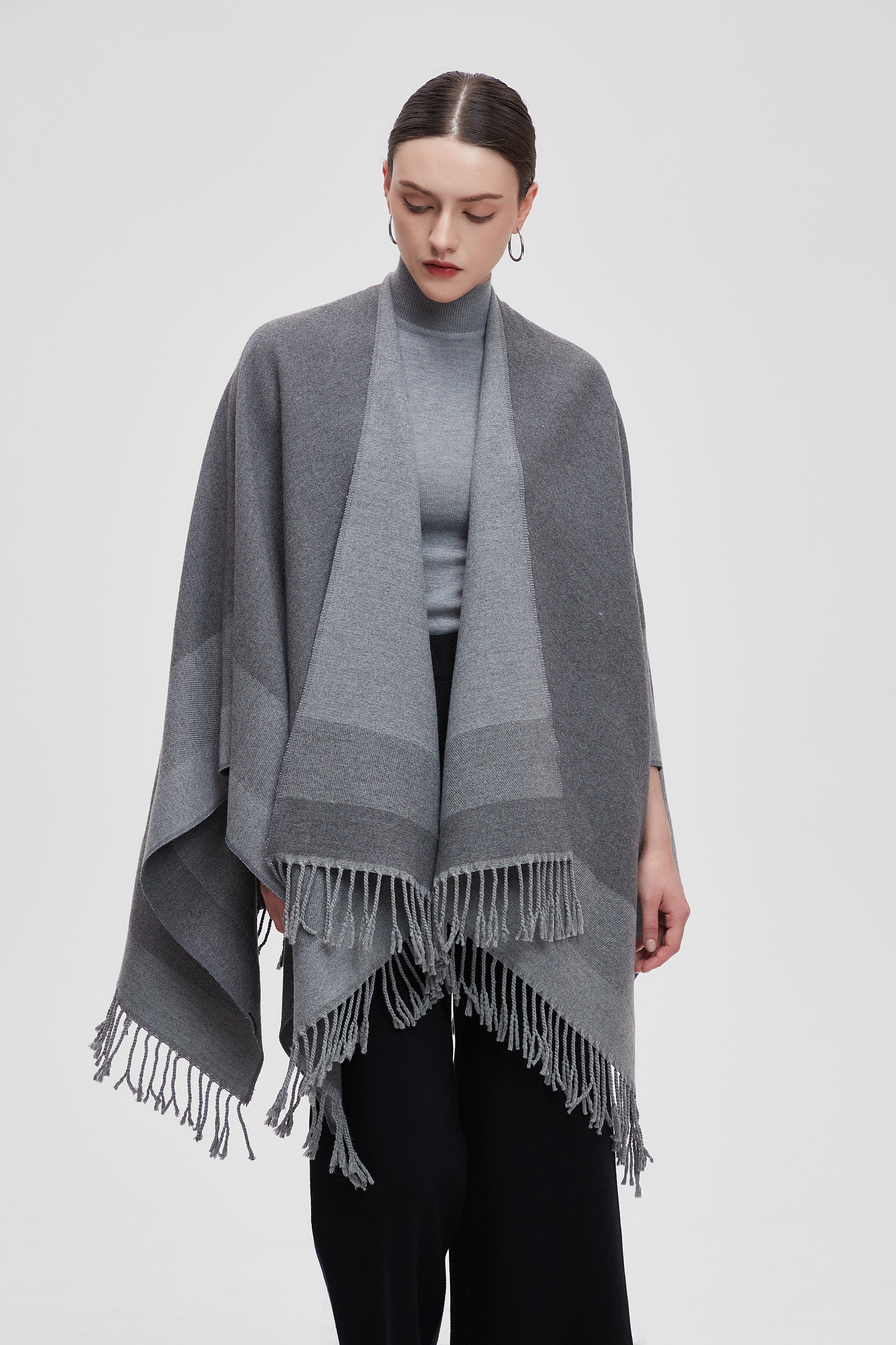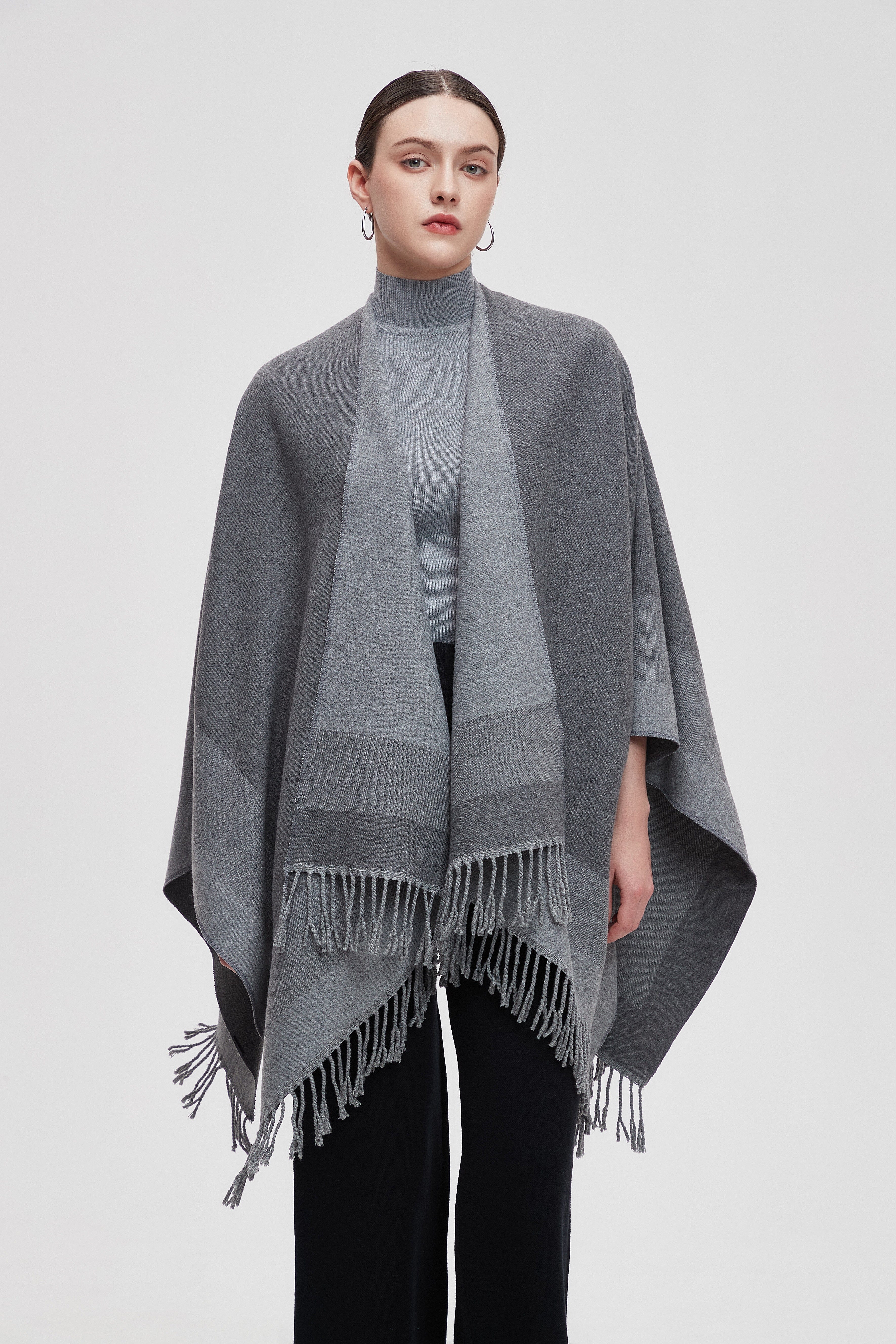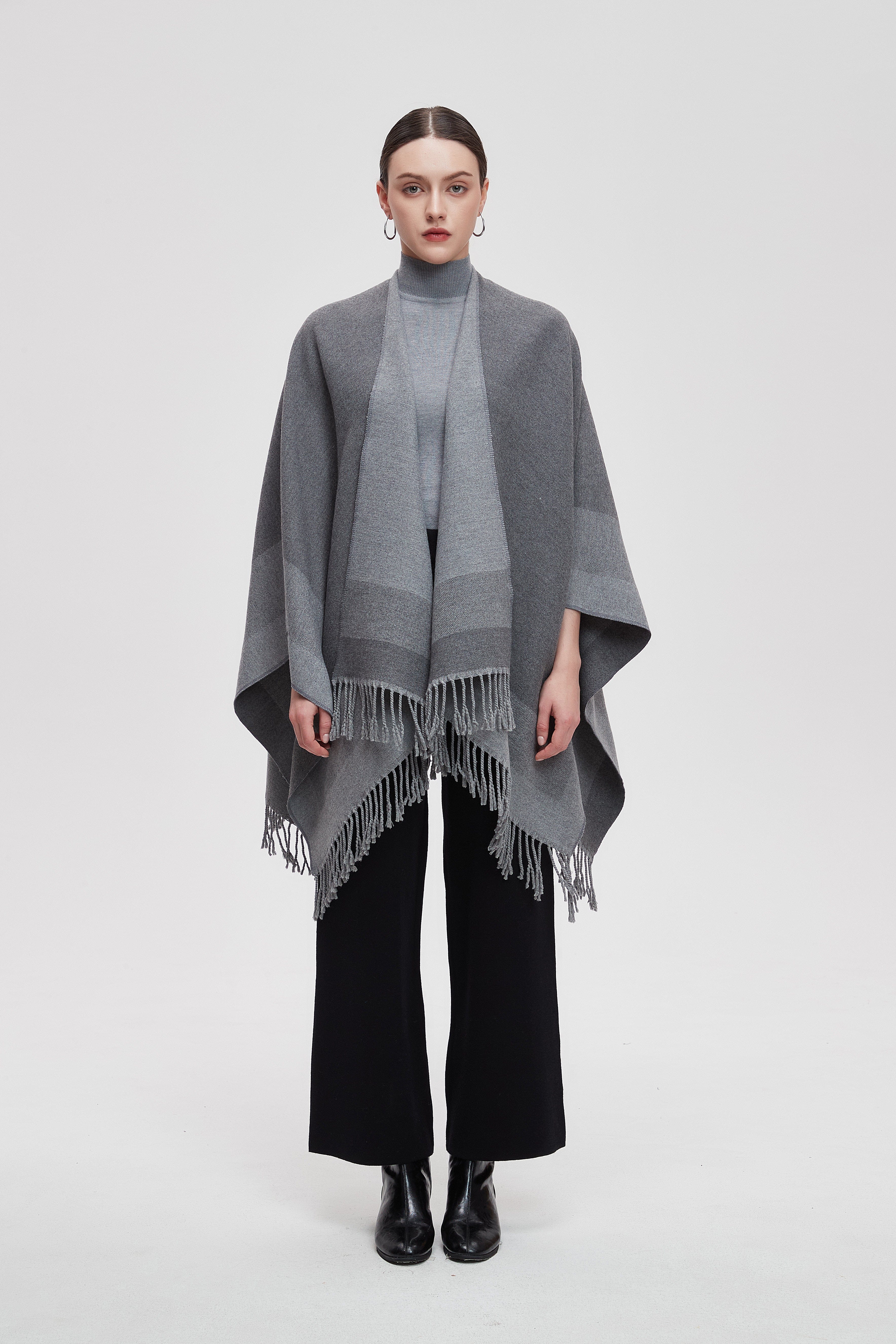 Wrap yourself in the charm of our Long Gradient Color Poncho with Long Sleeves, where comfort meets style. This poncho is designed to make a statement while keeping you cozy. The beautiful gradient colors flow seamlessly, adding a touch of elegance to any outfit. Perfect for layering, it features long sleeves that provide warmth without sacrificing style. Whether you're heading to a casual outing or enjoying a relaxing day at home, this poncho is your go-to choice. Product Number: m2025q4030
