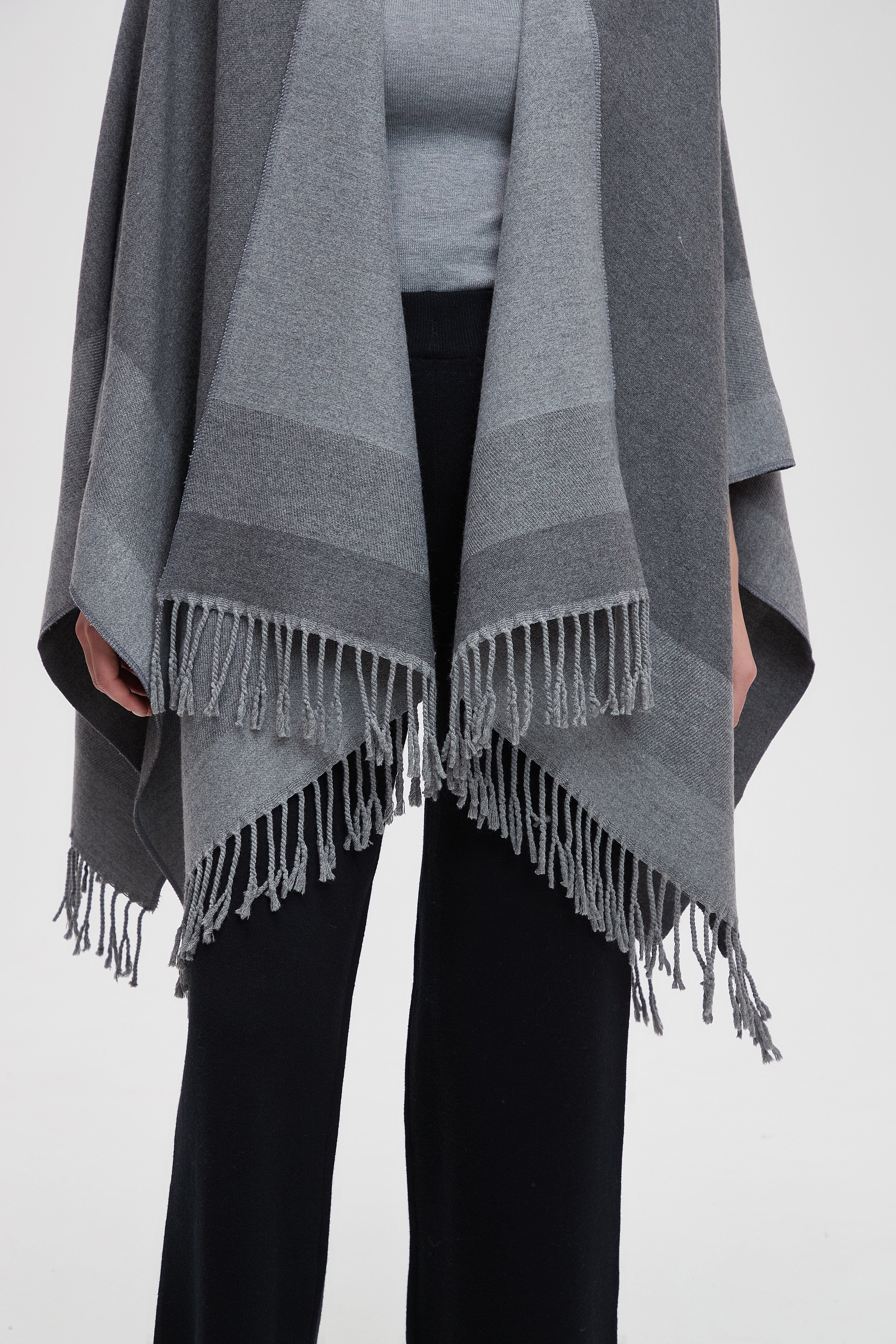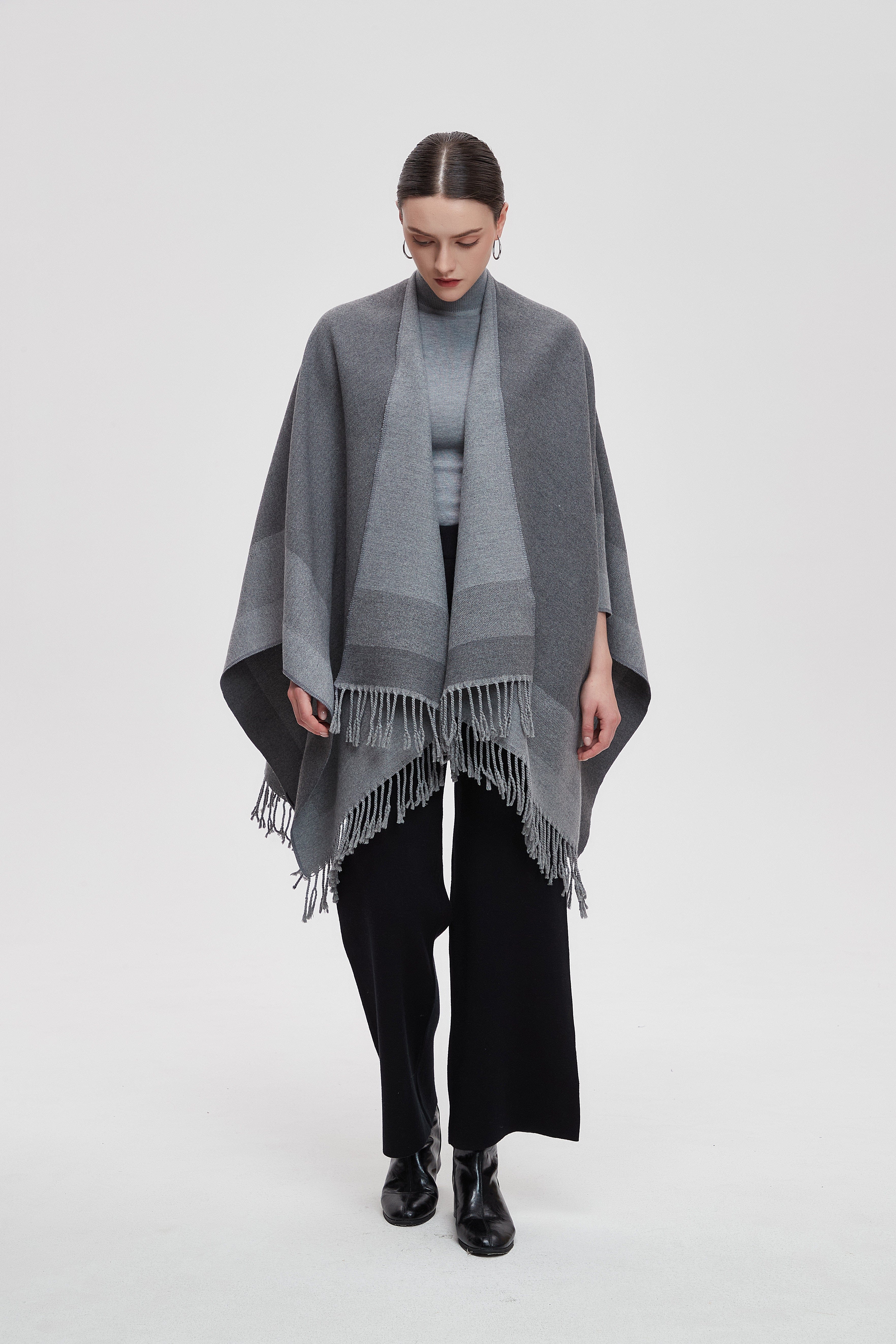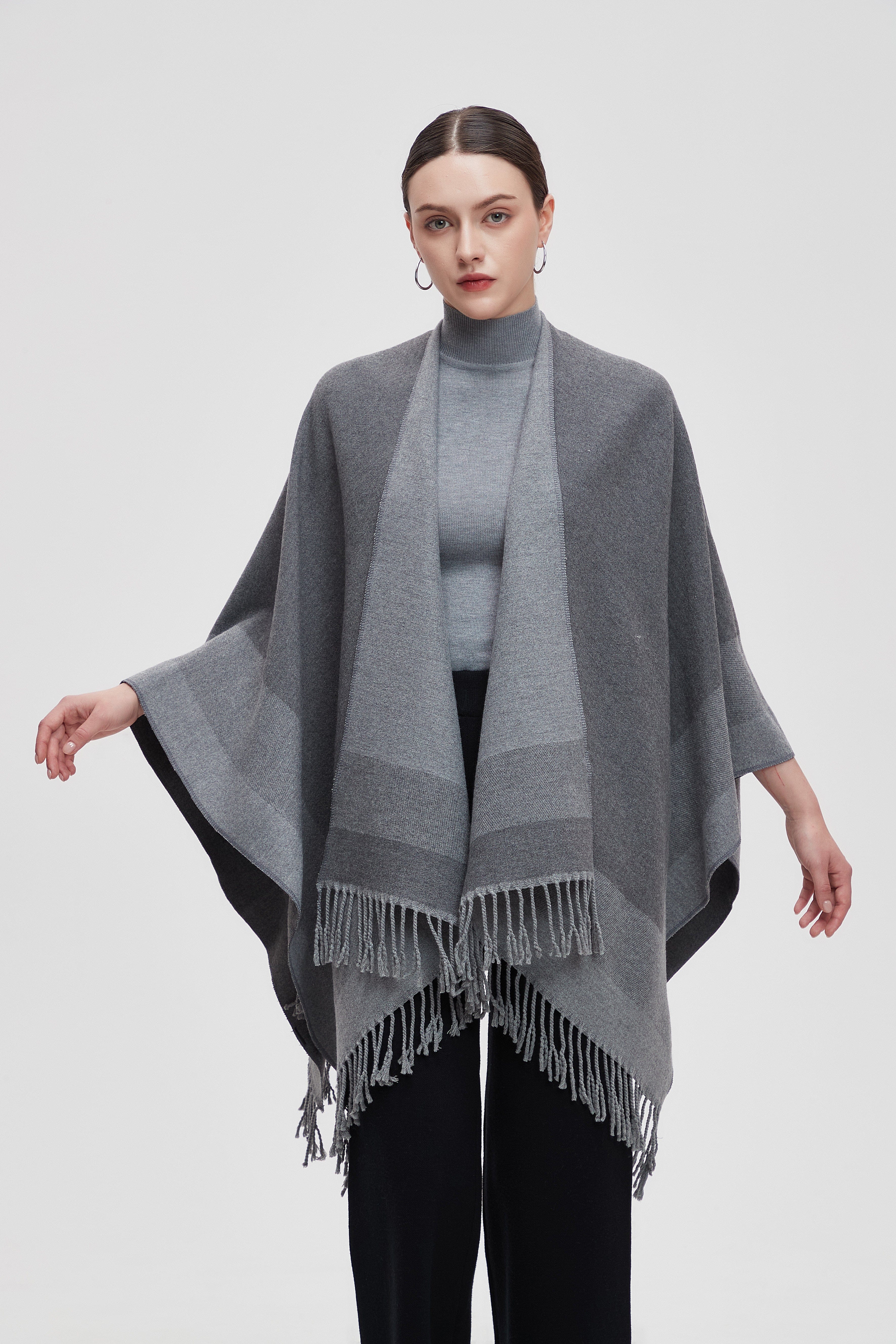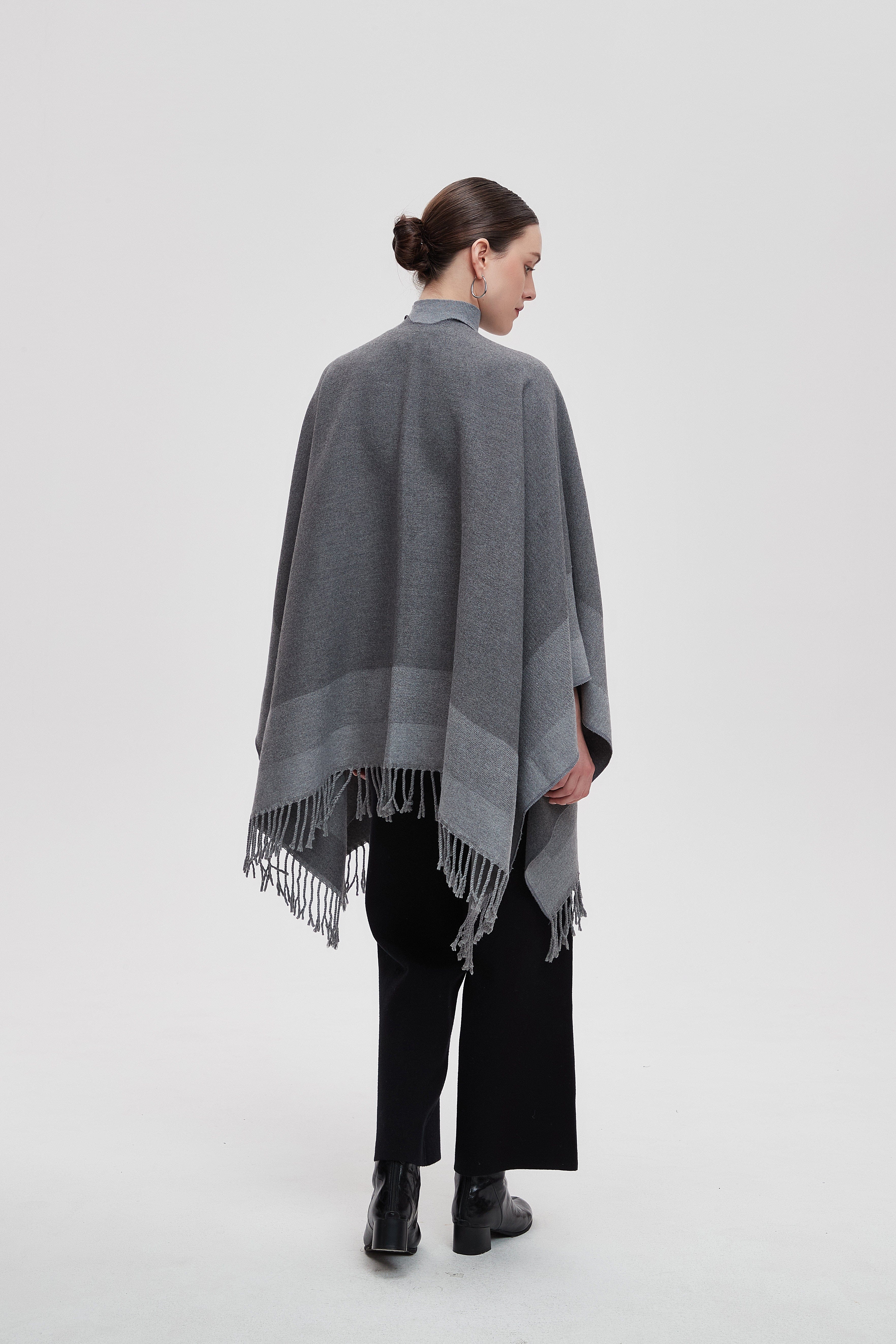Long Gradient Color Poncho with Long Sleeves