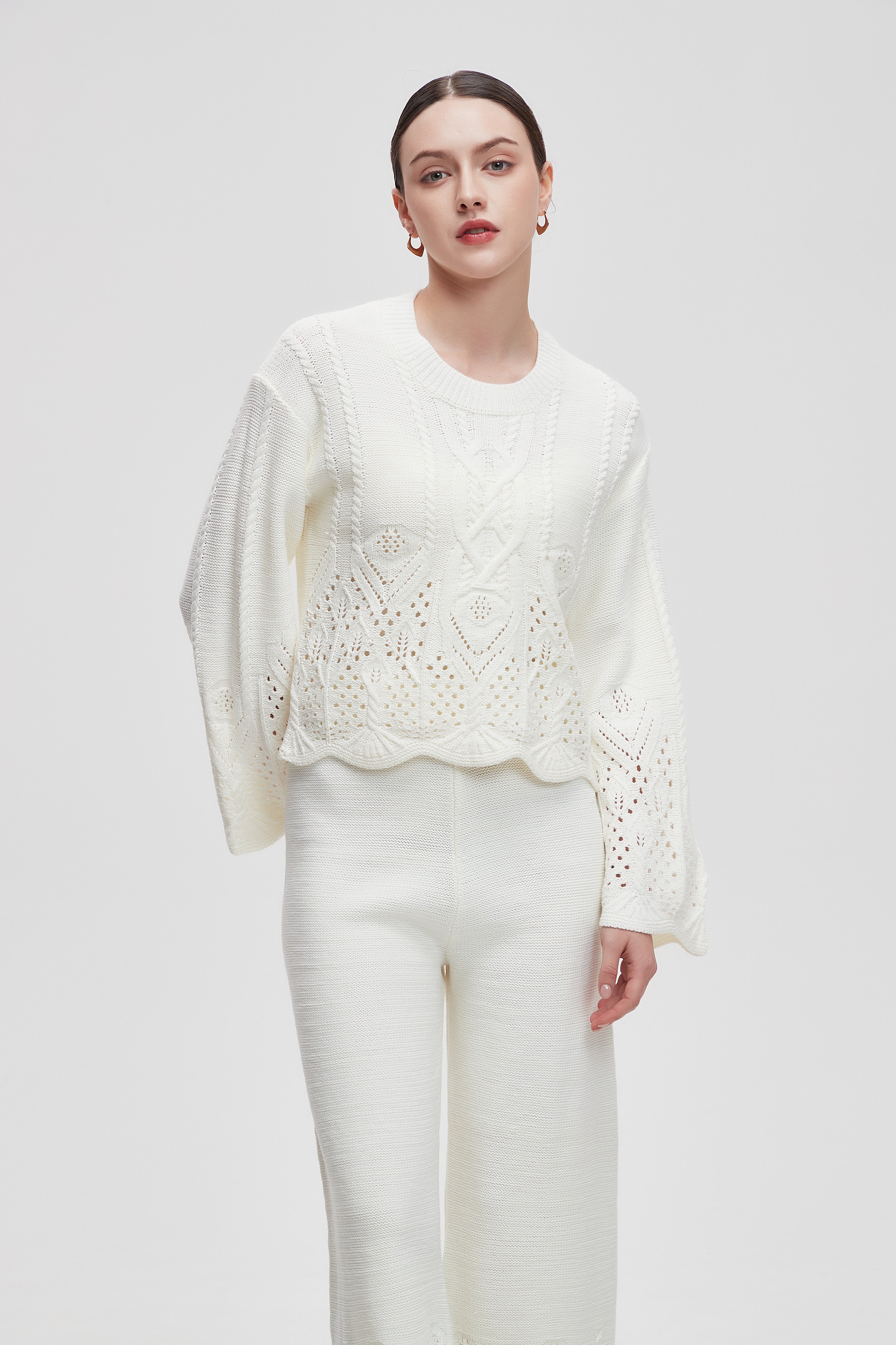 Loose-Fit Long Sleeve Knit Crop Top
