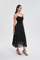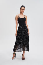 Pleated Polka Dot Midi Skirt
