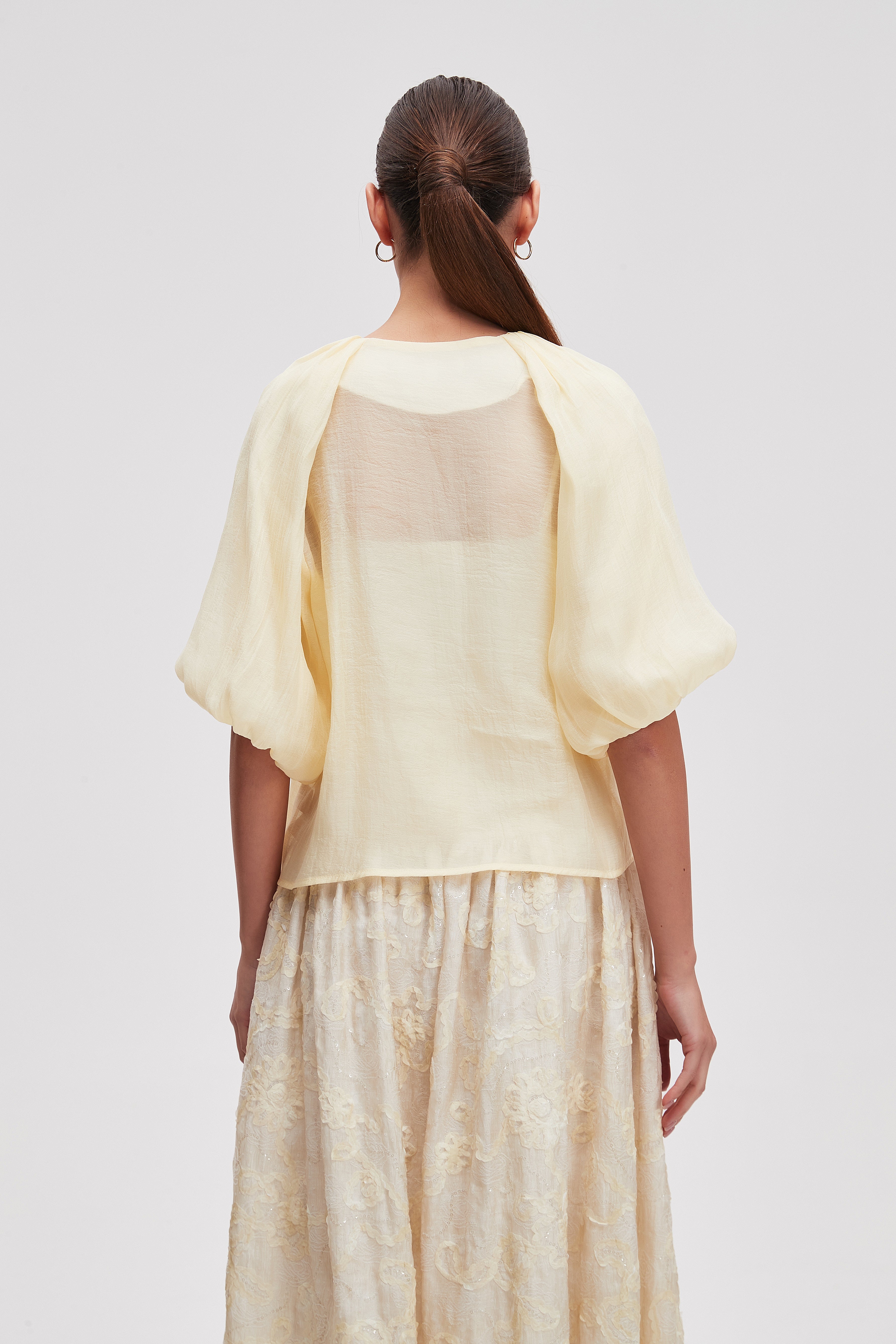 Embroidered Half-Sleeve Midi Blouse