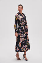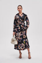 Printed Long Sleeve Midi Dress