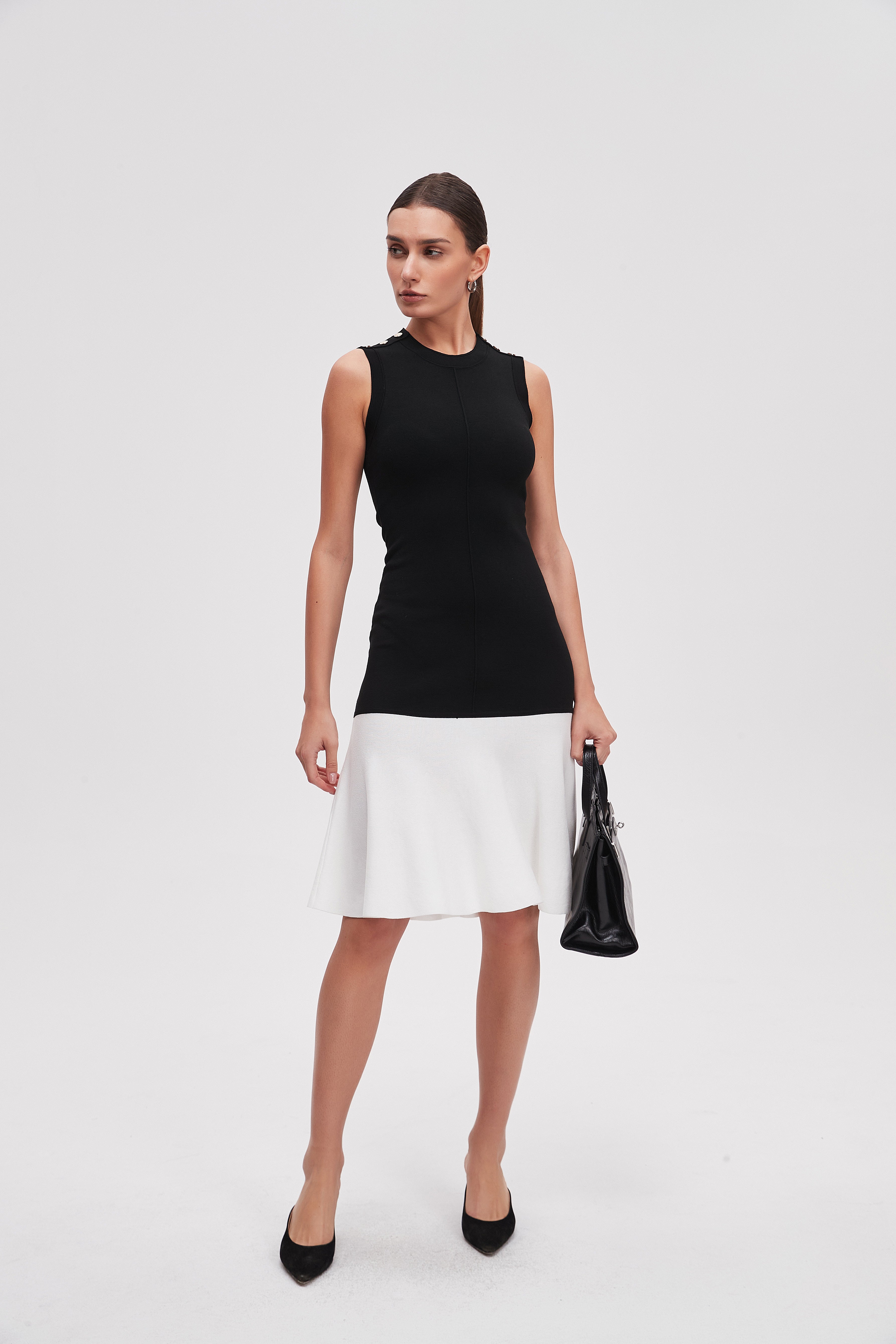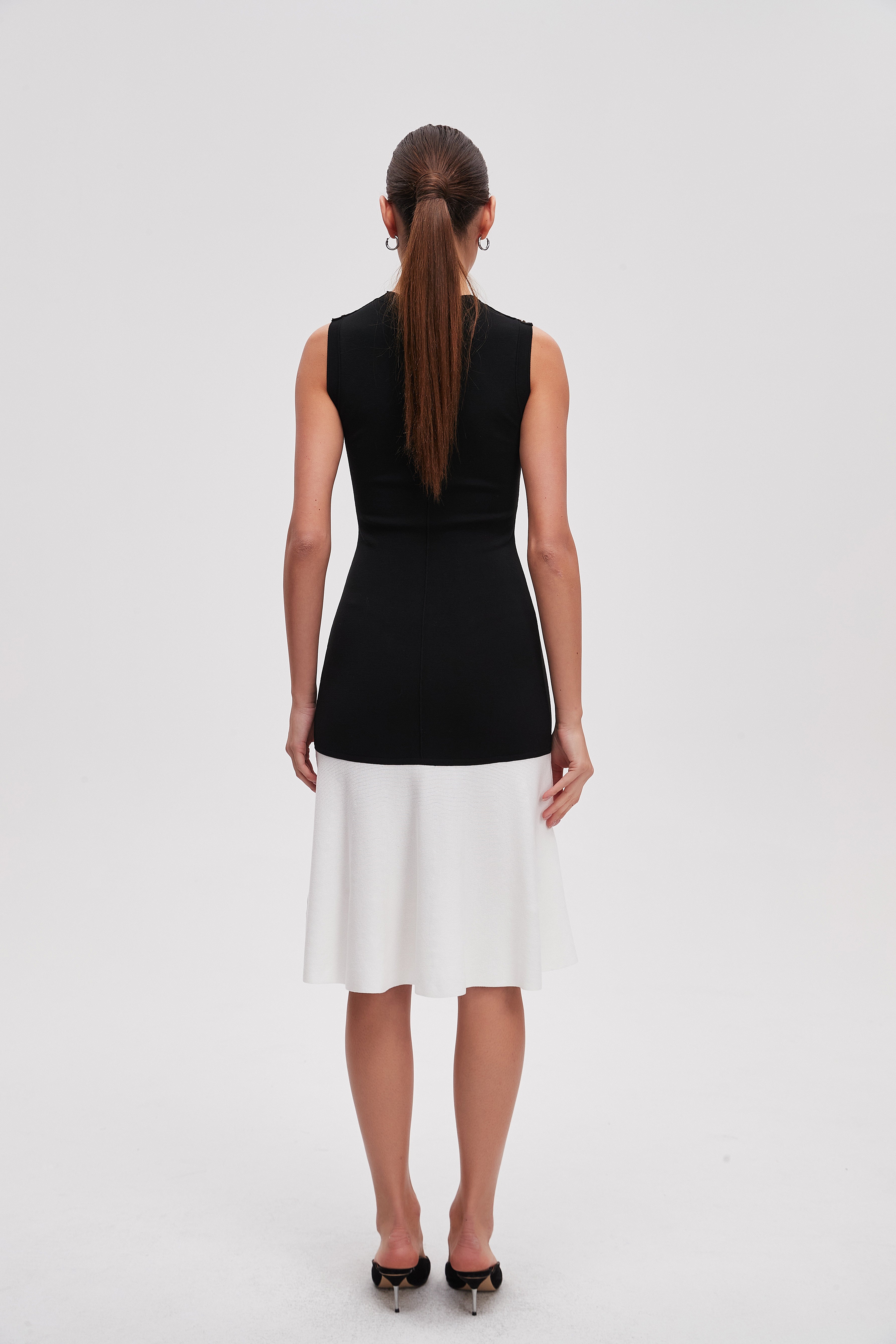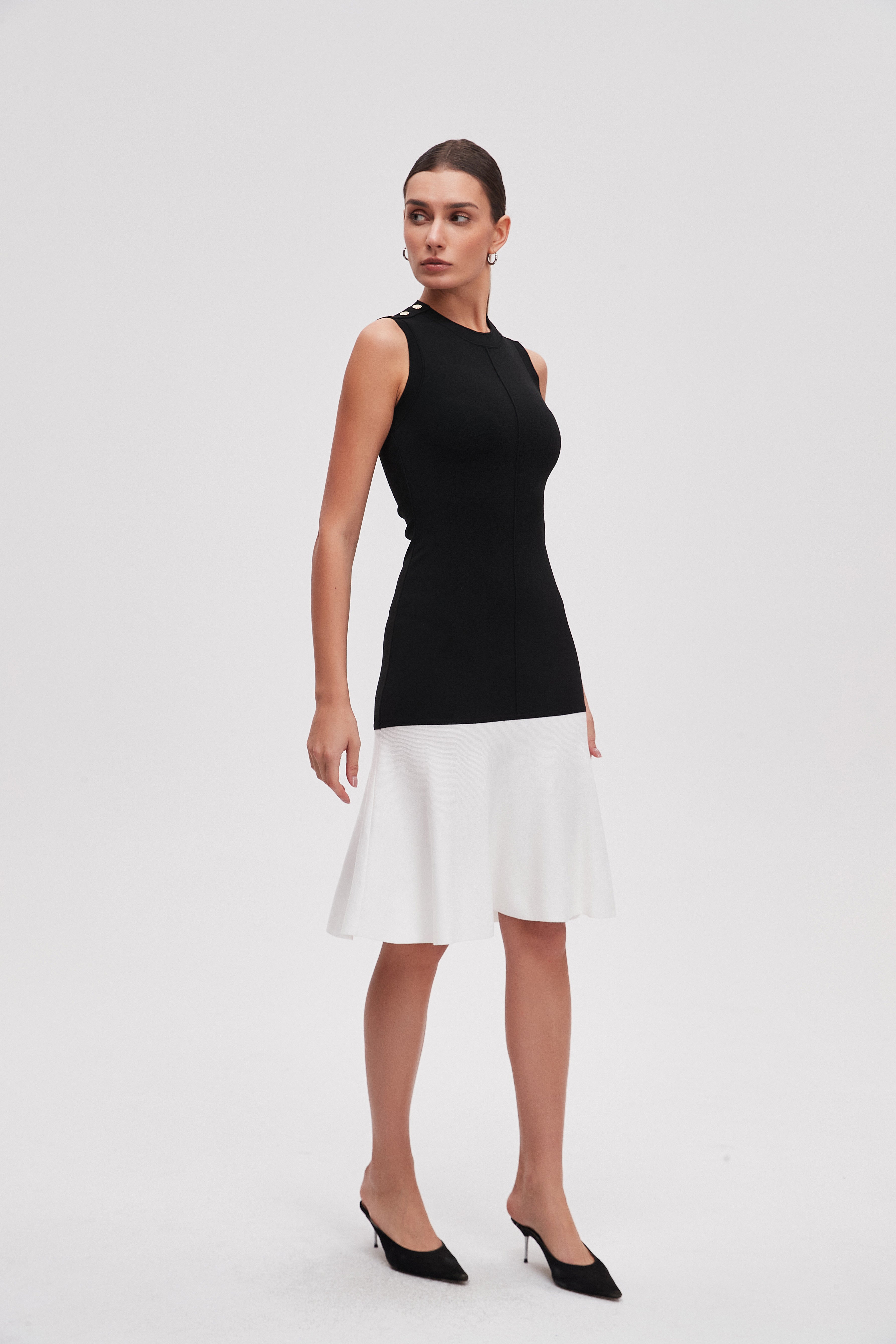 Knee-Length Two-Tone Sleeveless Dress
