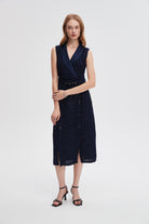 Midi Sleeveless Dress with Buttons