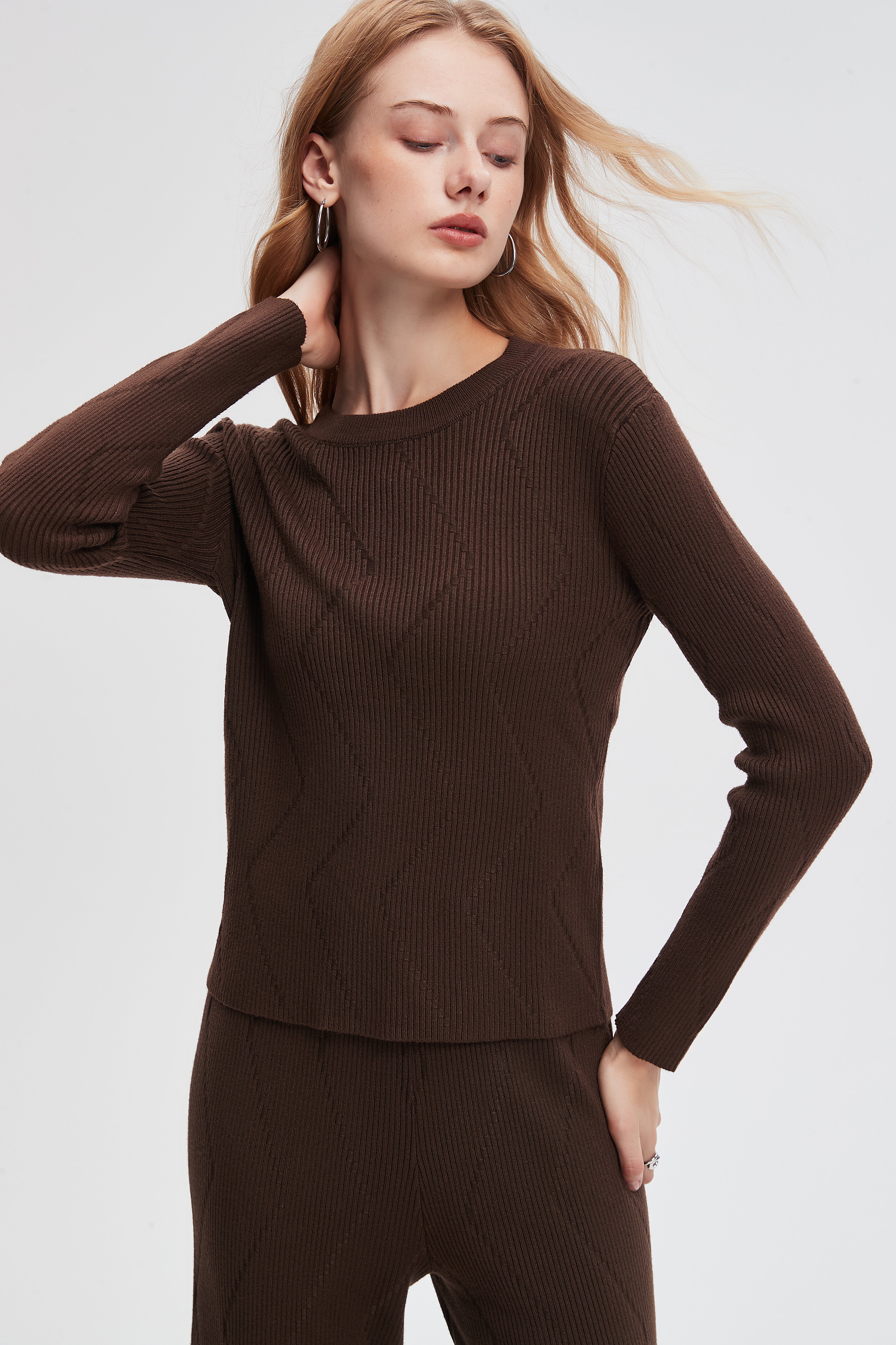 This long-sleeved ribbed knit blouse features a modern design that combines elegance and comfort. Made from high-quality materials, it offers a soft feel against the skin, making it ideal for everyday use. It comes in a variety of colors to suit all tastes, making it a perfect choice for coordinating with various looks. Pair it with jeans or a skirt for a stylish yet comfortable look. Don't miss out on this amazing blouse; order it online now and add a new touch to your wardrobe! Product number: m2025q4008
