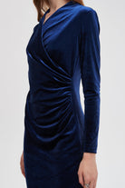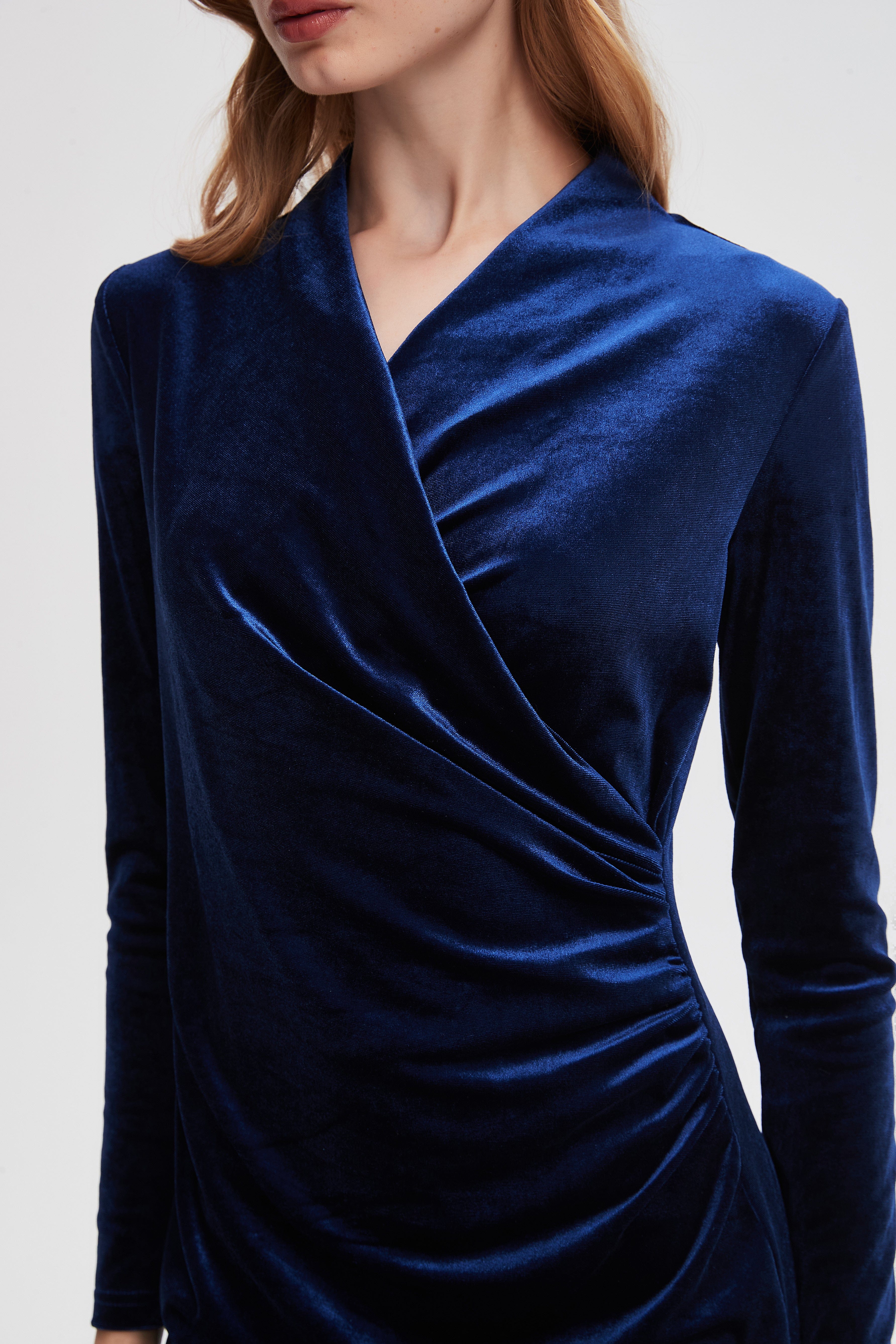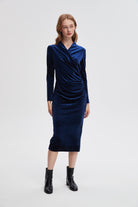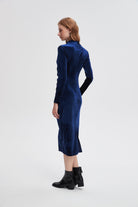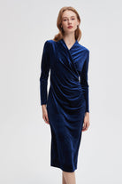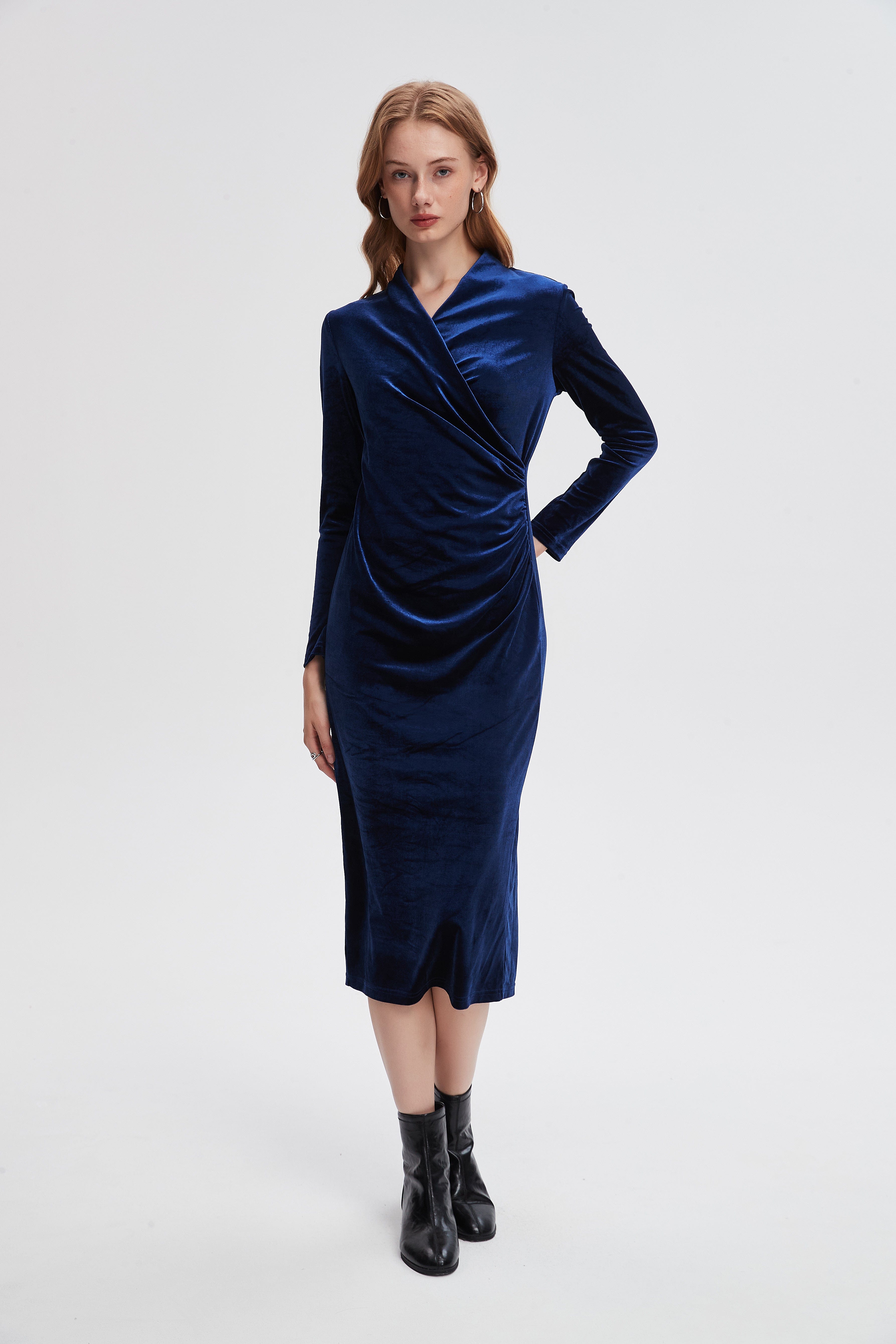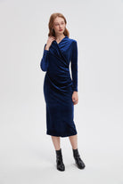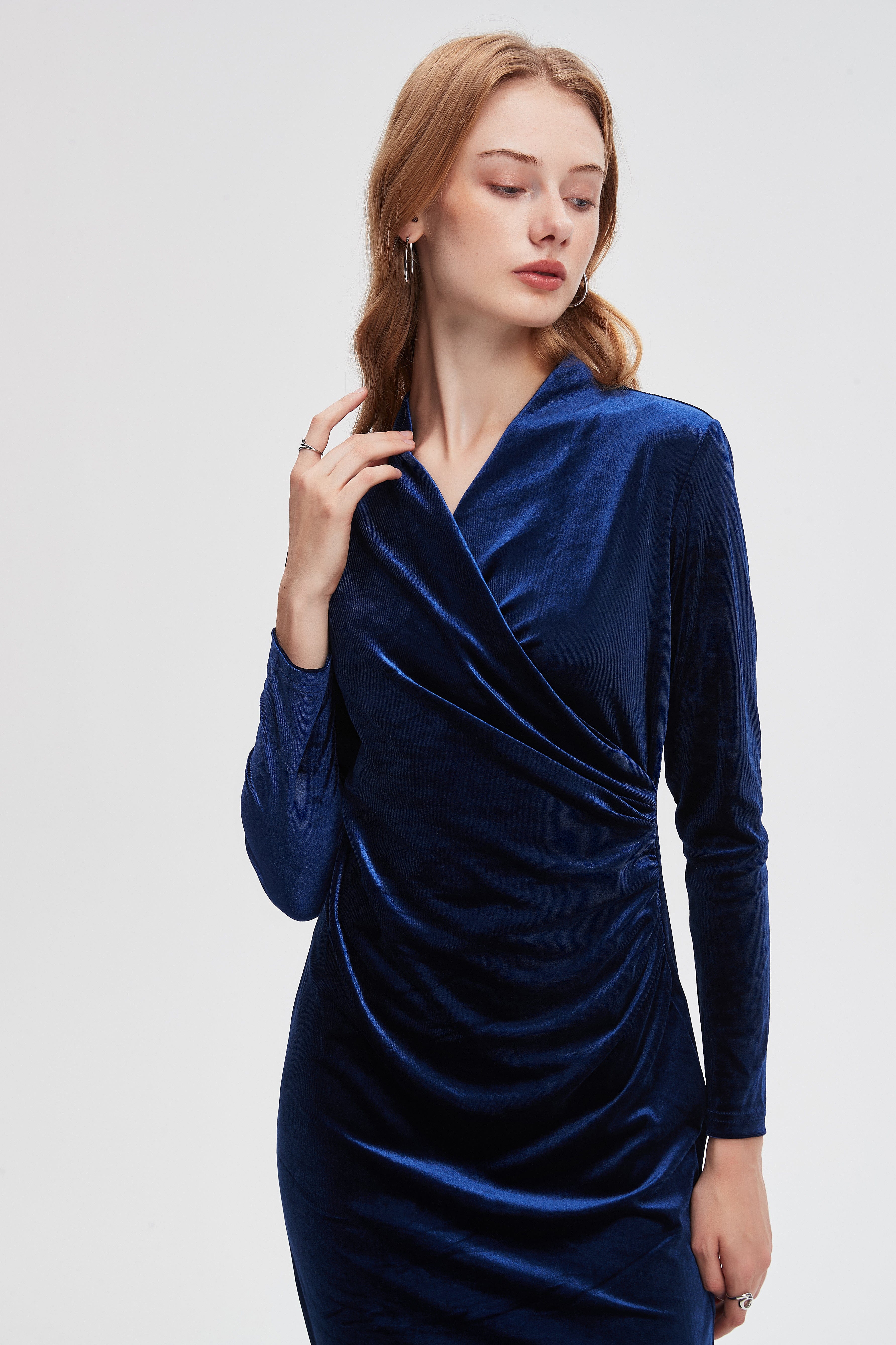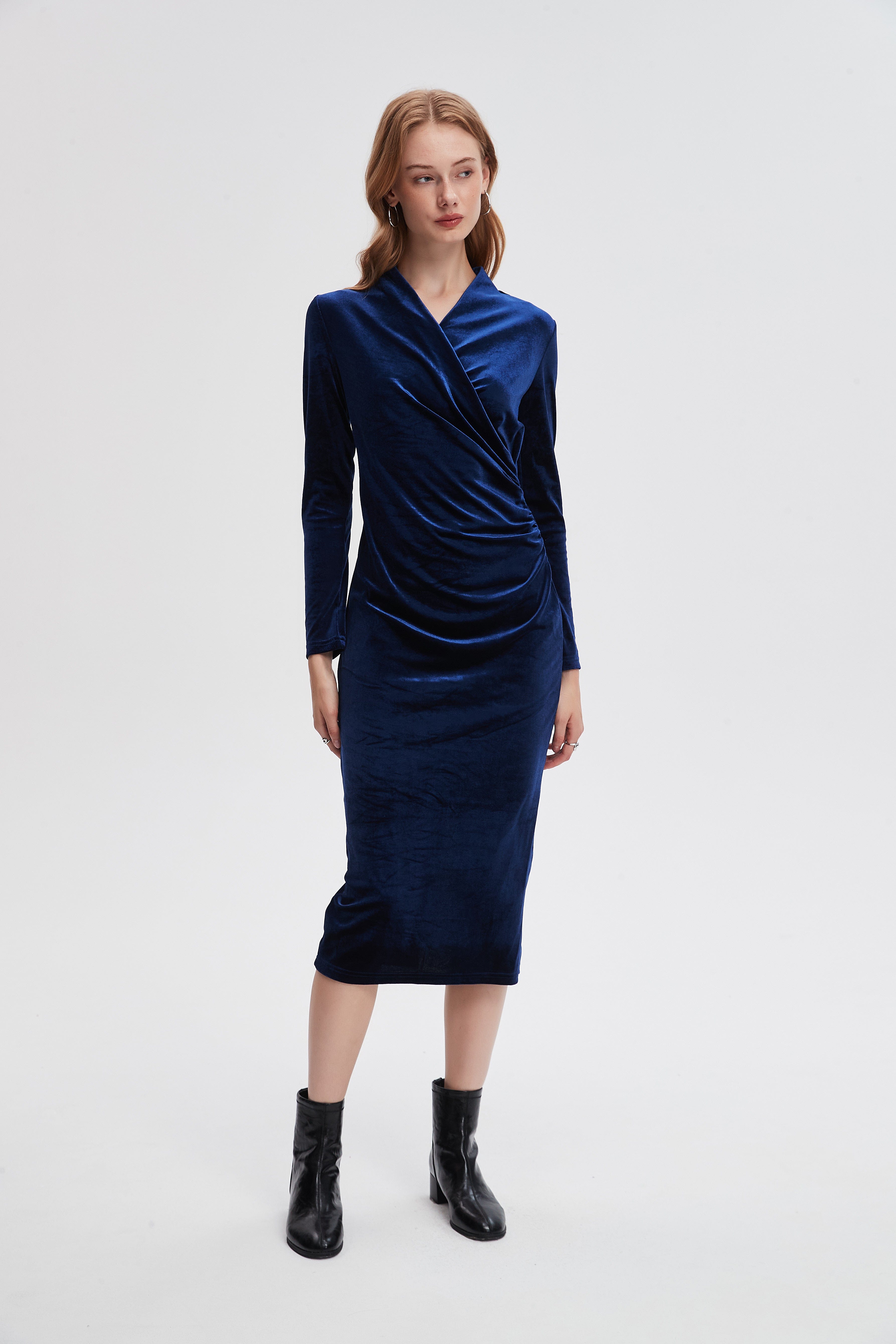 This sleek blue plain midi long-sleeve dress is the perfect balance of polished elegance and modern confidence. Cut in a fitted bodycon silhouette from a 90% polyester, 10% elastane blend, the stretch-infused fabric offers sculpting support with wrinkle-resistant, easy-care performance for all-season wear. The midi length and V-neck collar create an elongating line while long sleeves provide refined coverage; the unlined, pocketless construction keeps the profile smooth and streamlined. Medium-weight knit holds its shape and smooths the silhouette, and the fitted mold flatters curves without restricting movement. Wear solo for a streamlined evening look or layer under a tailored coat for cooler days. Make it your go-to piece for elevated dressing—shop the Blue Plain Midi Long-Sleeve Dress at Fashion SA and step into effortless, tailored style today.