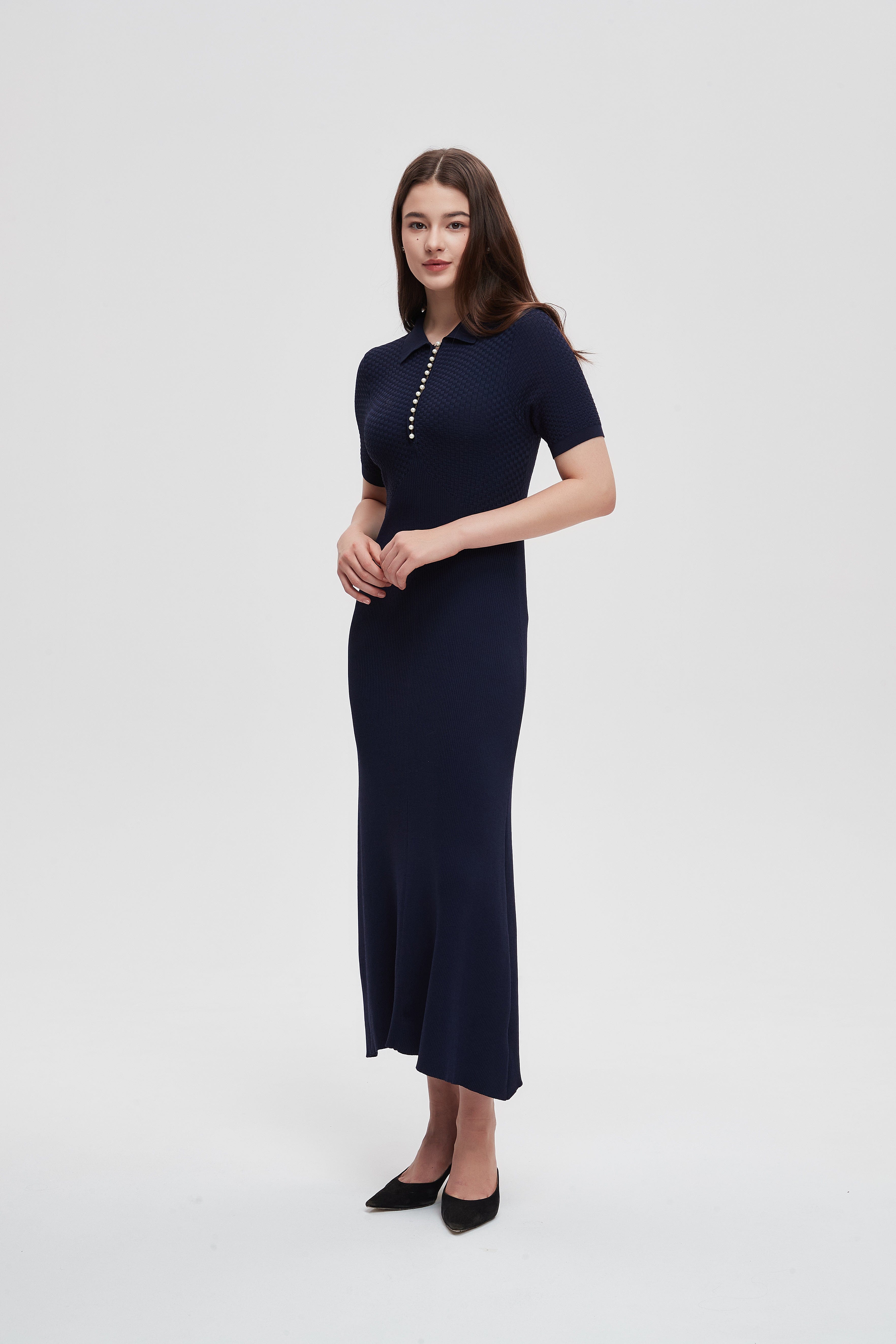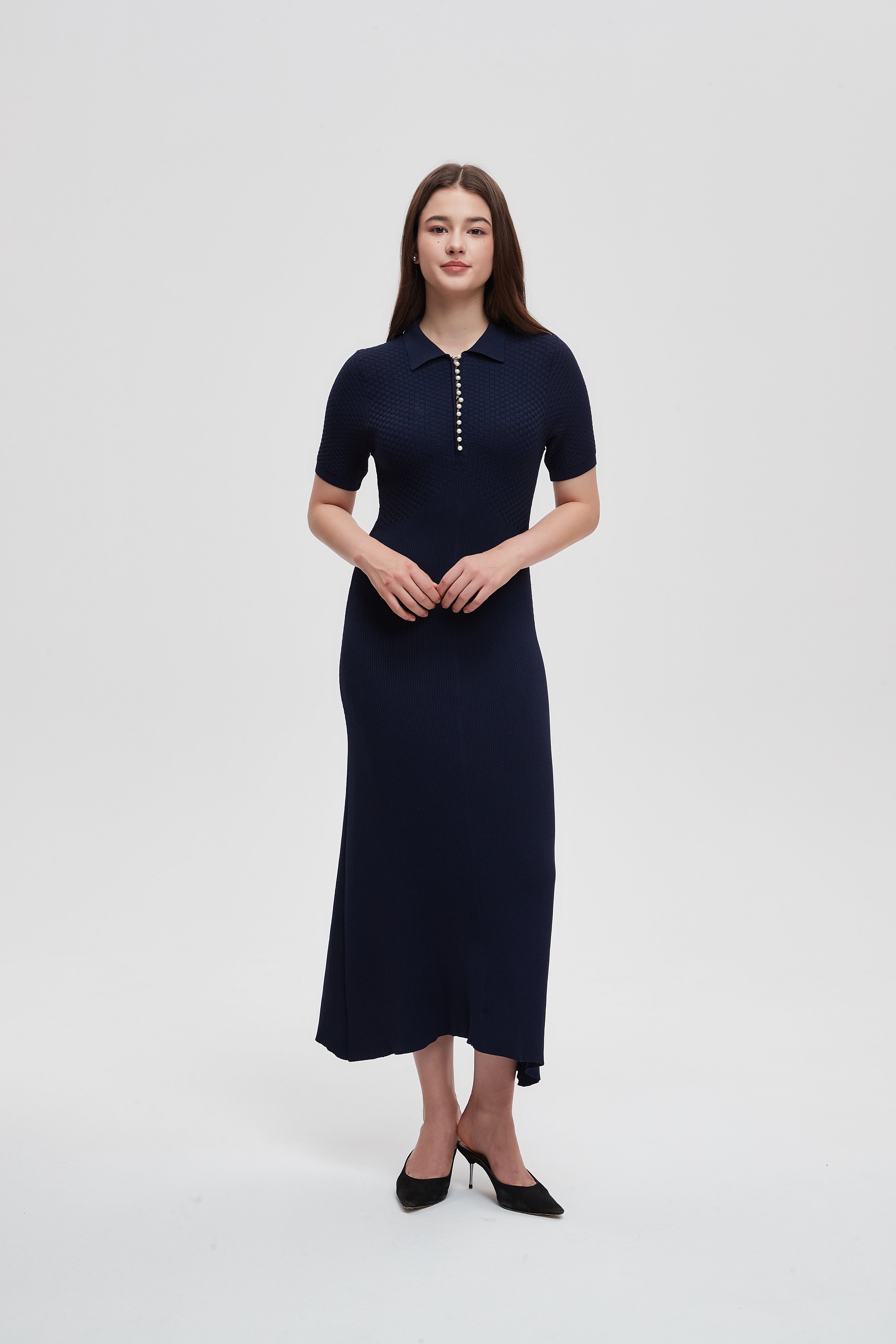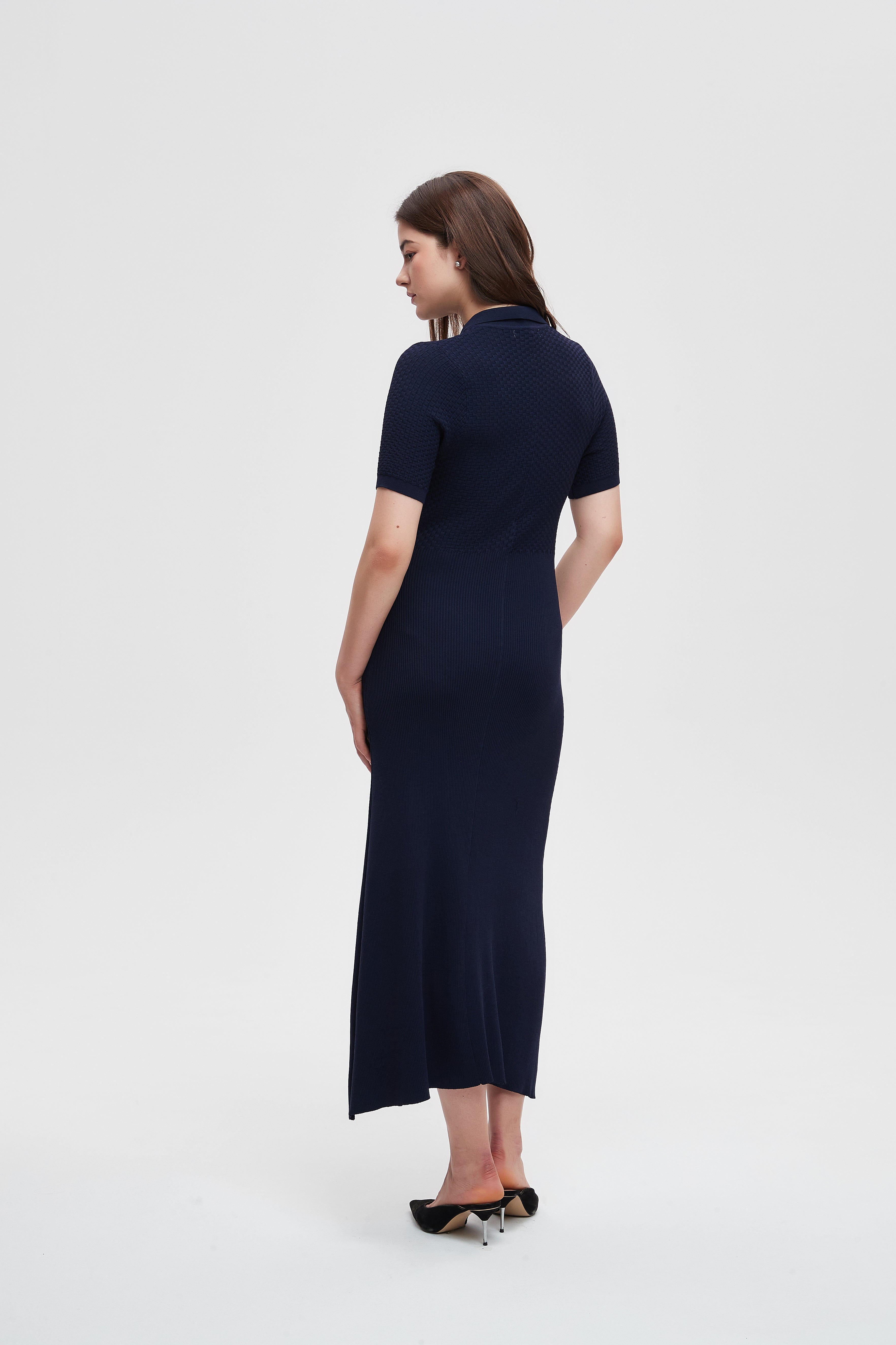 Half Sleeve Ribbed Midi Dress