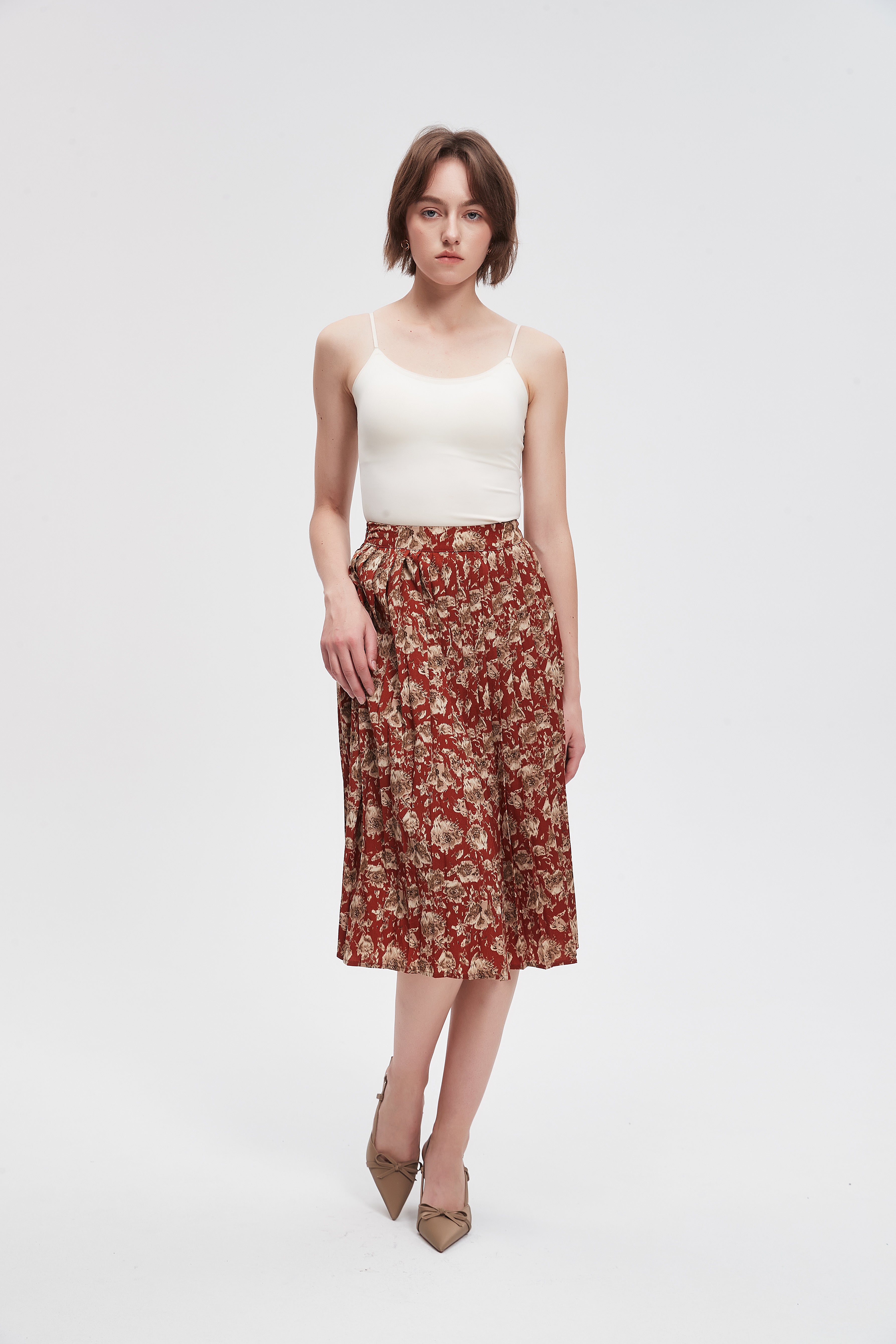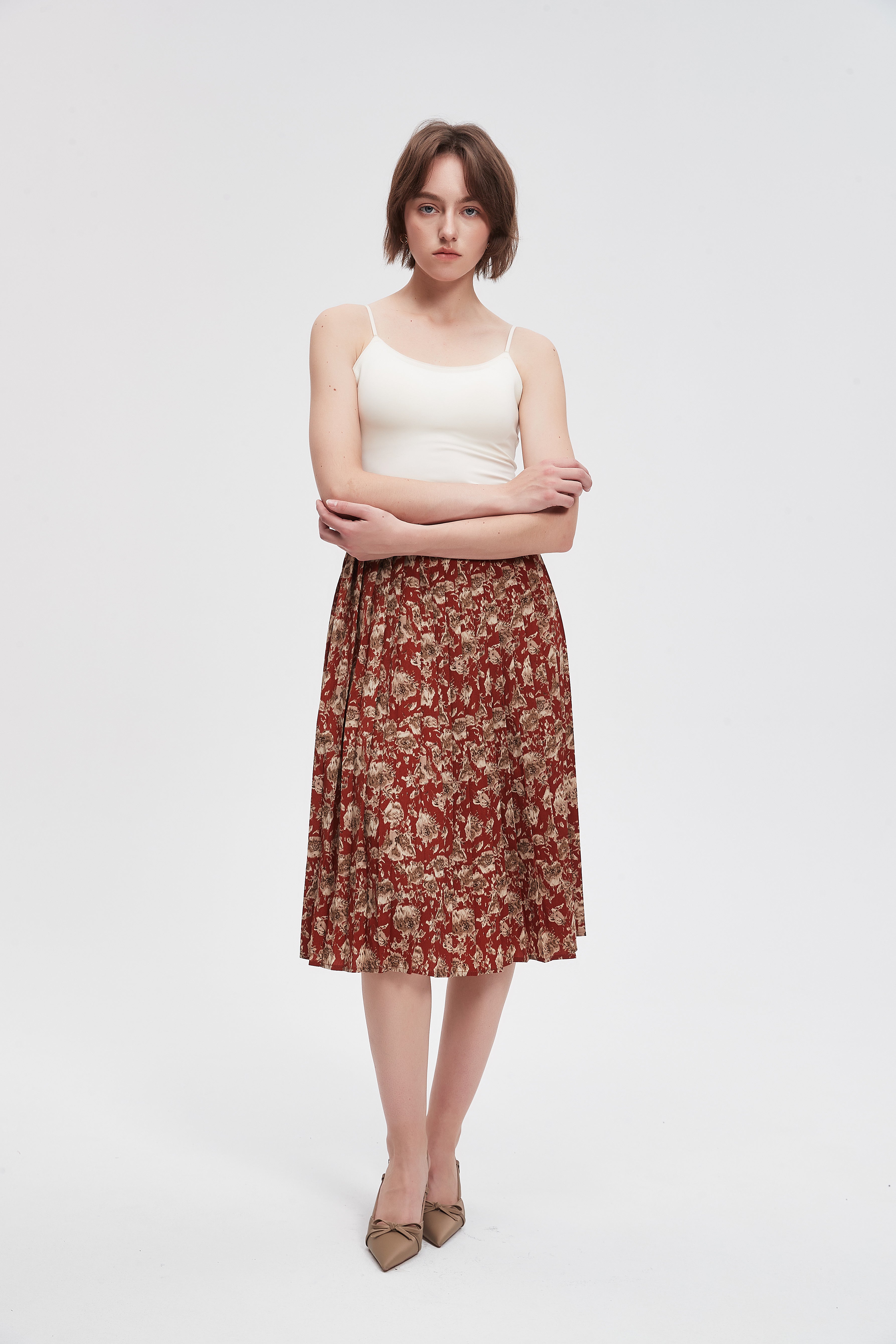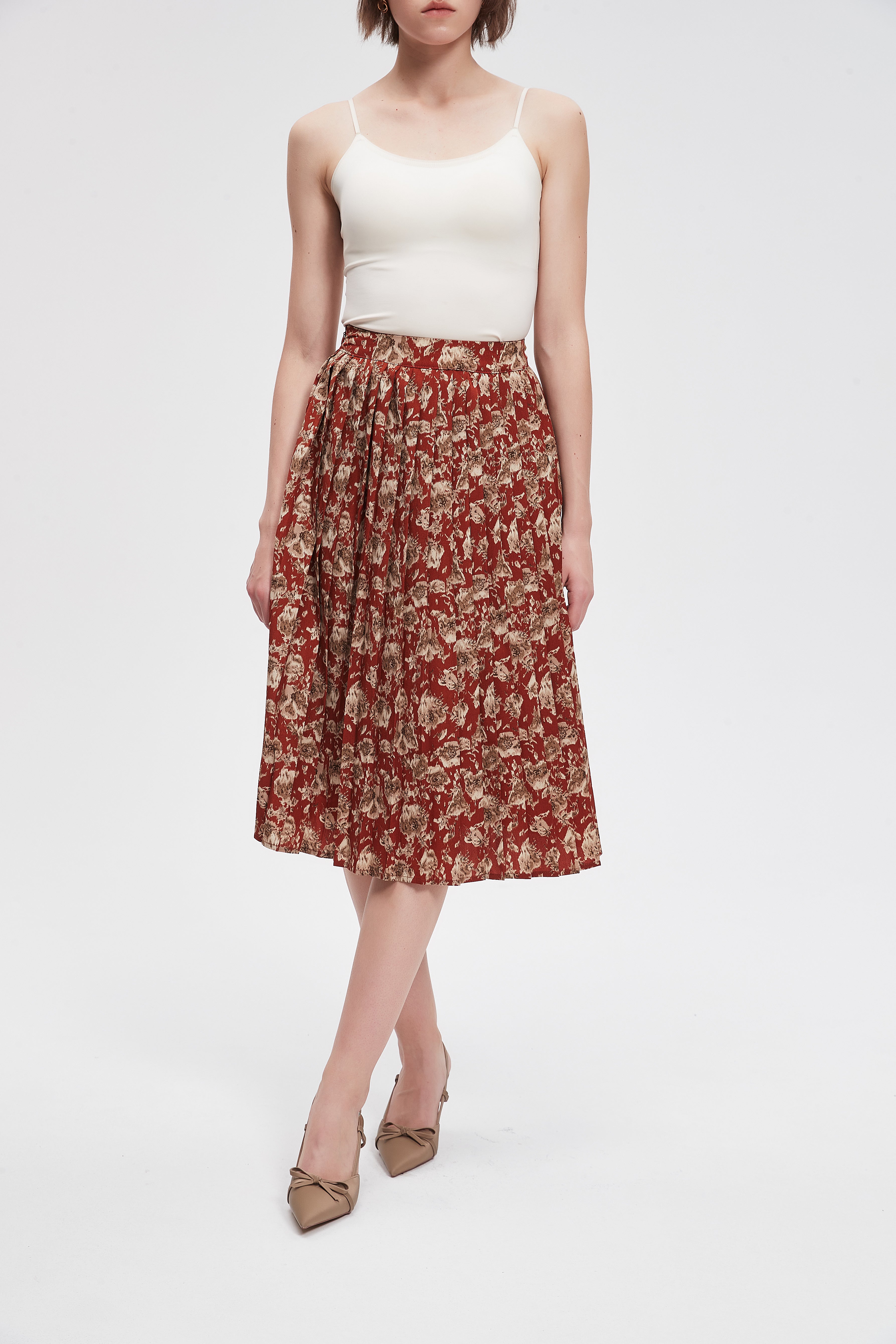 This knee-length, patterned skirt with a wide cut adds a touch of elegance to your wardrobe. Featuring a unique design that combines comfort and fashion, this skirt offers freedom of movement and is suitable for all occasions. It can be worn with a simple top or even an elegant blouse, making it the perfect choice for everyday occasions. Made from high-quality materials, this skirt offers an attractive appearance with its beautiful prints that reflect your refined taste. Don't miss out on this unique piece, perfect for an attractive look that reflects your personal style. Product number: ma0114w254vt