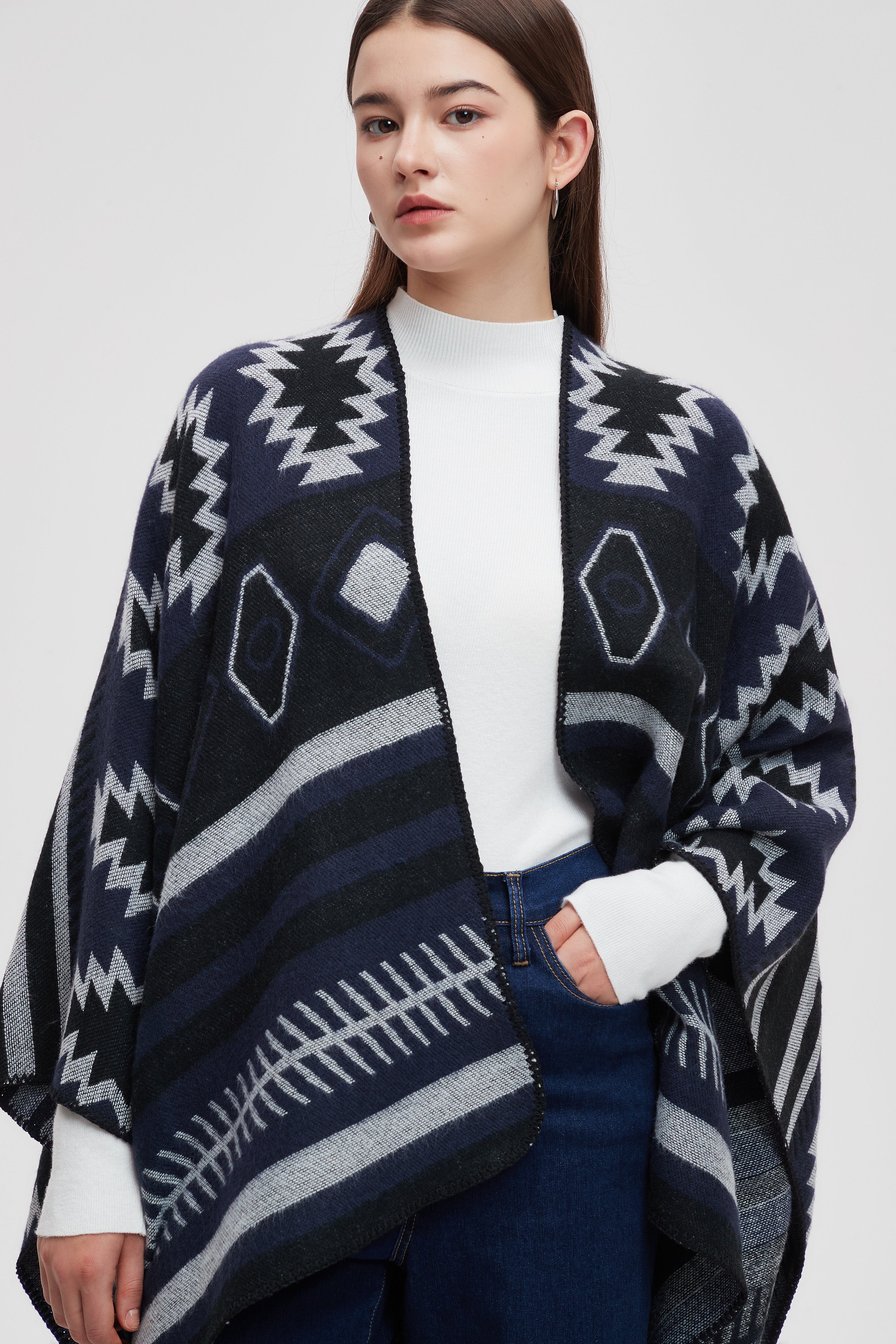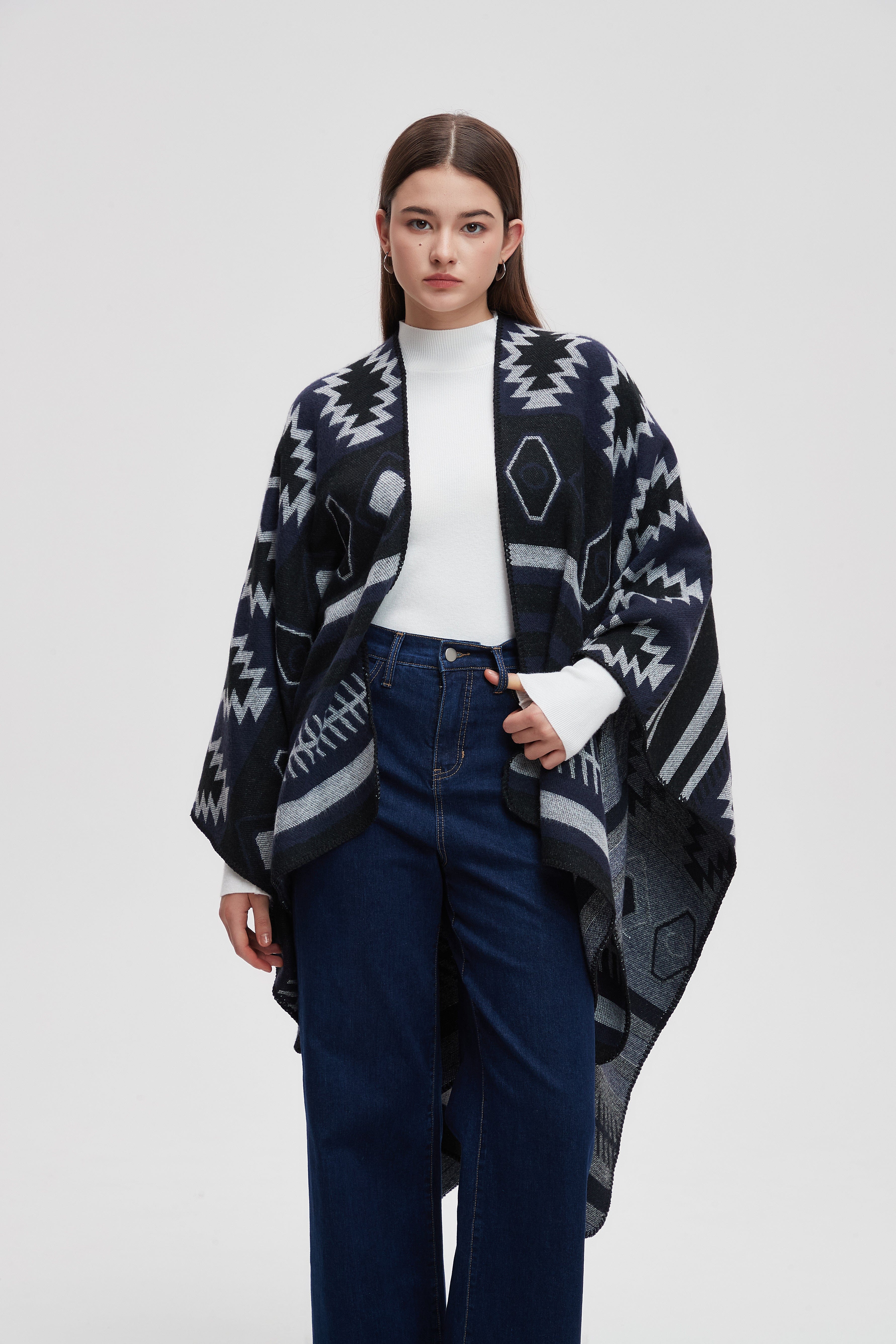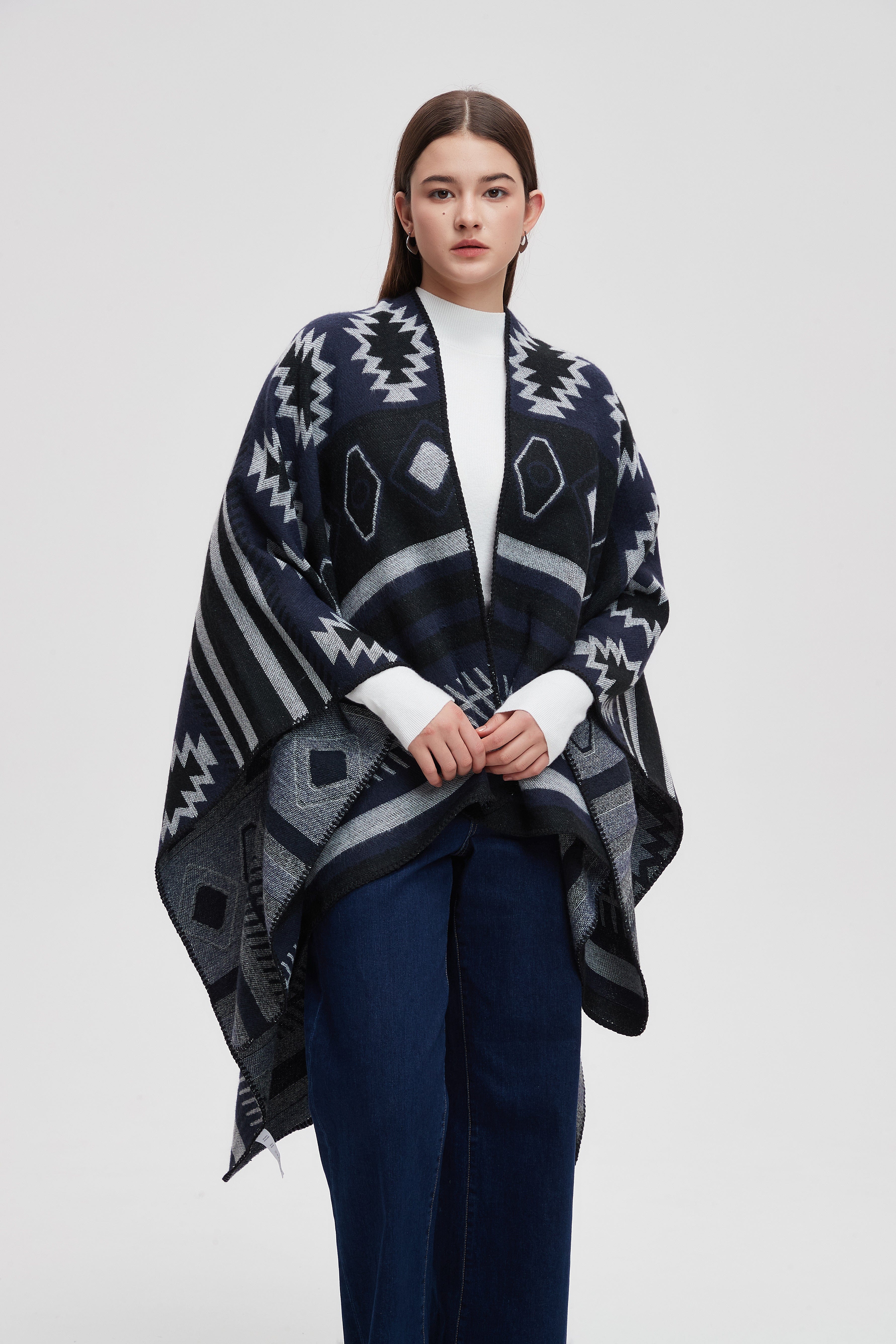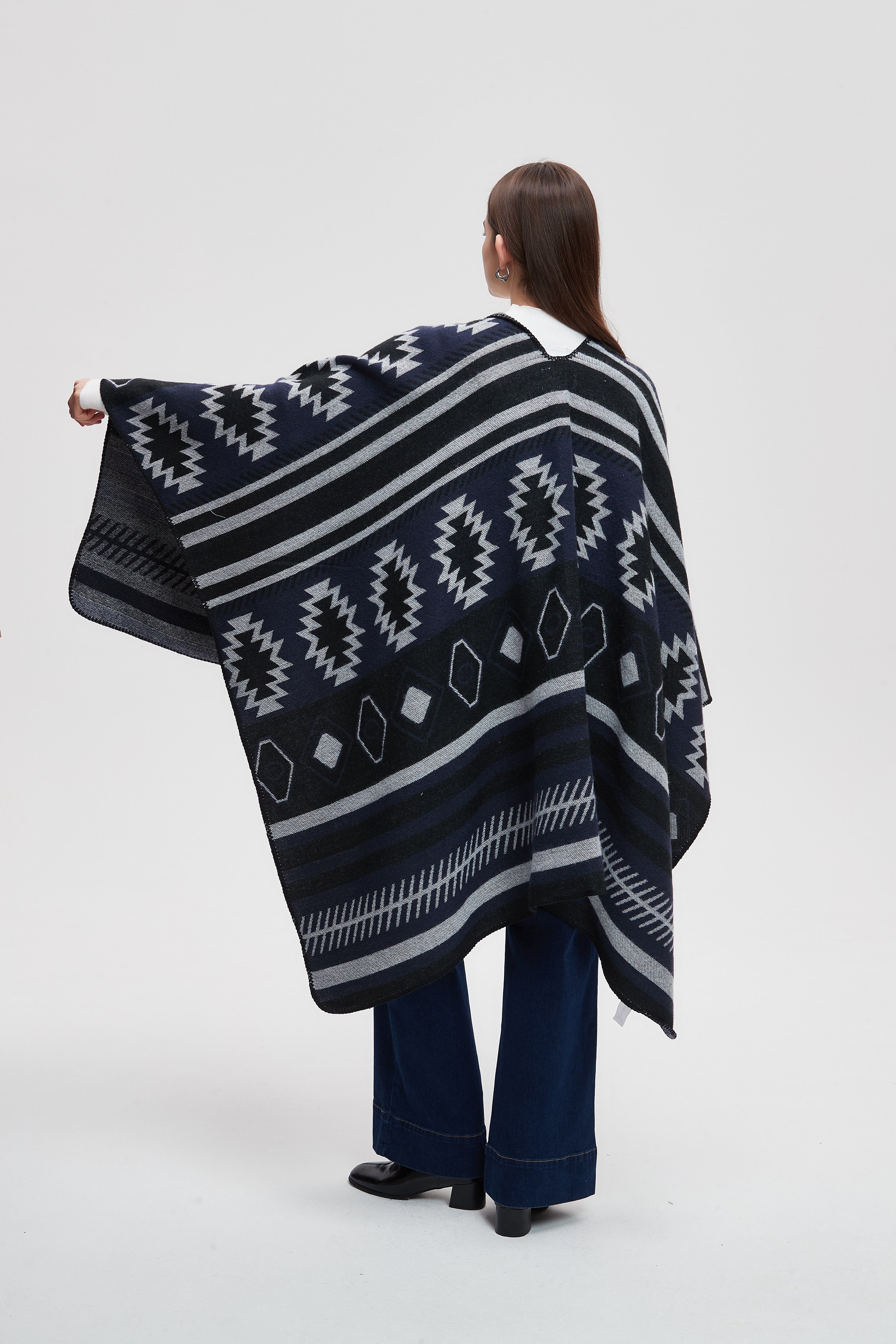 Wrap yourself in comfort and style with the Striped Long Back Poncho. This versatile piece combines chic design with practicality, featuring a unique striped pattern that adds a touch of flair to any outfit. The flowing silhouette is perfect for layering, making it an ideal choice for both casual outings and cozy evenings at home. Crafted with soft, breathable fabric, this poncho offers warmth without sacrificing comfort. Don't miss out on enhancing your wardrobe with this stunning piece. Product Number: ma0211w254dq