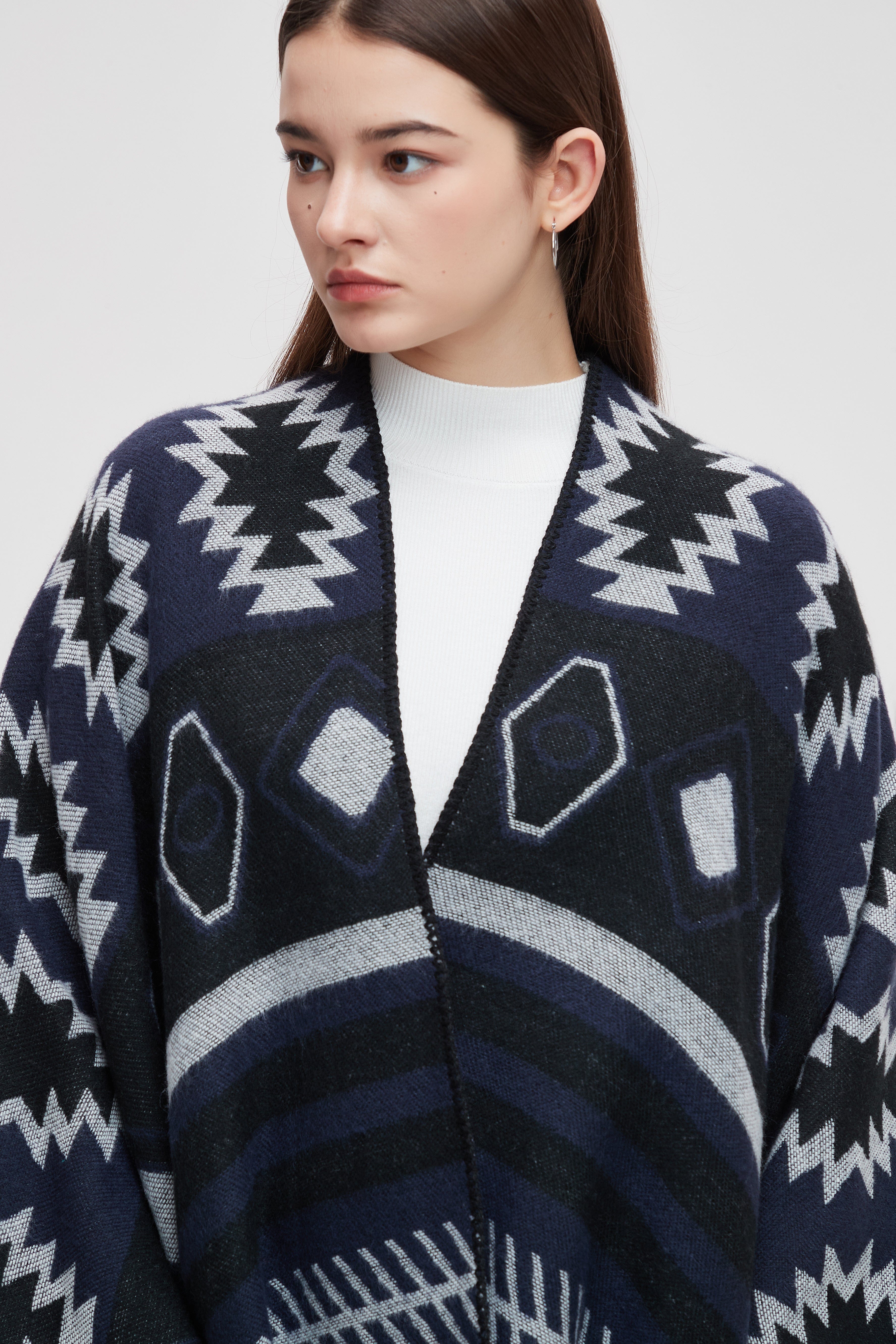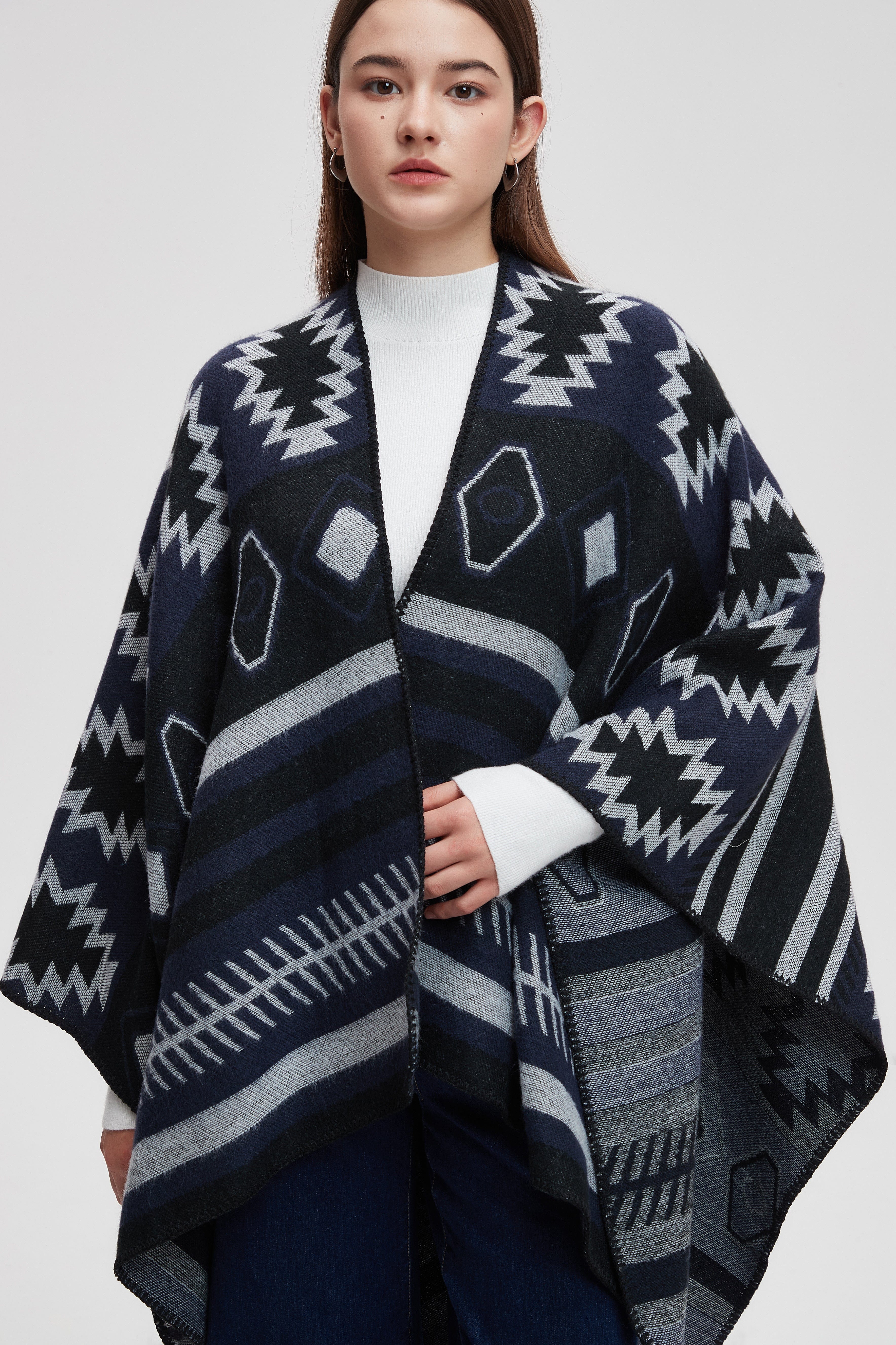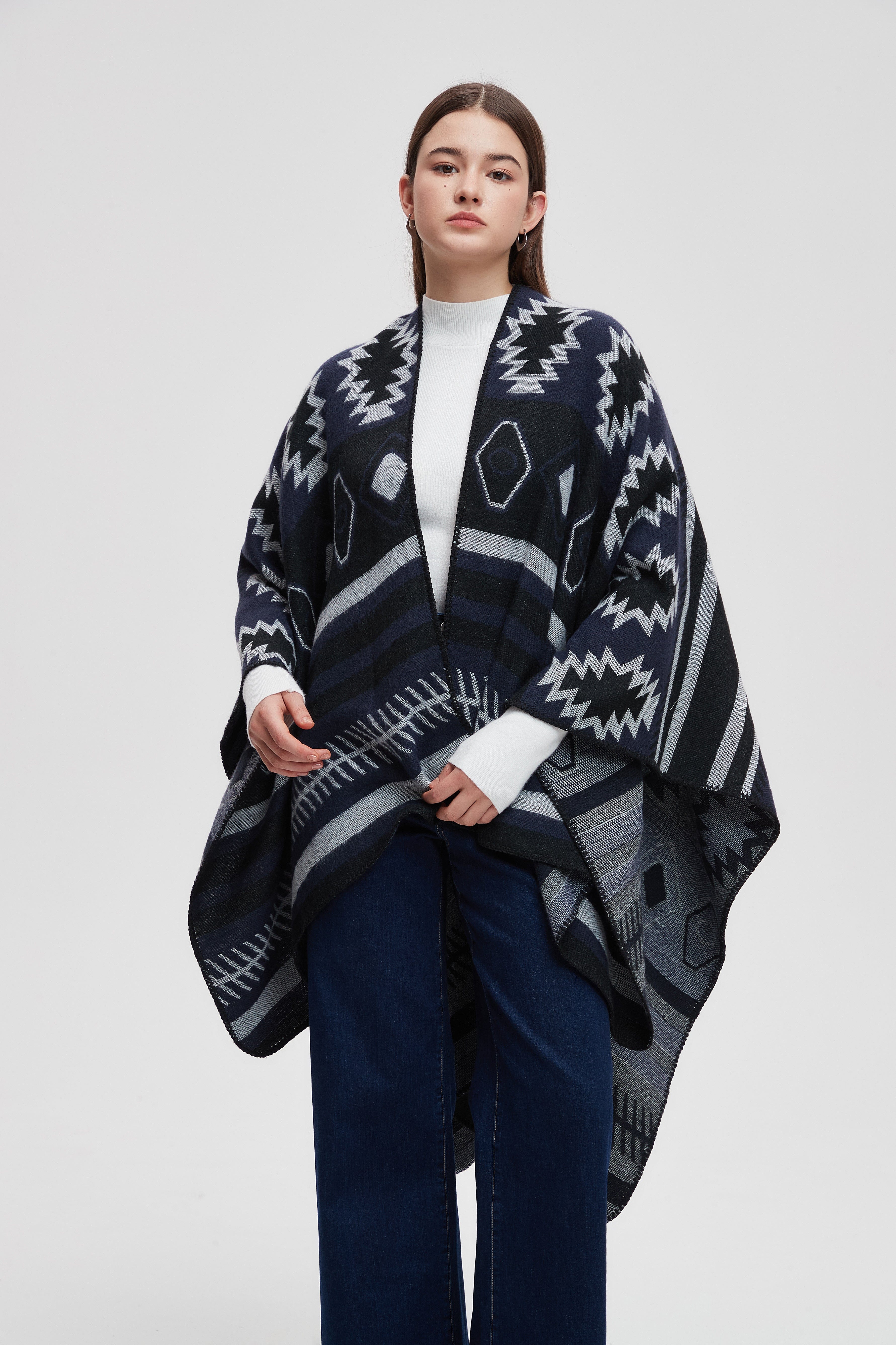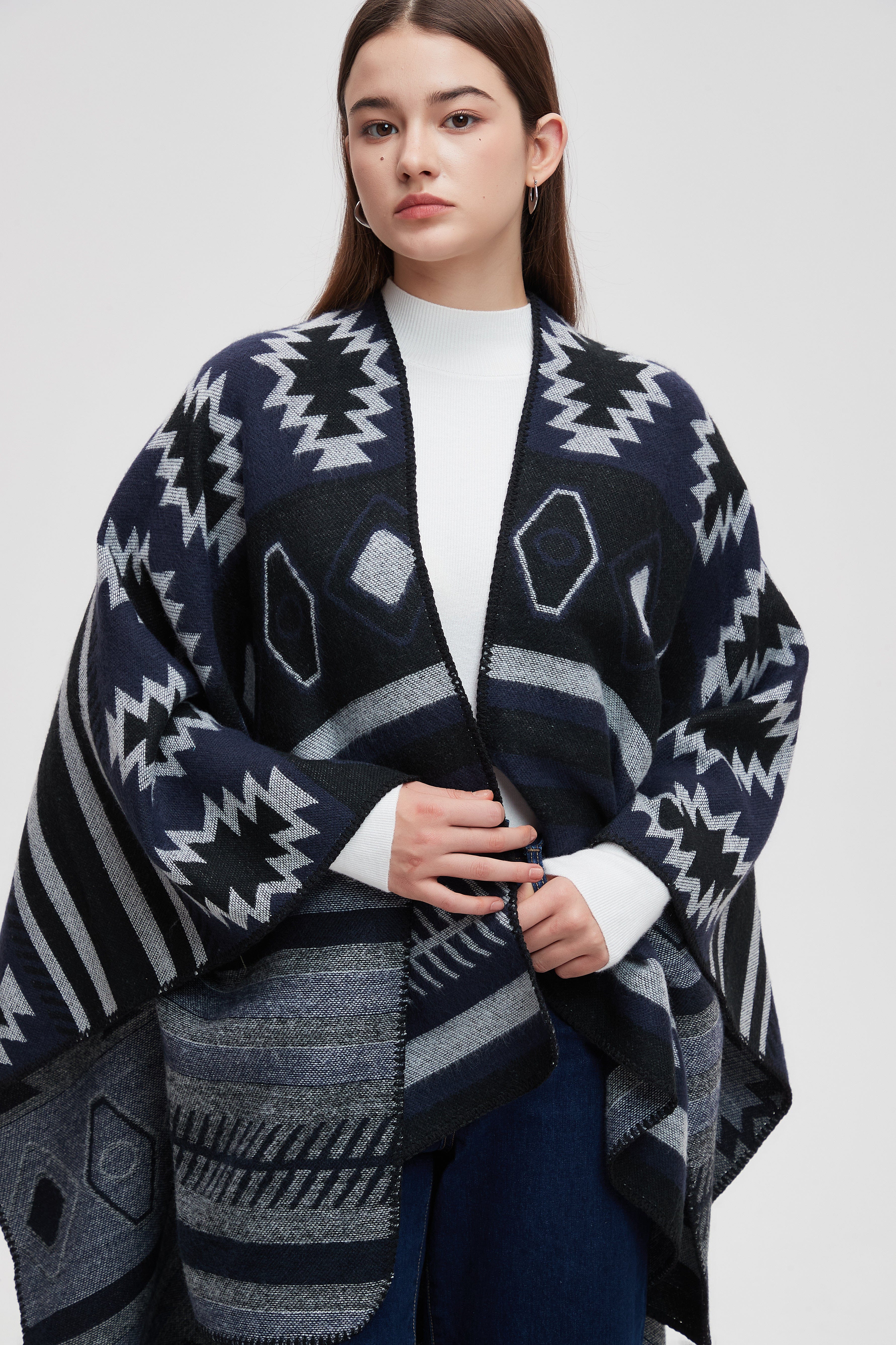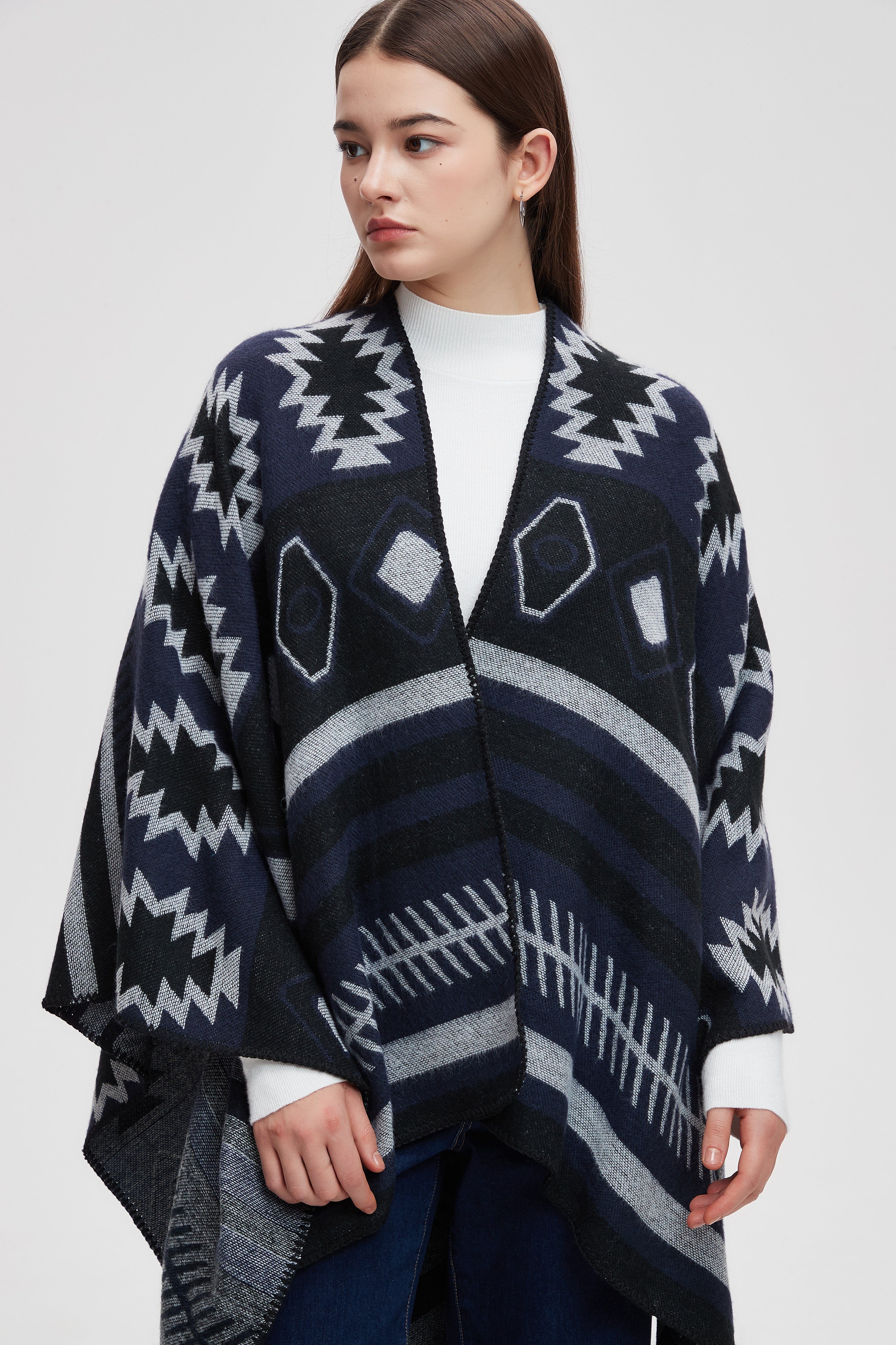 Wrap yourself in comfort and style with the Striped Long Back Poncho. This versatile piece combines chic design with practicality, featuring a unique striped pattern that adds a touch of flair to any outfit. The flowing silhouette is perfect for layering, making it an ideal choice for both casual outings and cozy evenings at home. Crafted with soft, breathable fabric, this poncho offers warmth without sacrificing comfort. Don't miss out on enhancing your wardrobe with this stunning piece. Product Number: ma0211w254dq