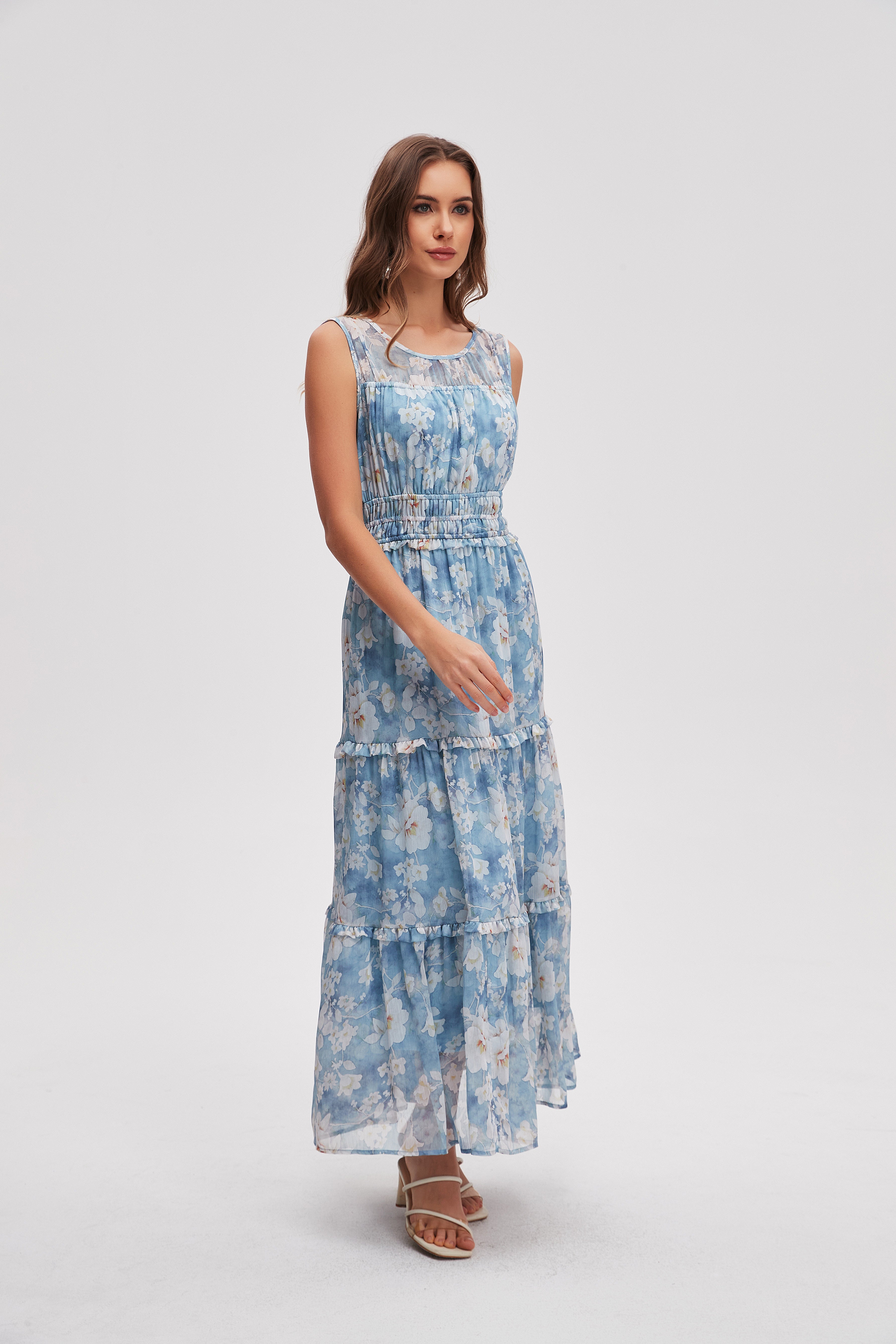 A printed sleeveless maxi dress is more than just a garment; it's a vibrant tapestry of style and comfort that allows you to embrace your individuality. Crafted with intricate designs that echo the beauty of nature, this dress showcases a landscape of colors that will make you stand out effortlessly. Ideal for warm days or casual gatherings, it excels in versatility. Moreover, the breathable fabric ensures all-day comfort while maintaining a flattering silhouette. Product Number: ma0263s261tzf