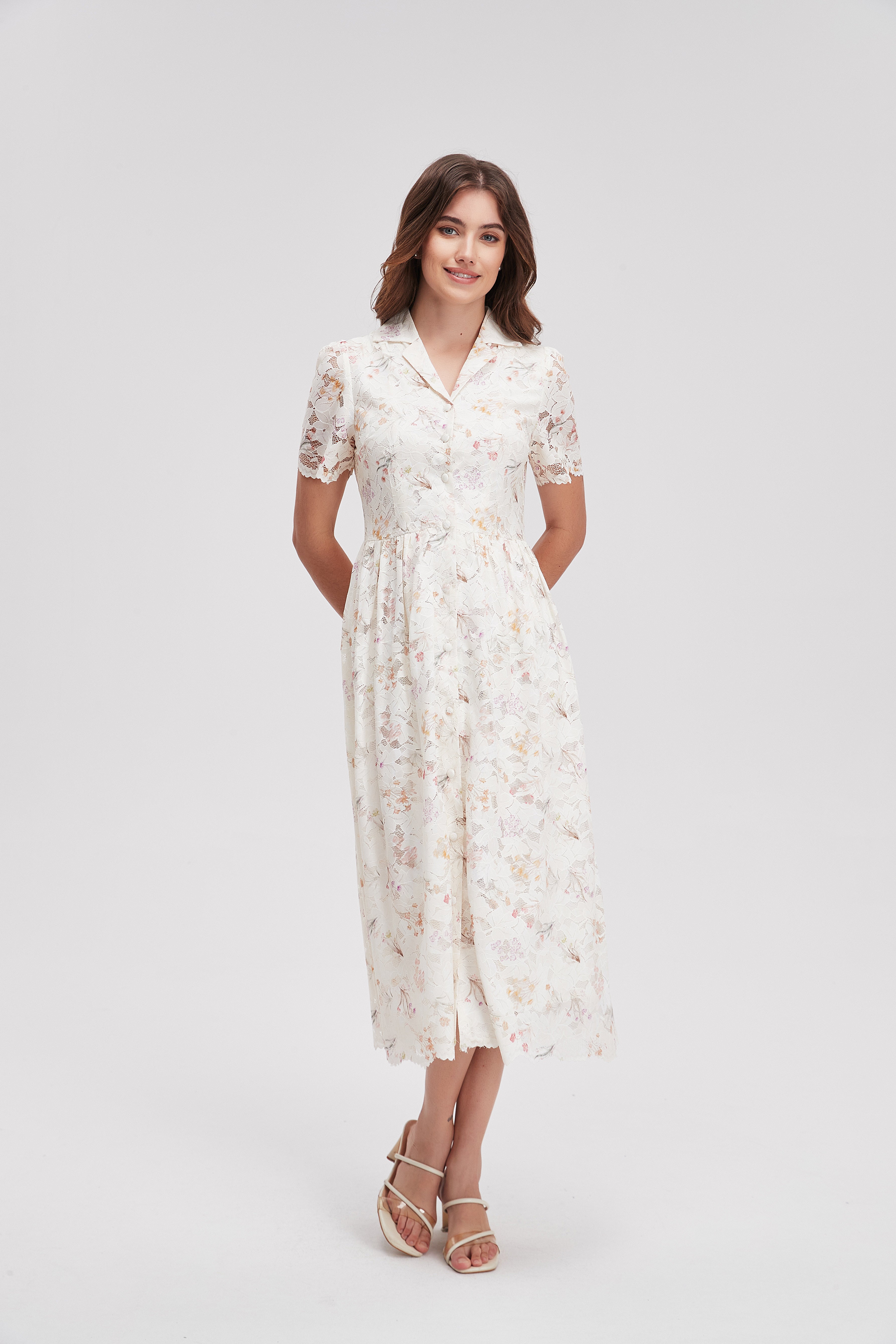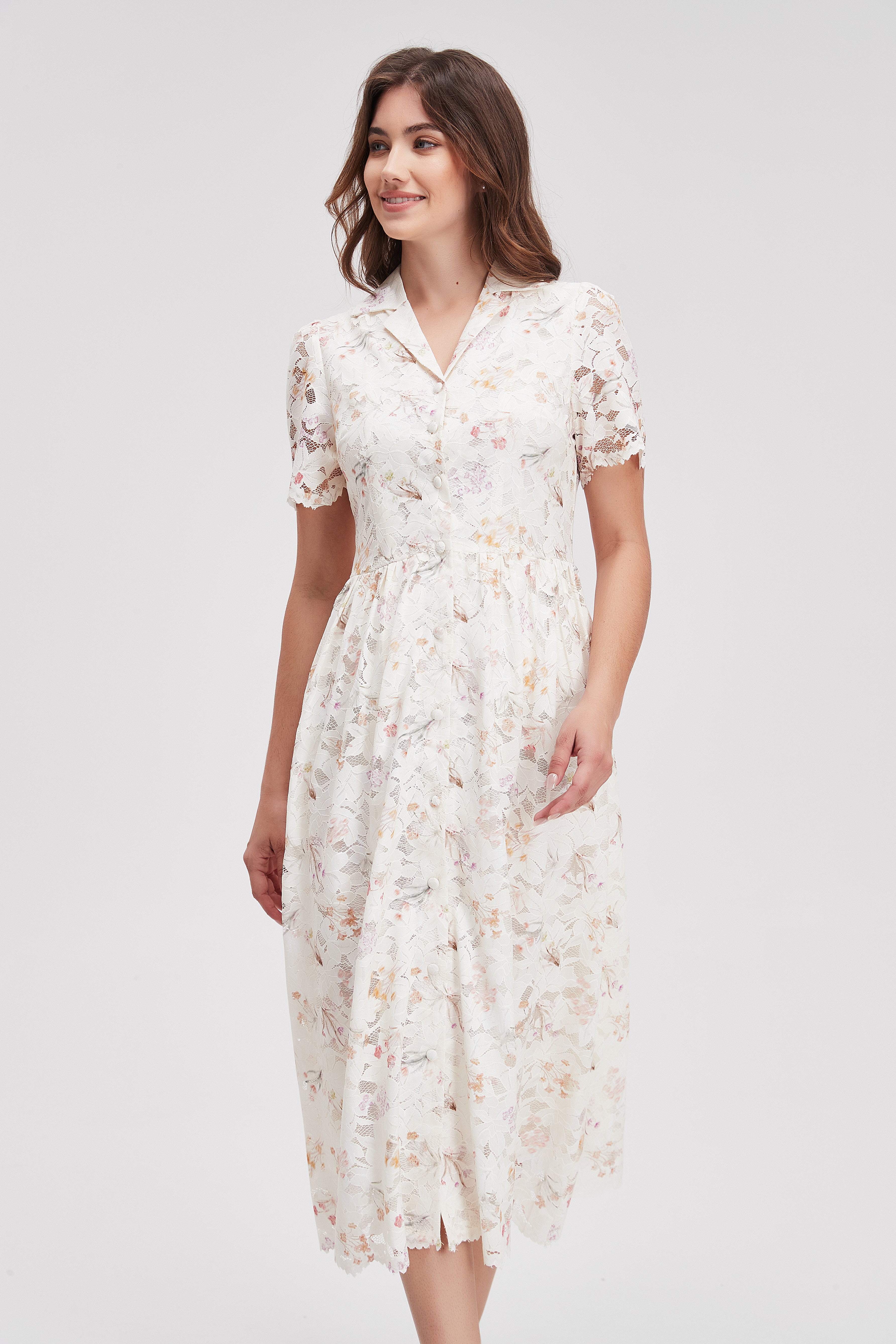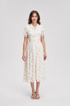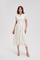 Feel the charm of effortless style with our V-Neck Floral Dress with Front Buttons and Short Sleeves. This lovely dress features a flattering V-neckline that beautifully frames your face, while the short sleeves offer a breezy touch perfect for warm days. The front buttons add a playful accent, making it easy to dress up or down for any occasion. Crafted from soft, breathable fabric, this dress flows gracefully with every step. Product Number: ma0267s261to