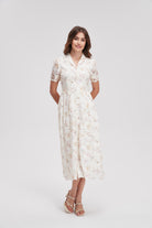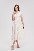 V-Neck Floral Dress With Front Buttons And Short Sleeves
