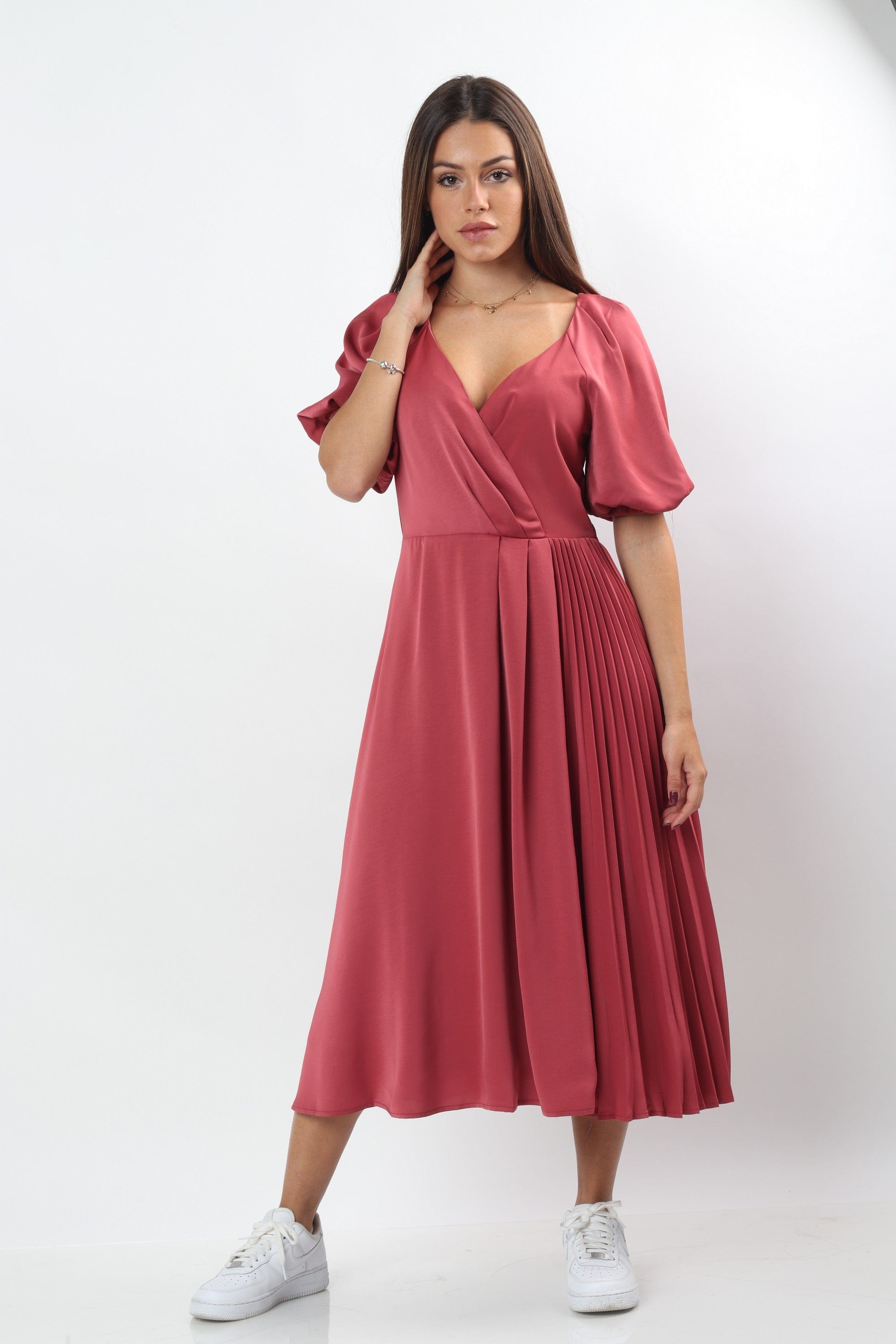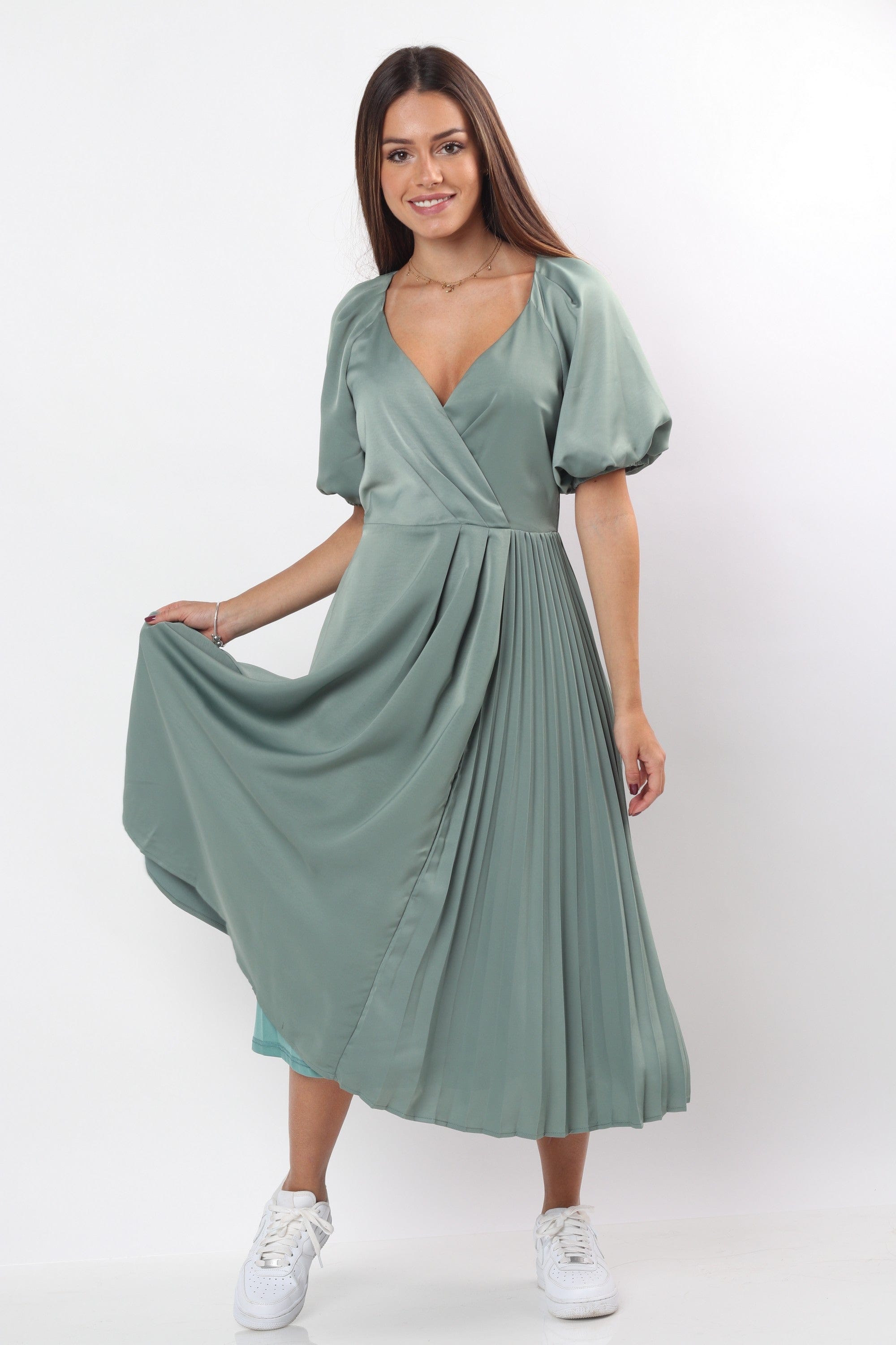 Effortlessly chic and supremely wearable, the Solid Midi Puffed-Sleeve Dress elevates everyday dressing with feminine detail and easy-care performance. Cut in a flattering A-line silhouette and falling to a versatile midi length, this plain solid design smooths the silhouette while allowing graceful movement. Short puffed/ruffle sleeves and a V-neckline add romantic shape and visual interest, while the regular fit keeps comfort front and center. Crafted from 100% polyester, the fabric is wrinkle-resistant and low-maintenance—perfect for busy days—while the unlined construction provides a light, breathable feel. Pocketless and beltless for a clean, modern profile, it transitions effortlessly from casual daytime outings to relaxed dinners. Add to your wardrobe at Fashion SA—shop now to discover how this pared-back piece delivers maximum style with minimal fuss.