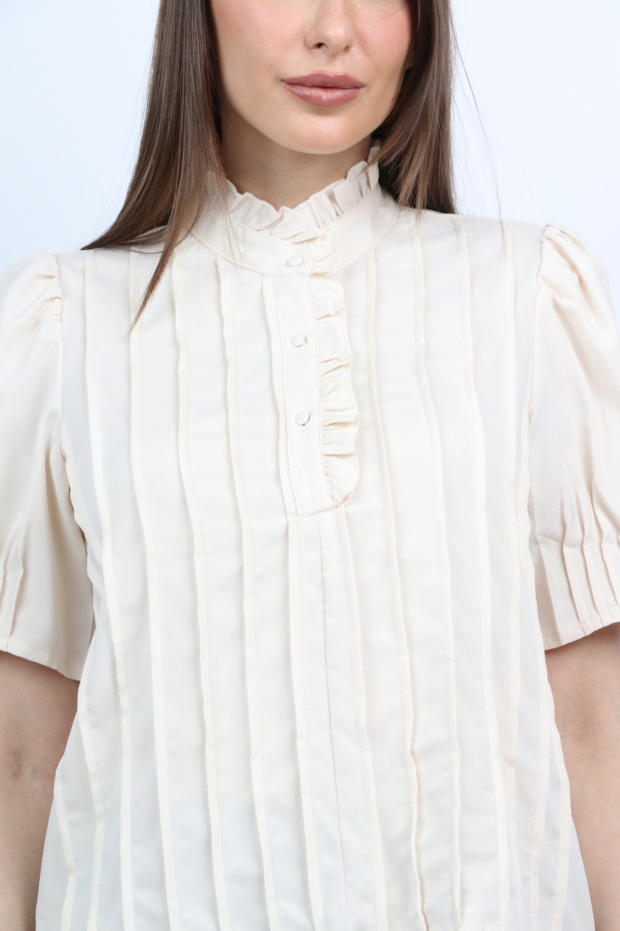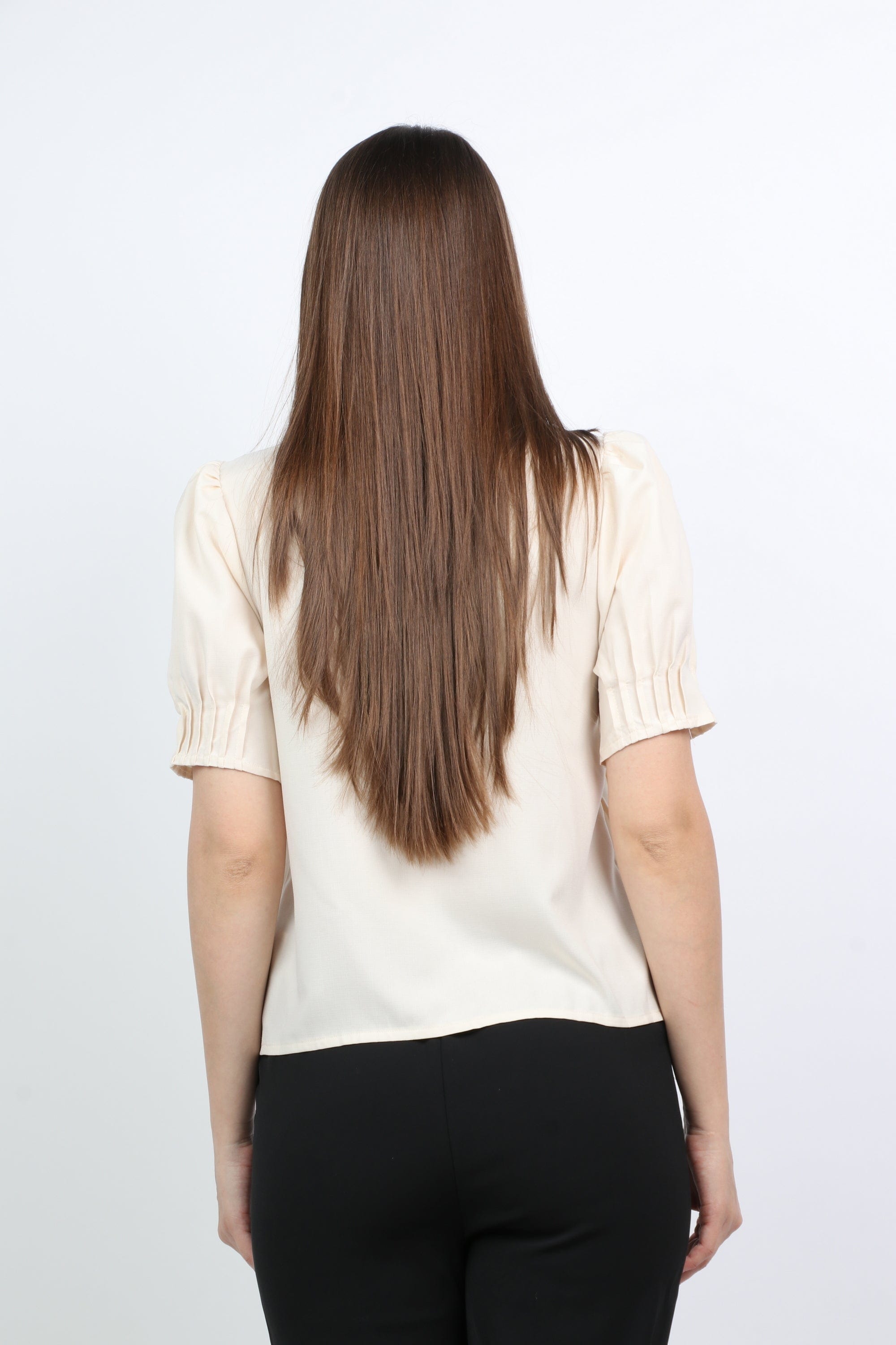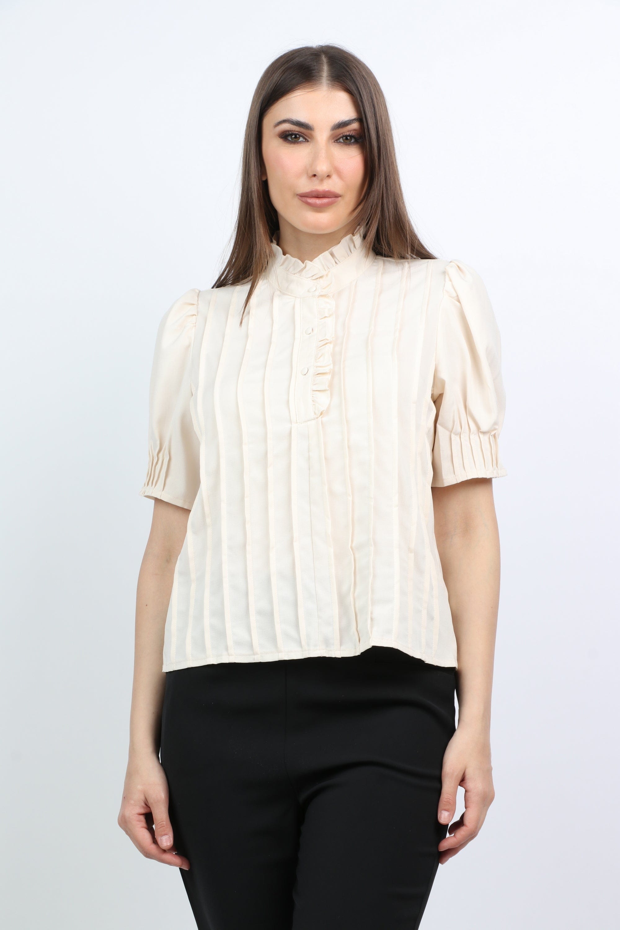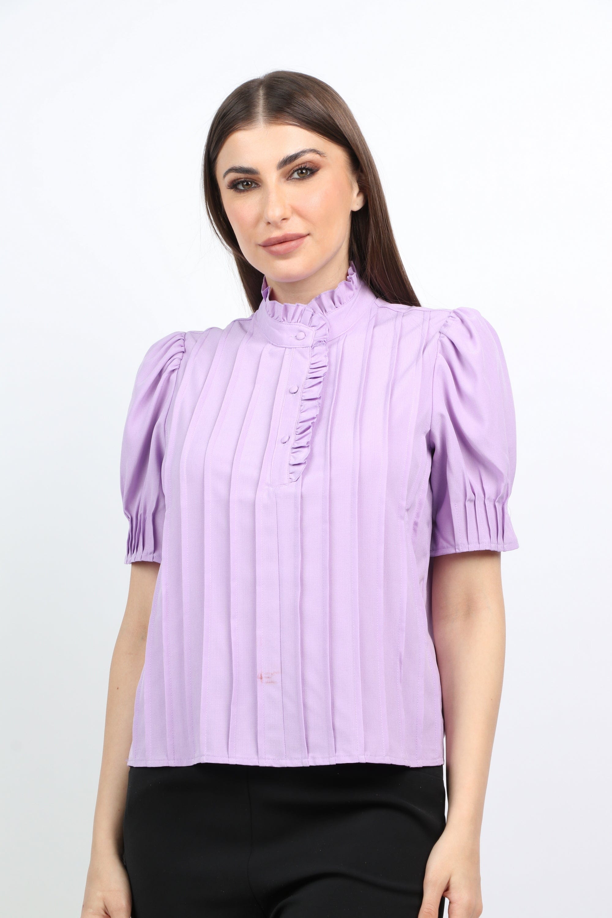 Prepare for an elegant and distinctive look with a plaster blouse with front buttons and a short blown for women. This blouse is characterized by its unique design that combines elegance and comfort at the same time, making it the perfect choice for your official appearance. Designed in distinctive colors of beige and purple to give a touch of elegance and attractiveness to your look. Get now on the official blouse of Pliece from Mica Enjoy unparalleled elegance on every occasion. Now ask for Saudi Fashion and get elegant with one click. Product number: mgl0289-22Q102