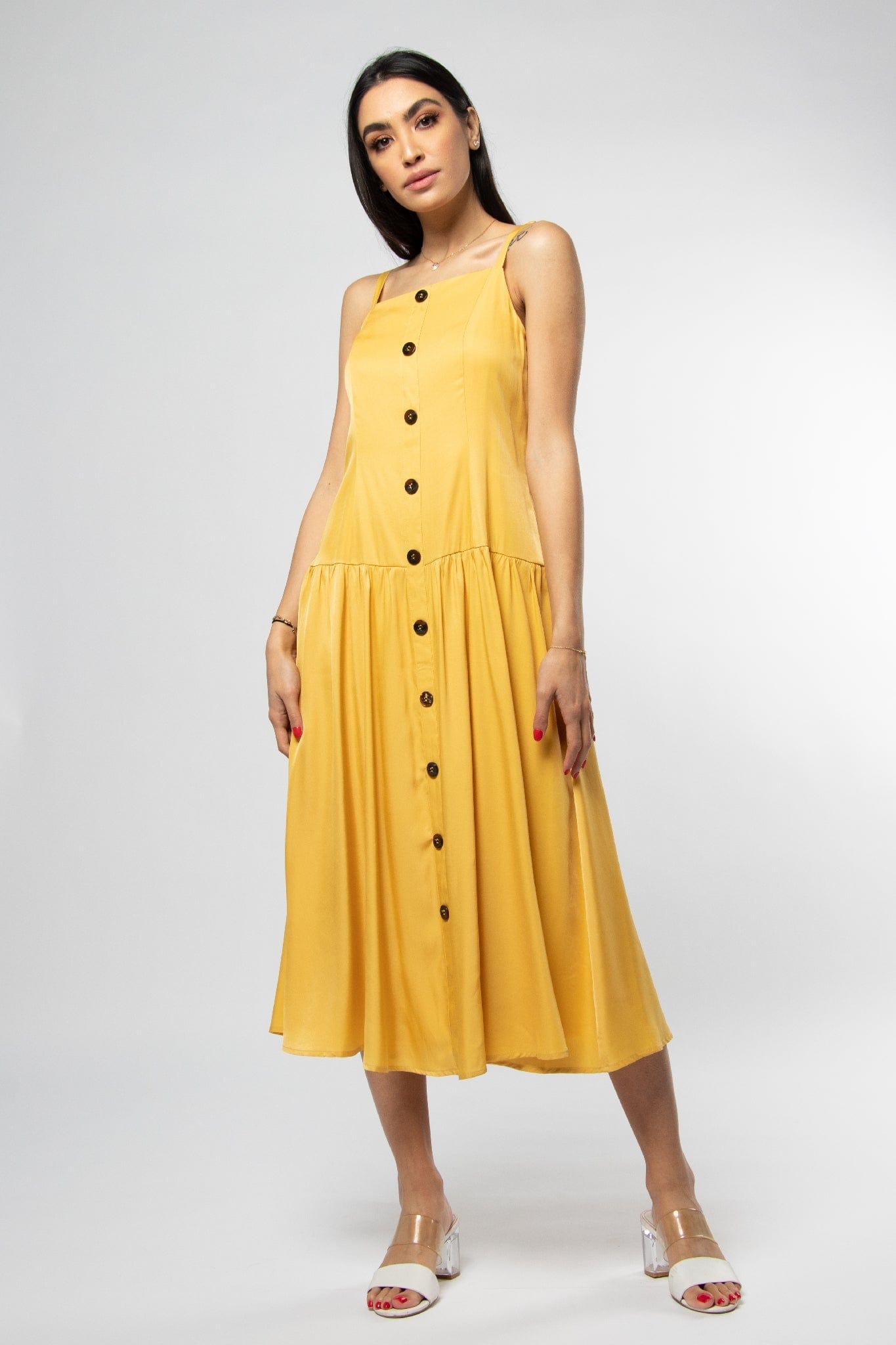 - Midi length provides elegant coverage while remaining summery and versatile