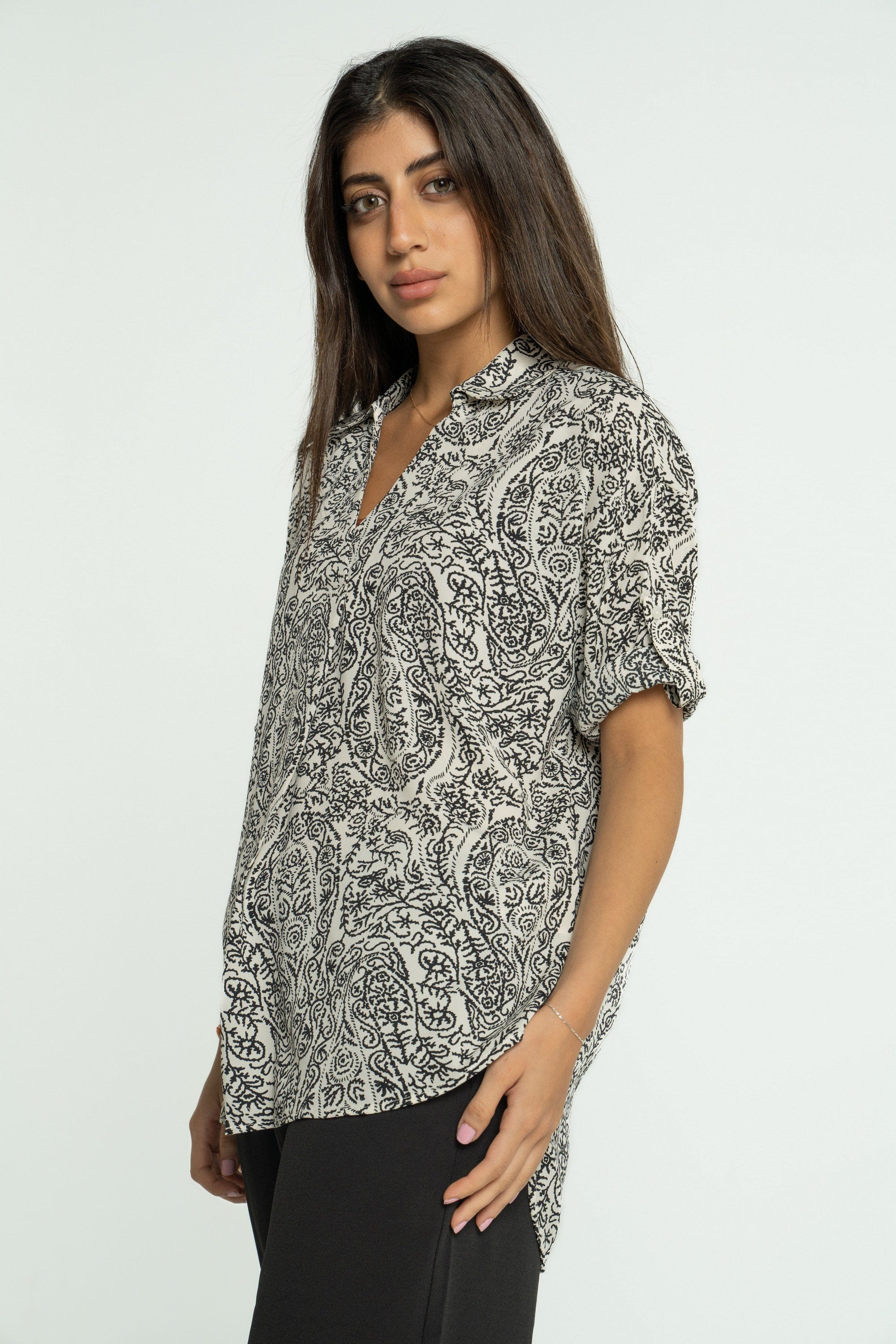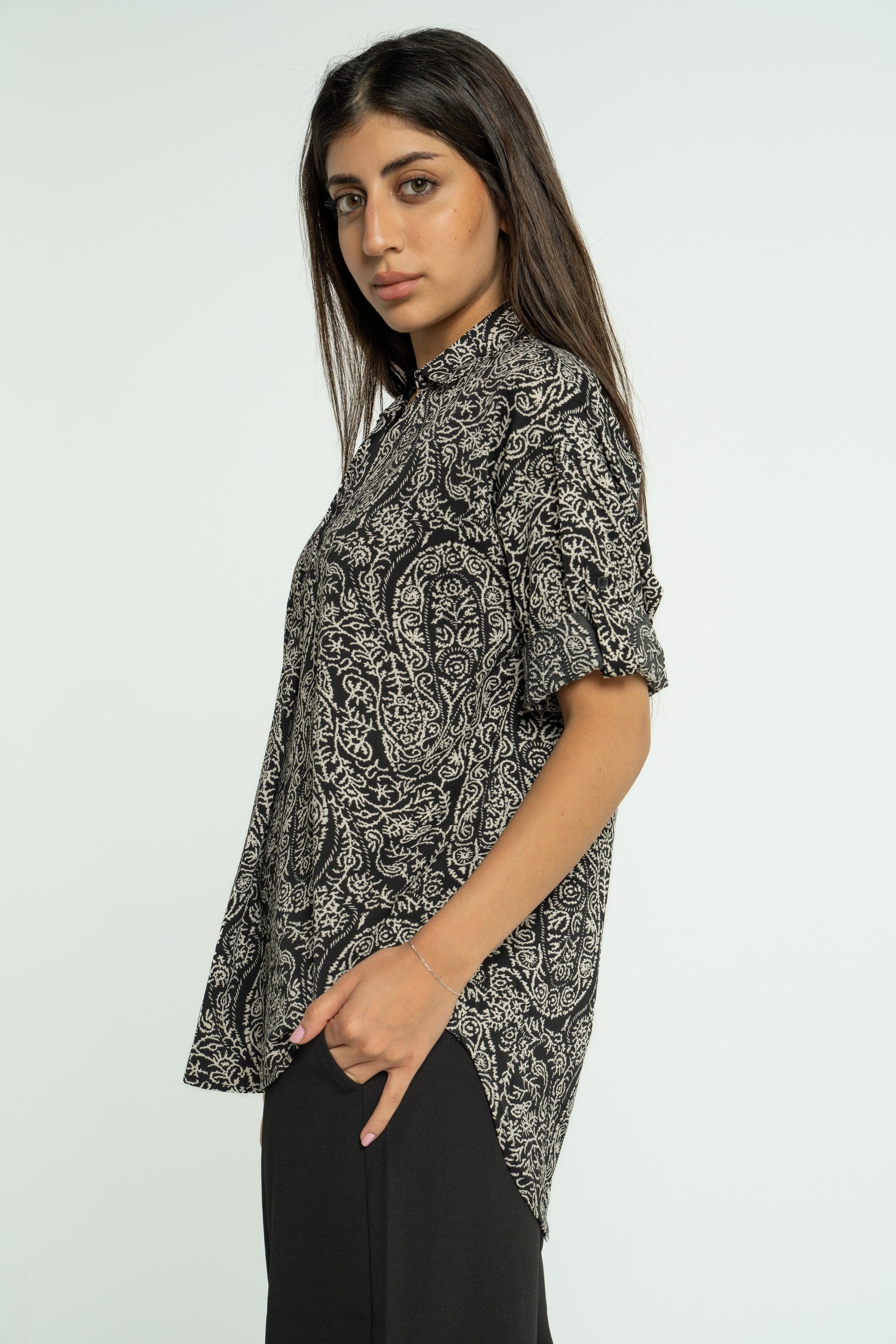 Bring a touch of nature's beauty into your everyday style with the Mica Women's Floral Blouse. This lovely piece features a flattering V-neck and 3/4 sleeves, making it perfect for any occasion. The soft fabric drapes beautifully, ensuring comfort while keeping you stylish. The floral design adds a fresh and cheerful vibe, easily paired with jeans or skirts for a casual outing or a more polished look. Embrace your femininity and express your unique style today. Don't miss out—order your Mica Floral Blouse through Fashion Saudi and brighten your wardrobe! Product Number: mlc035923q308
