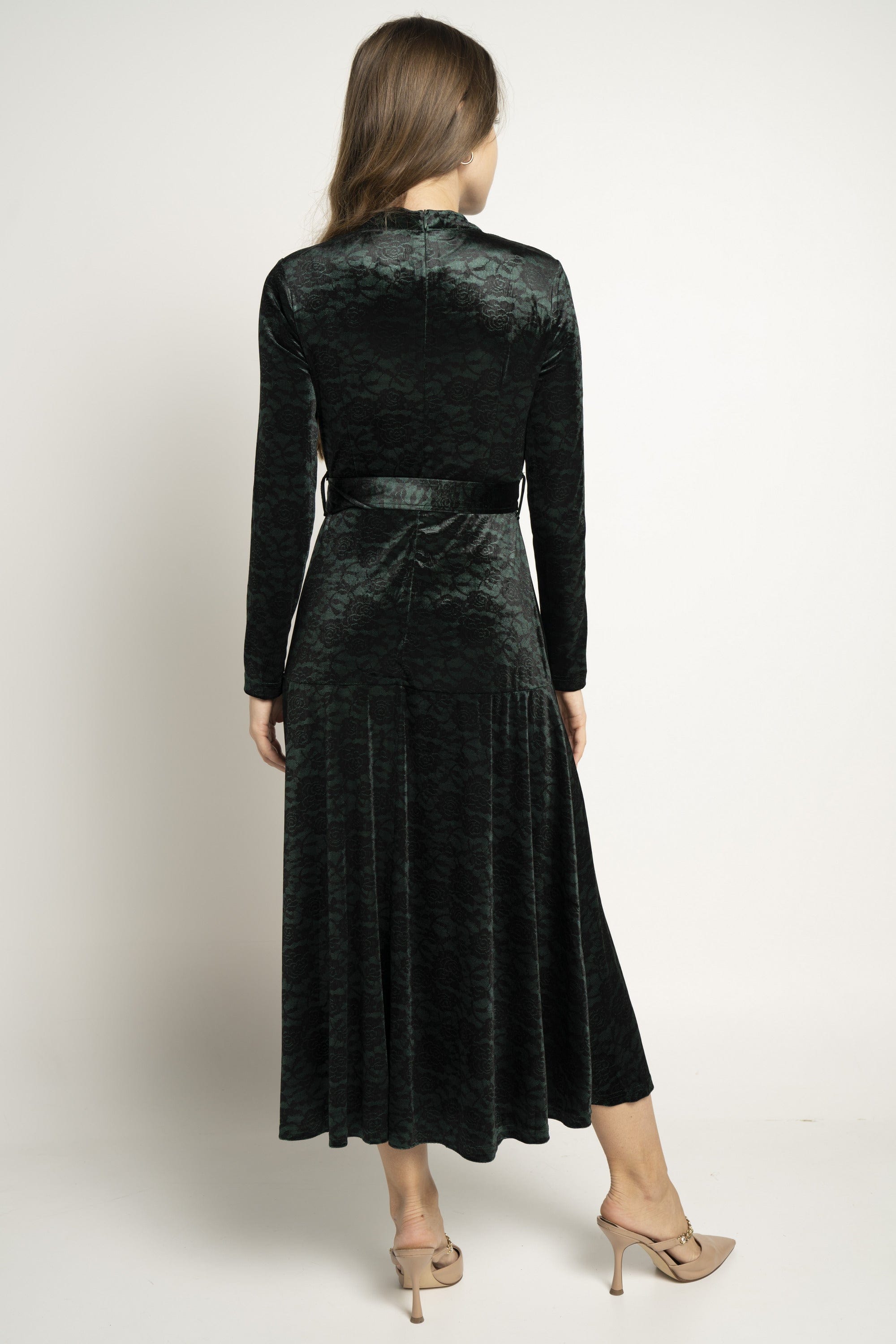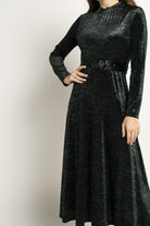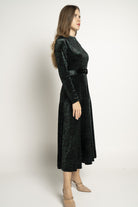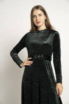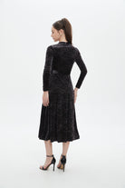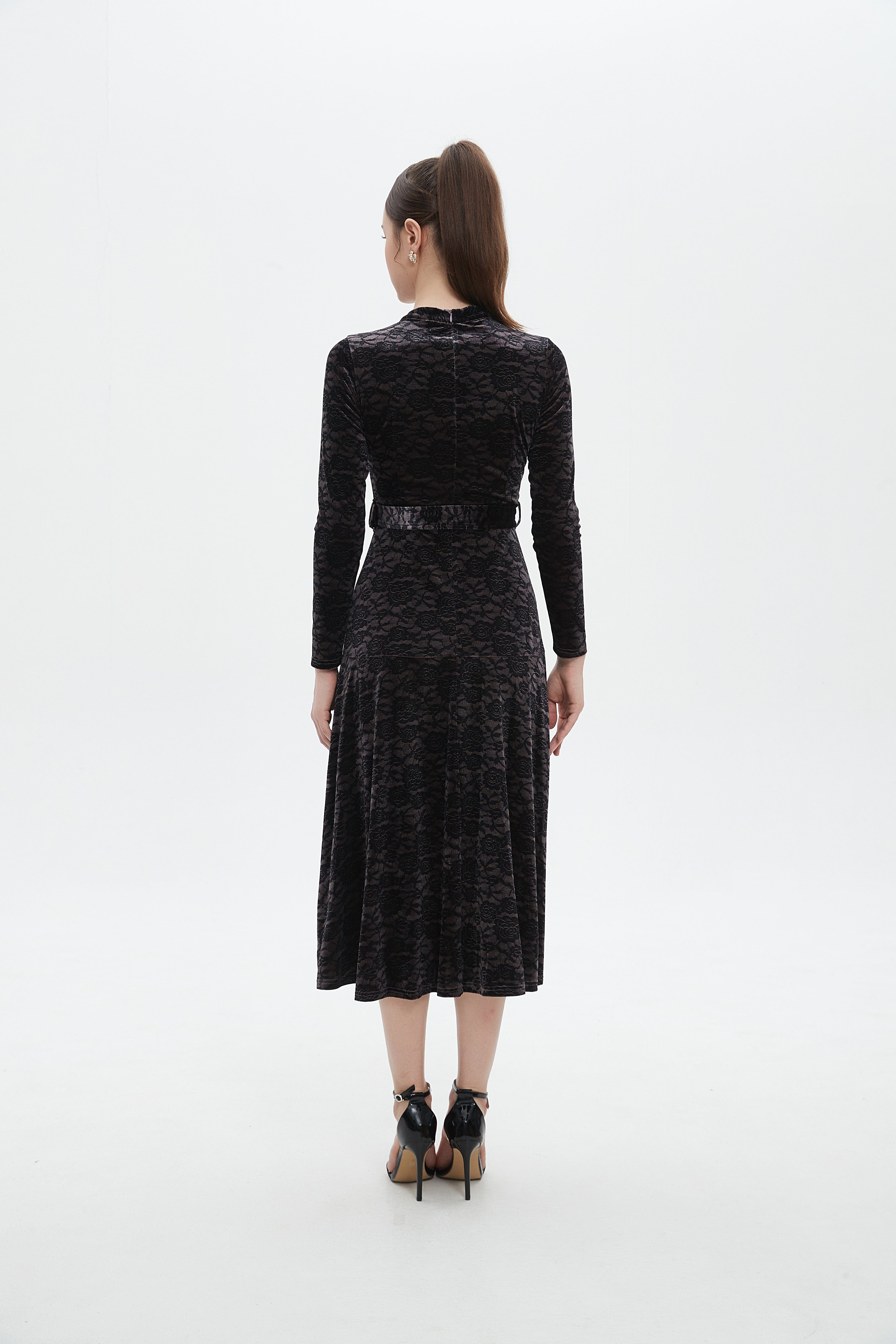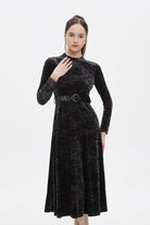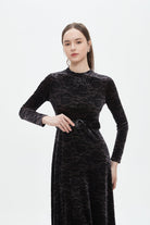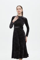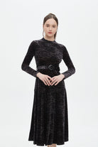 Make a statement in understated elegance with the Black Textured Midi Belted Dress — an effortlessly chic choice for sophisticated wardrobes. The flattering A-line silhouette skims the waist and gently flares over hips while the refined midi length delivers polished, versatile coverage. Crafted from 95% polyester and 5% elastane, the textured black fabric offers wrinkle-resistant structure with just enough stretch for comfort, and the medium-weight composition suits year-round wear. Long sleeves add coverage and balance, while the included belt defines the waist; unlined construction keeps the feel light and breathable. Pocketless design maintains a sleek profile for formal settings. Ideal for elegant occasions, office-to-evening looks or special events, this regular-fit dress is a modern essential. Discover this sophisticated piece at Fashion SA and update your wardrobe with confidence.
