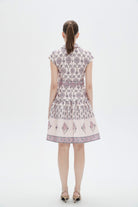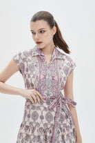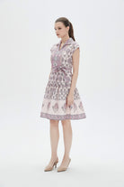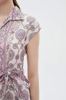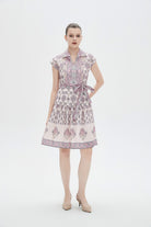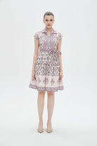 This multicolor patterned knee-length belted dress is a summertime staple that balances playful print with polished structure. Cut in a flattering A-line silhouette from 100% polyester, its cap sleeves and knee-grazing length create an easy, feminine profile that flatters a regular fit without clinging. The button-front closure and included self-tie belt let you define the waist, while the unlined construction keeps the feel lightweight and breathable for warm-weather days. The pocketless finish maintains clean lines and the wrinkle-resistant polyester preserves the vivid multicolor pattern between wears. Perfect for casual brunches, holiday strolls or relaxed office Fridays, this versatile piece transitions effortlessly with simple accessories. Shop Mica’s Multicolor Patterned Knee-Length Belted Dress at Fashion SA and add a colorful, low-maintenance essential to your summer wardrobe—buy now to elevate seasonal looks.