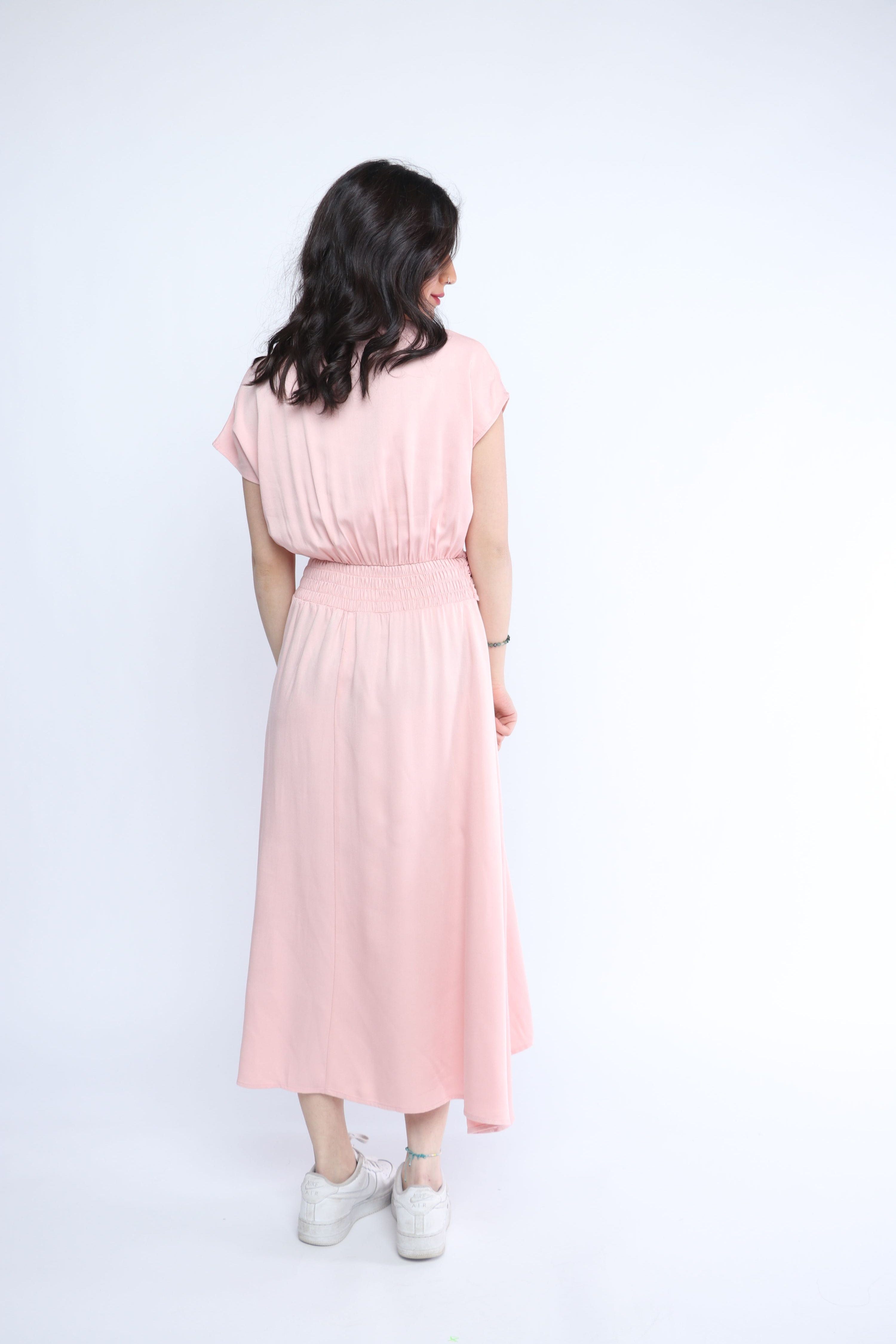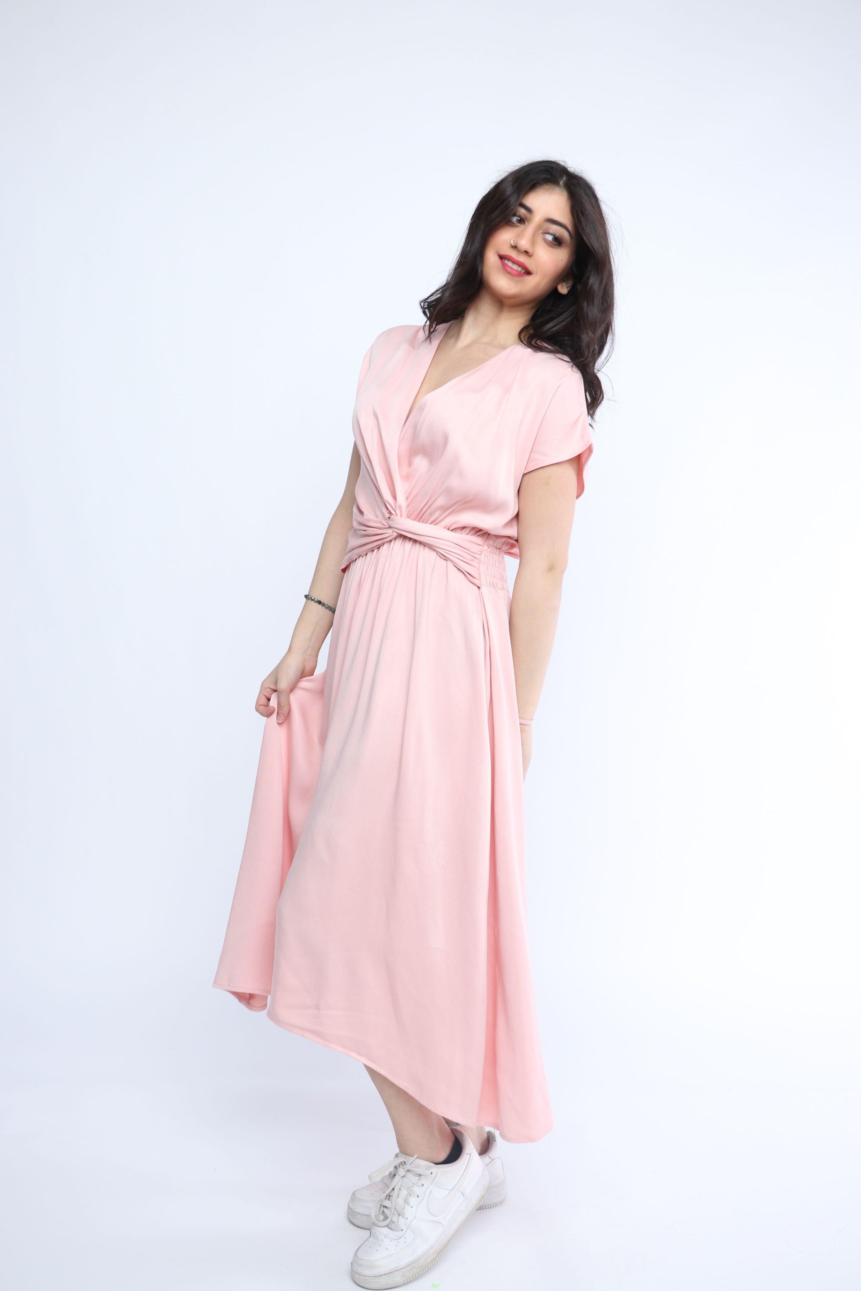 This pink plain midi belted dress is a refreshing blend of everyday ease and feminine polish, perfect for casual, all‑season dressing. Cut in a flattering A‑line silhouette from 100% rayon, the fabric offers a soft, breathable drape that skims the figure for a regular fit feel. A V‑neck and short sleeves provide easy coverage, while the elastic waist and included belt define the waist for instant shape without constriction. The unlined, medium‑weight construction keeps it breathable and layered-friendly, and the pocketless design maintains a clean, streamlined profile. Midi length offers versatile styling—from sneakers and a denim jacket for daytime to heeled sandals for sunset drinks. Discover effortless style at Fashion SA and add this wardrobe staple to your rotation today.
