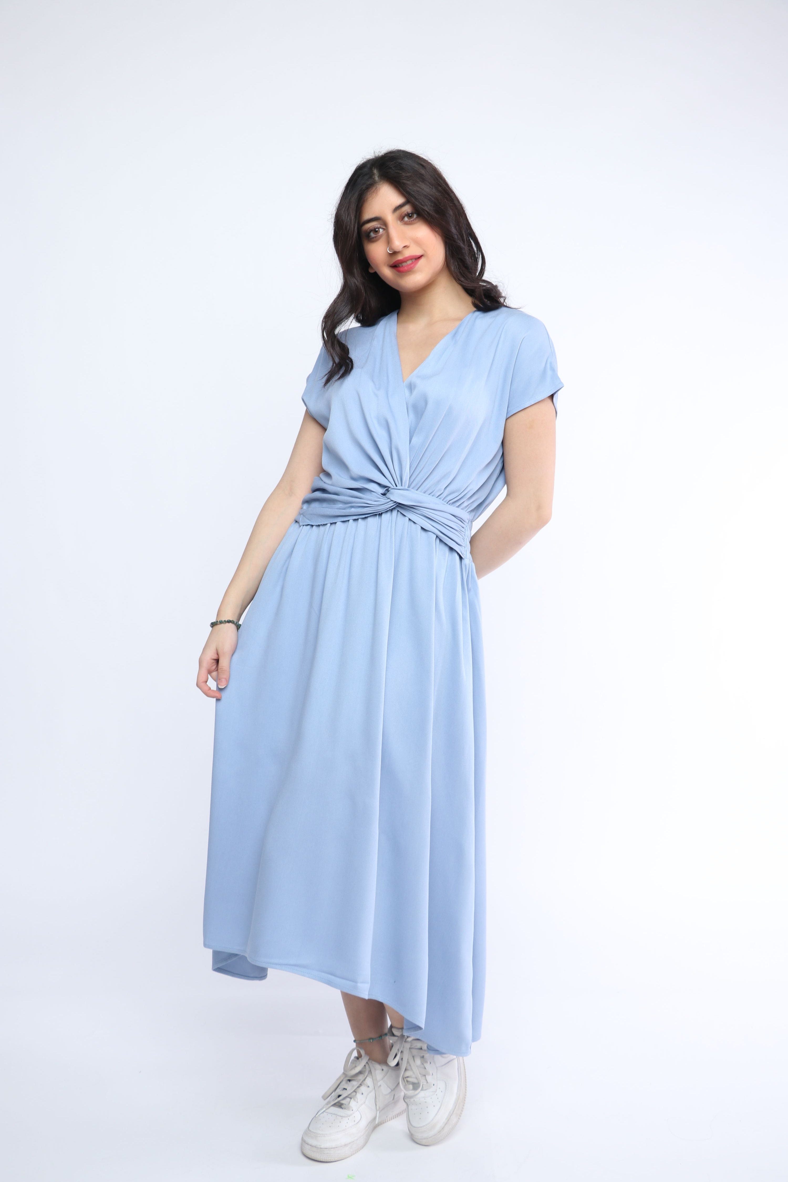 Midi Wrap Dress with Short Sleeves