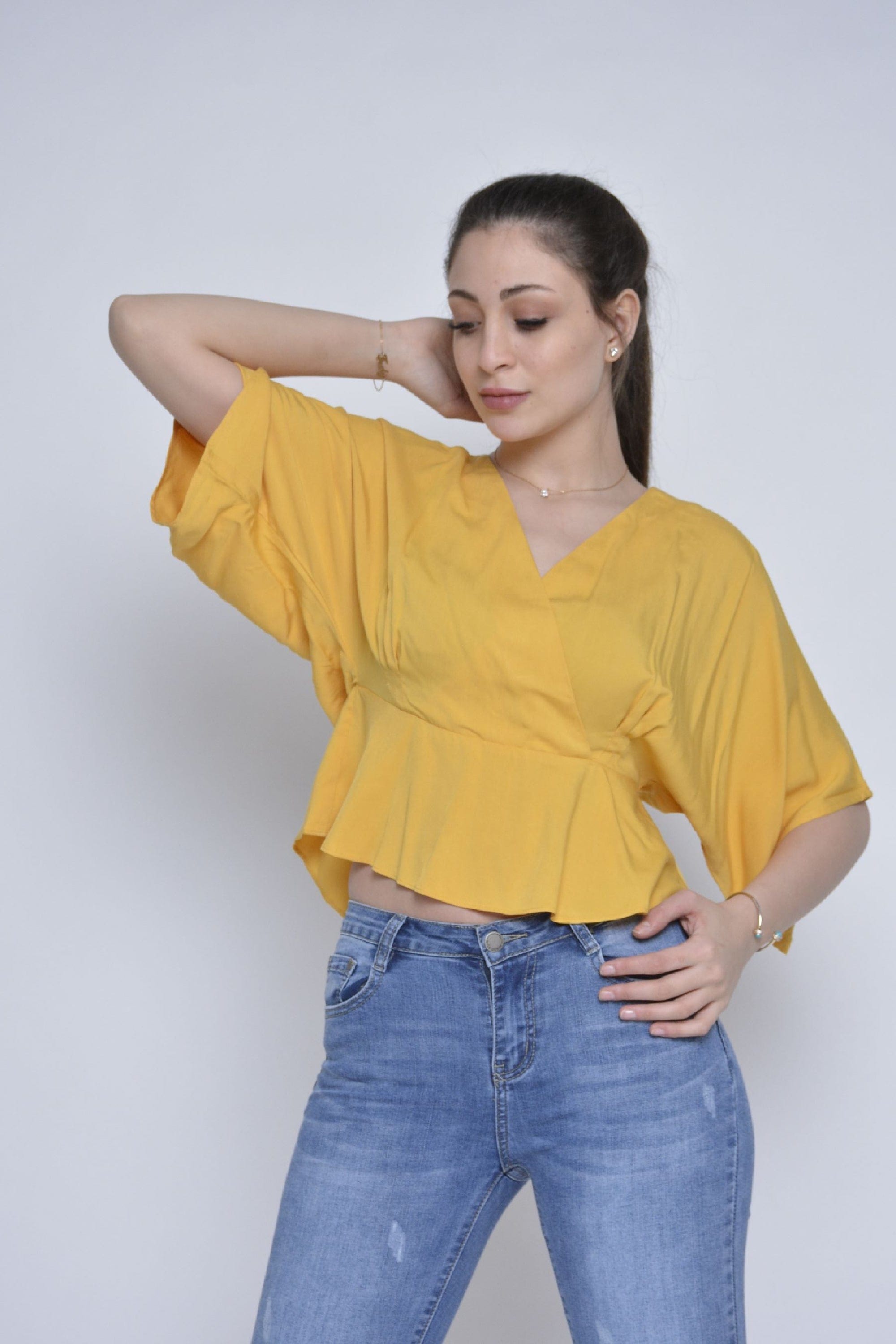 Prepare for an elegant and comfortable look with a wide blouse wrapped with a waist 3/4 km wide for women from the brand Mica. This blouse is characterized by its unique design that combines elegance and comfort, which makes it the ideal choice for women who are looking for elegance and relaxation at the same time. This blouse comes with a wide 3/4 sleeves and a wrapped waist, adding a charming feminine touch to your look. In addition, this blouse is available in great colors that include yellow mustard and bright white, to suit all tastes and add a touch of vitality to your appearance. Now get a wide blouse wrapped with a waist 3/4 km wide for women from the brand Mica Ask it now via Fashion Product number: Mol0102-20Q203