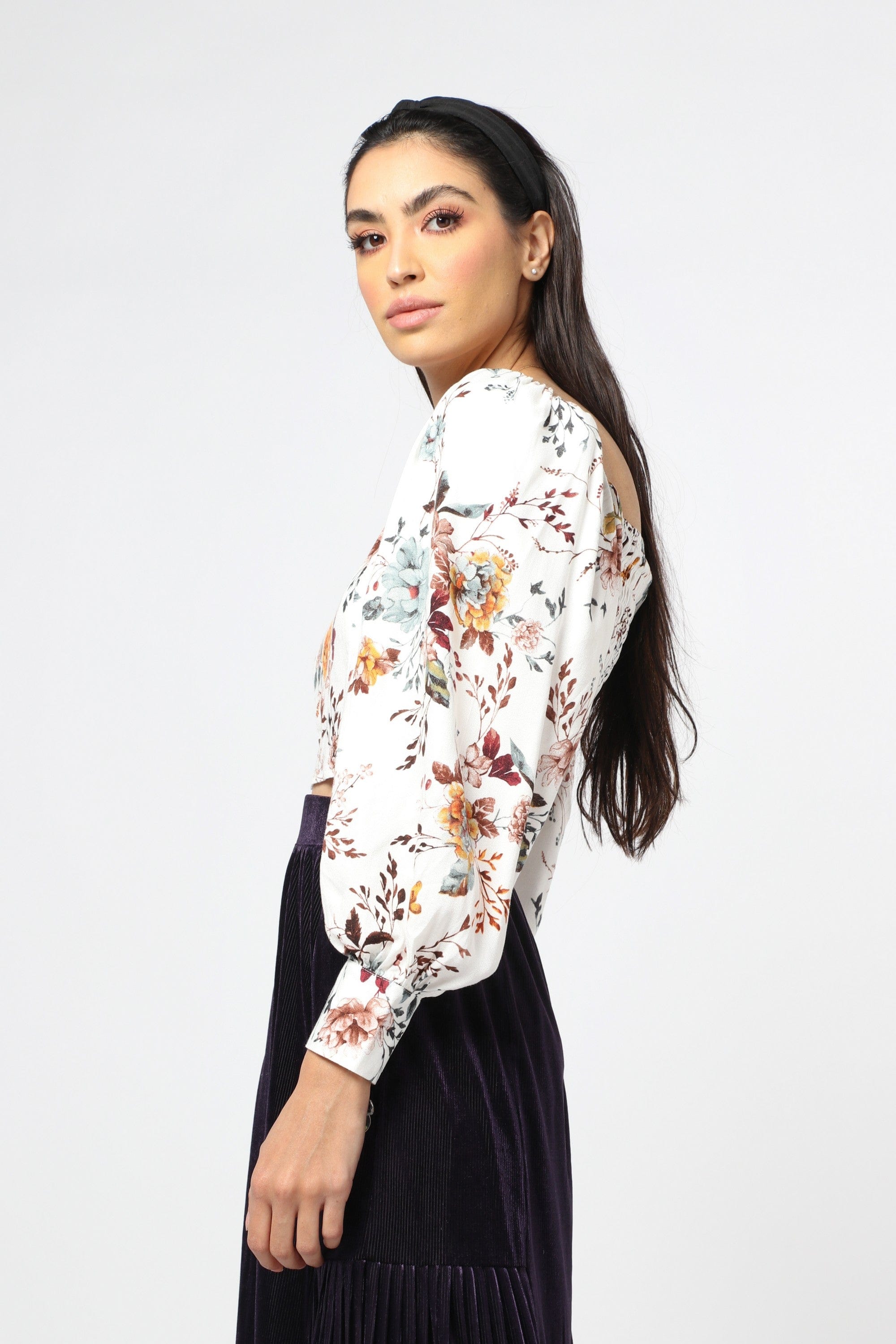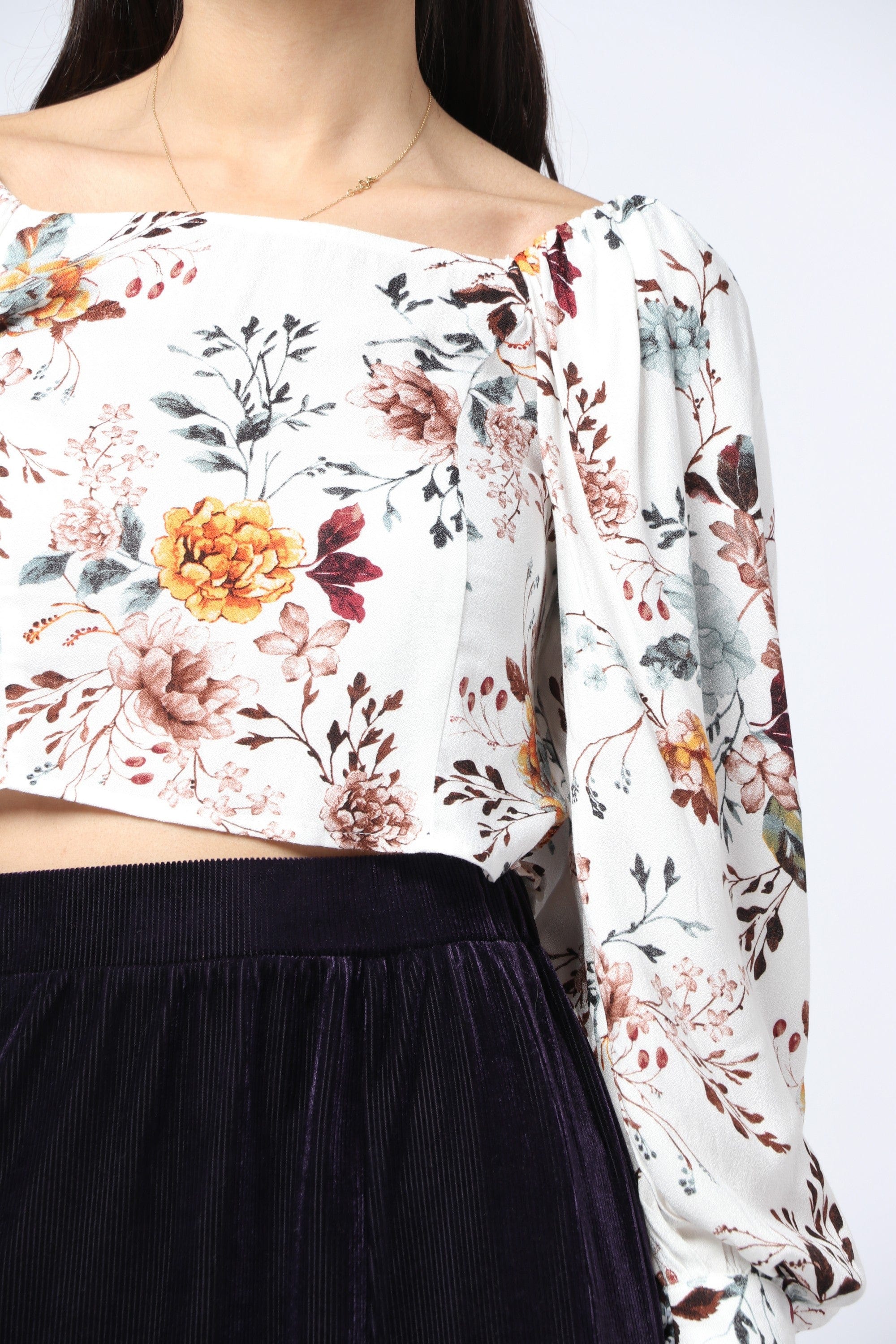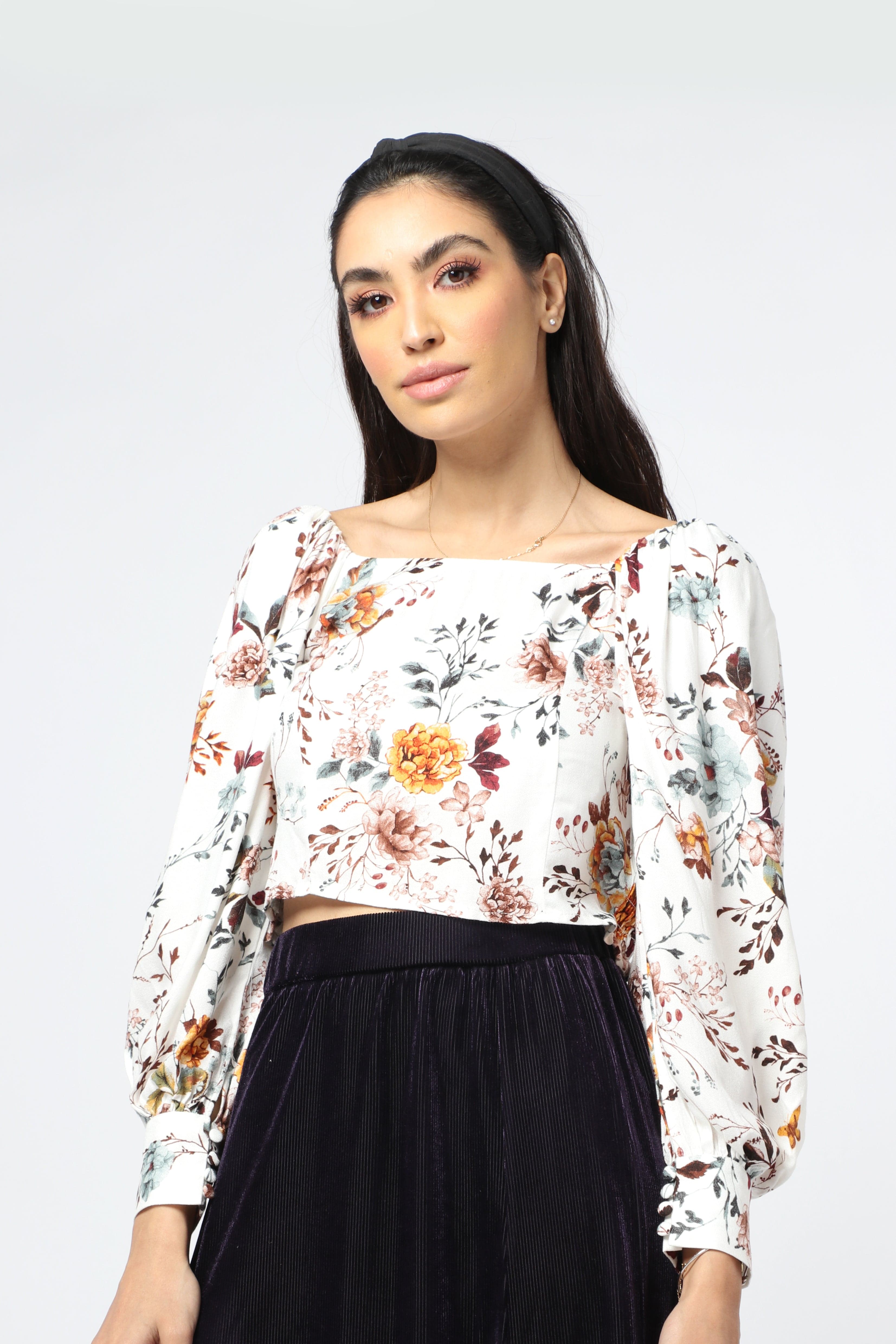 Floral Square-Neck Long-Sleeve Top