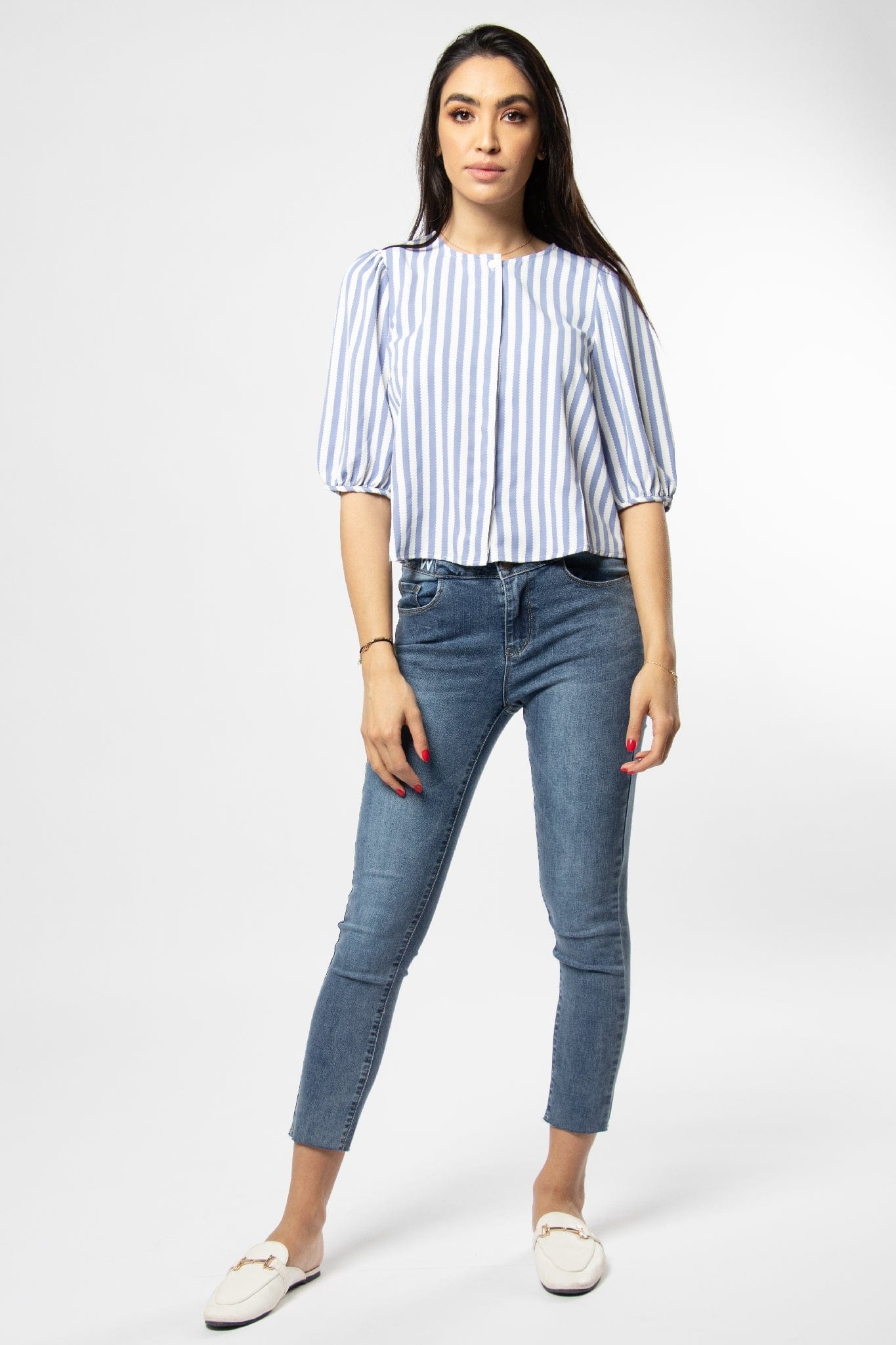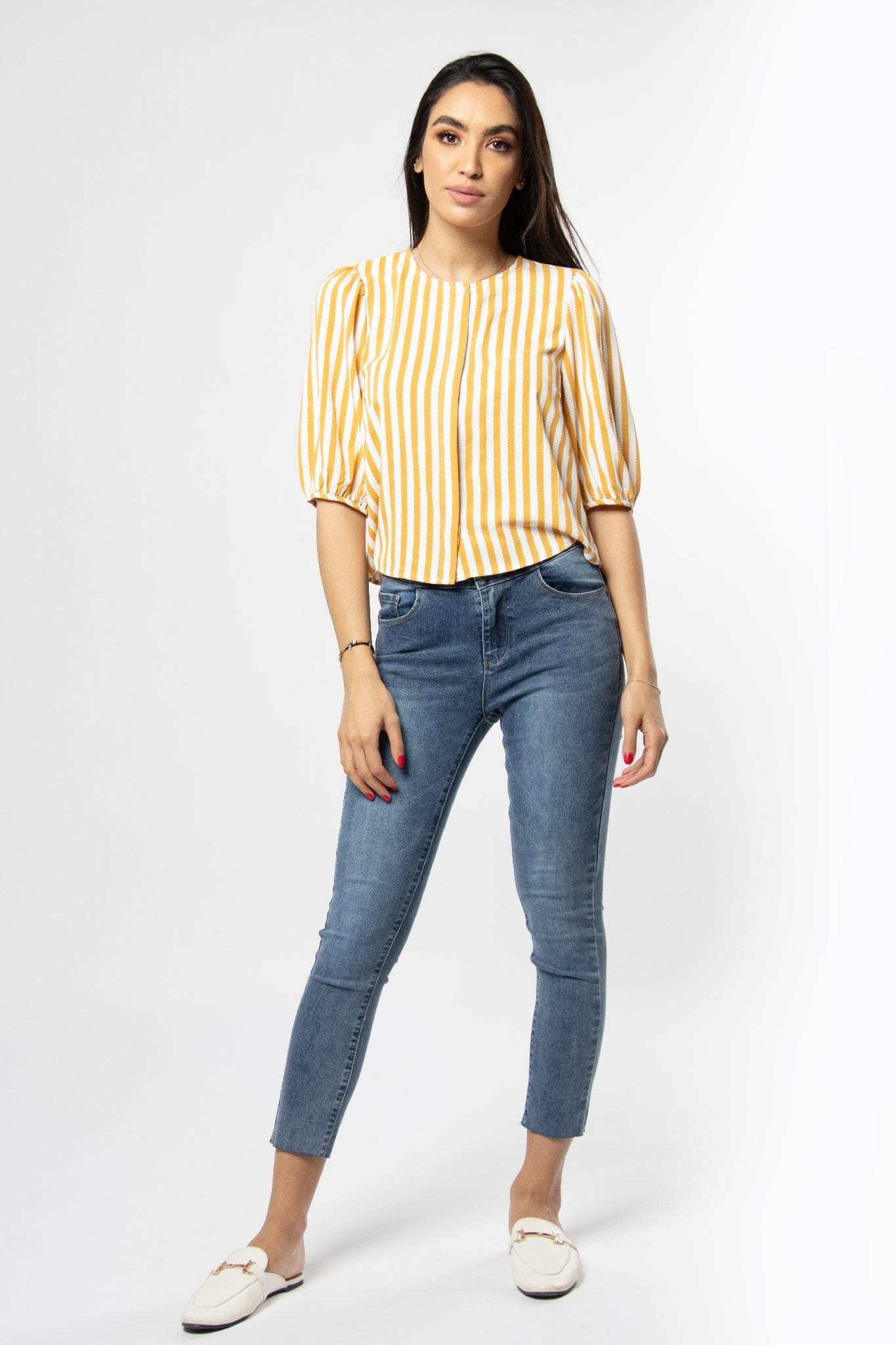 Take back to shine a blouse with short sleeve sleeve circular collar from Mica. This blouse is available in joyful and varied colors, including blue and yellow. This blouse is designed with great elegance and stigmatized to give an aesthetic touch to your look. It features short sleeves to give a modern and bold touch. You can wear it with jeans for a comfortable and modern look at daytime, or with a skirt for a feminine and elegant look on special occasions. Get now on a blouse with short sleeved sleeves from a circular collar from Mica And enjoy unparalleled elegance. Ask now and enjoy the latest fashion from the Saudi Fashion. Product number: mol019621q102
