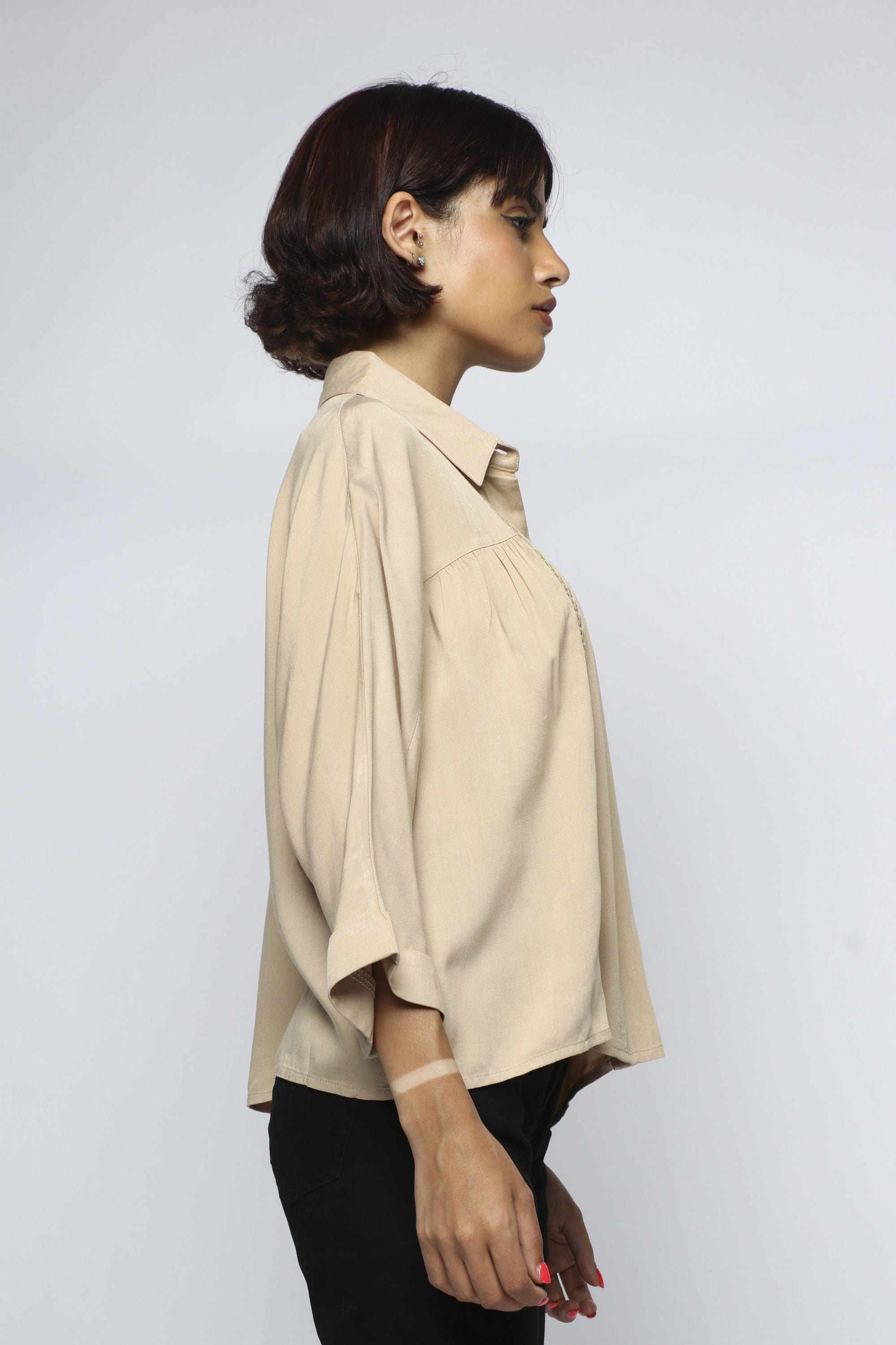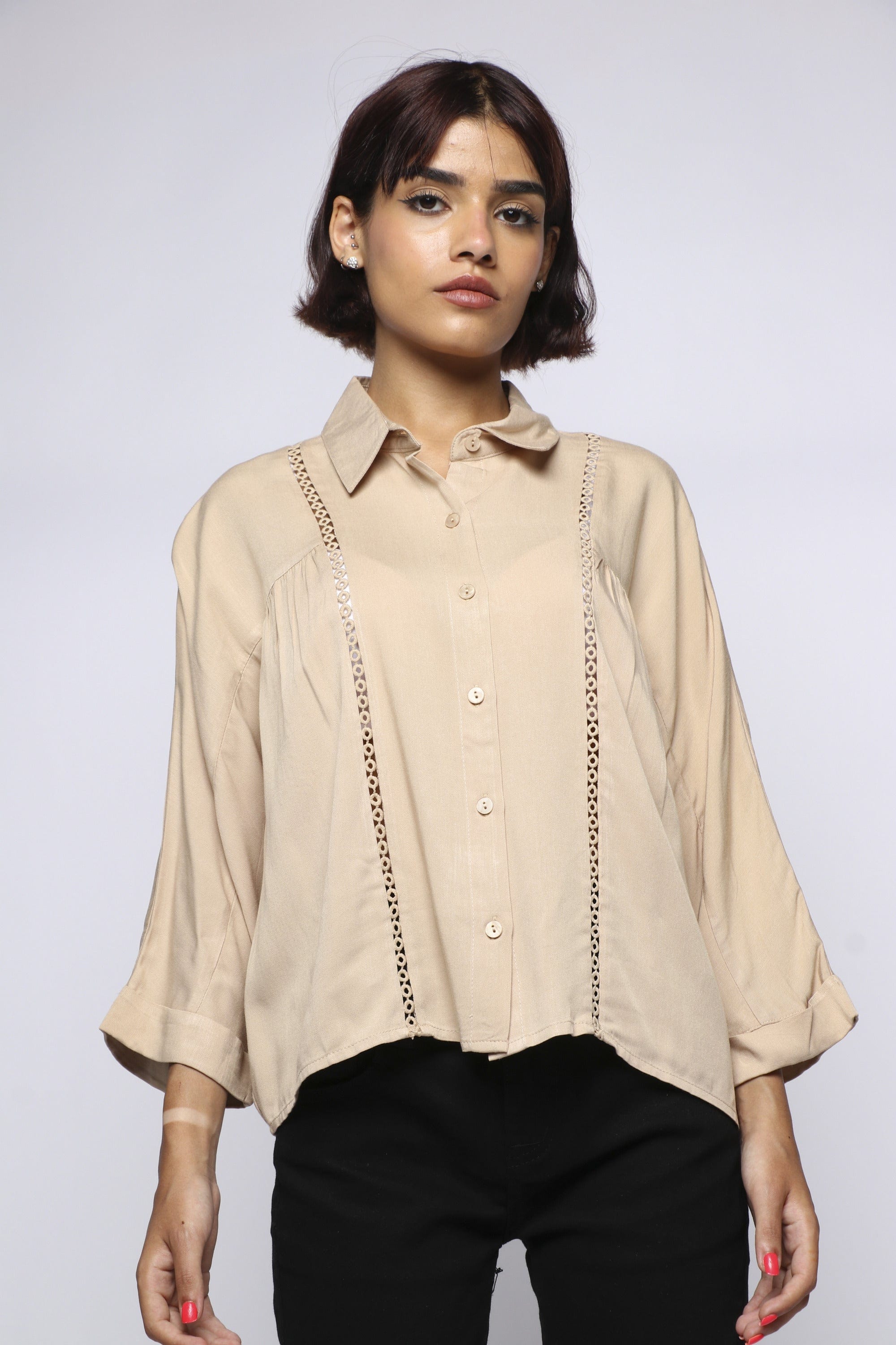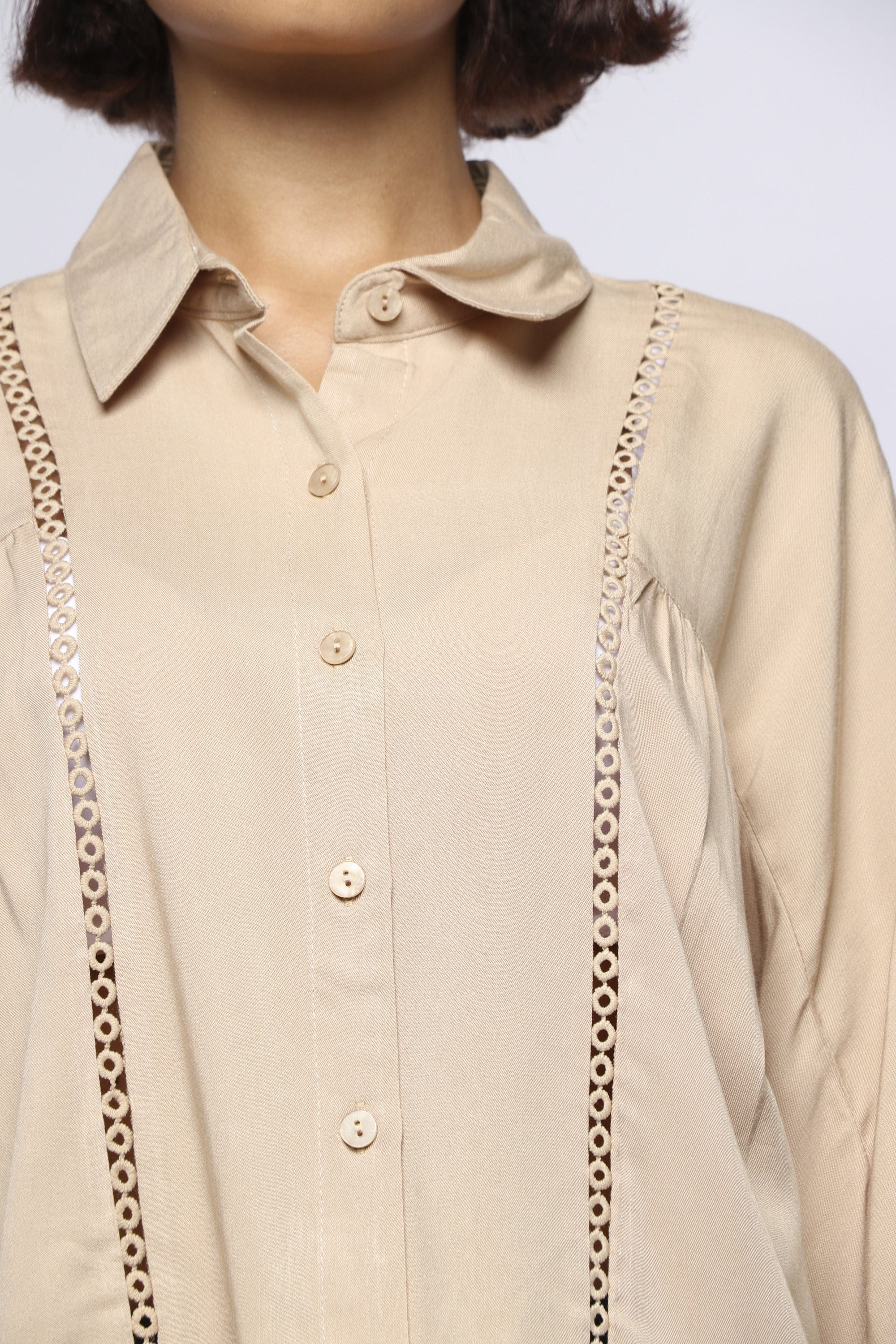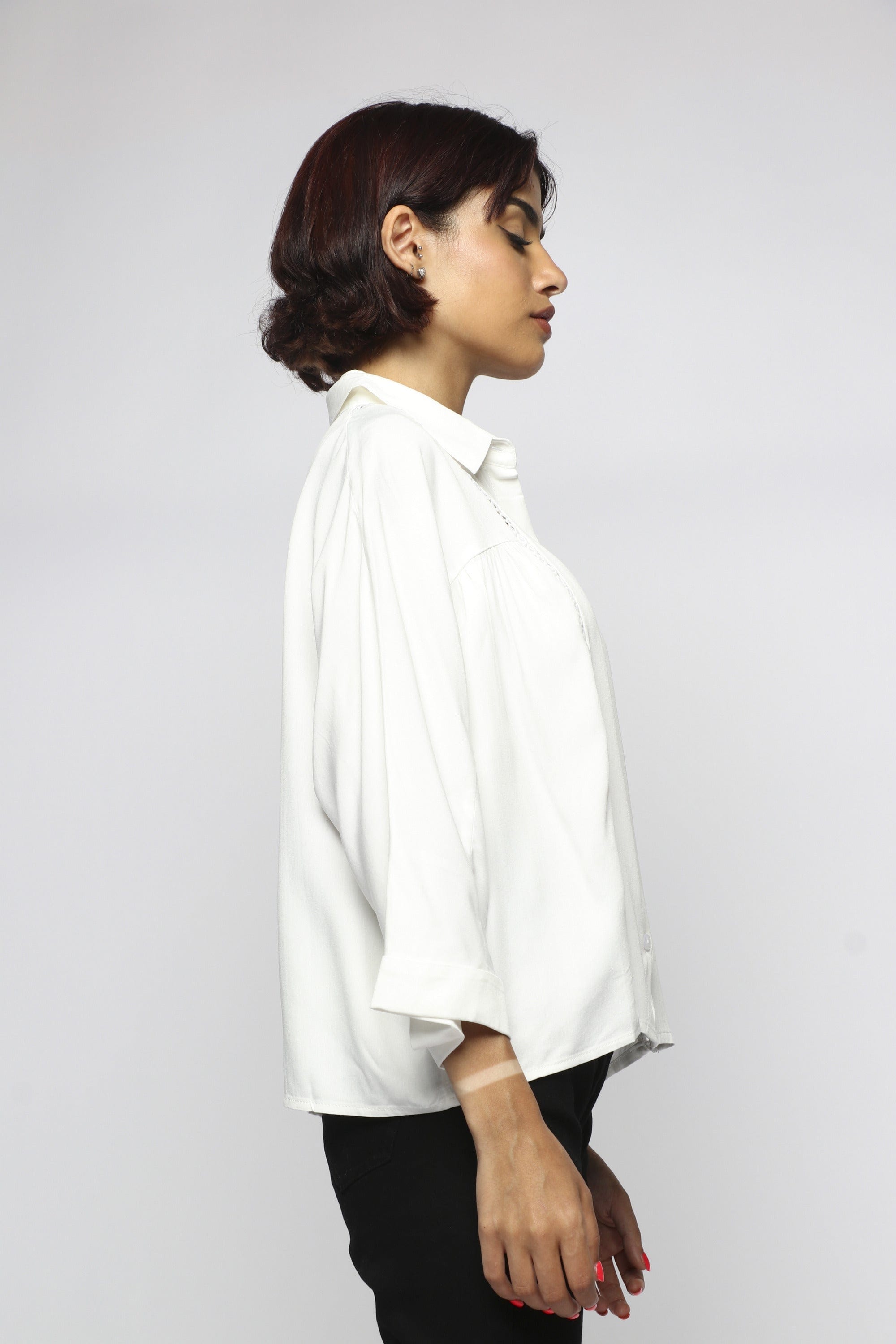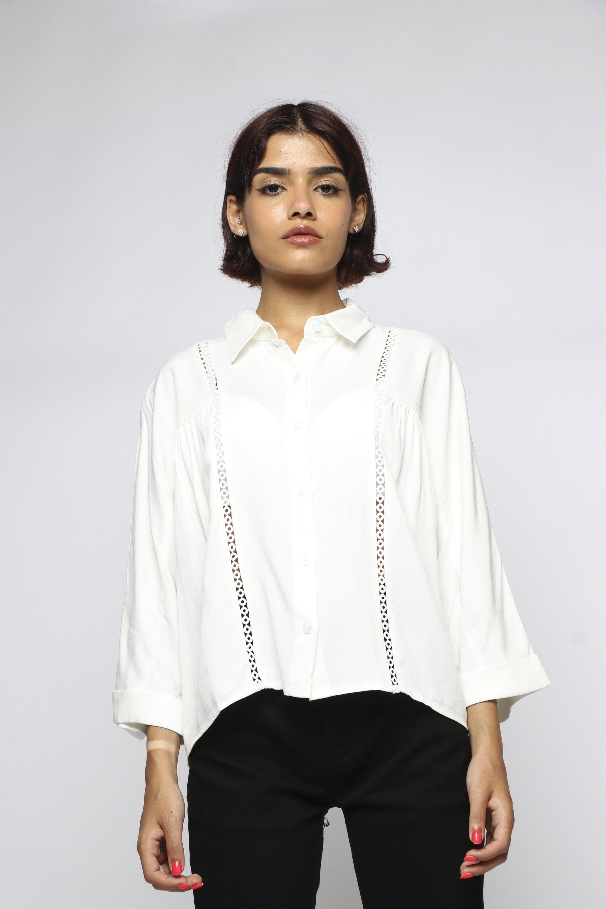 Blouse with front buttons with two perforated lines with a sleeve 3/4