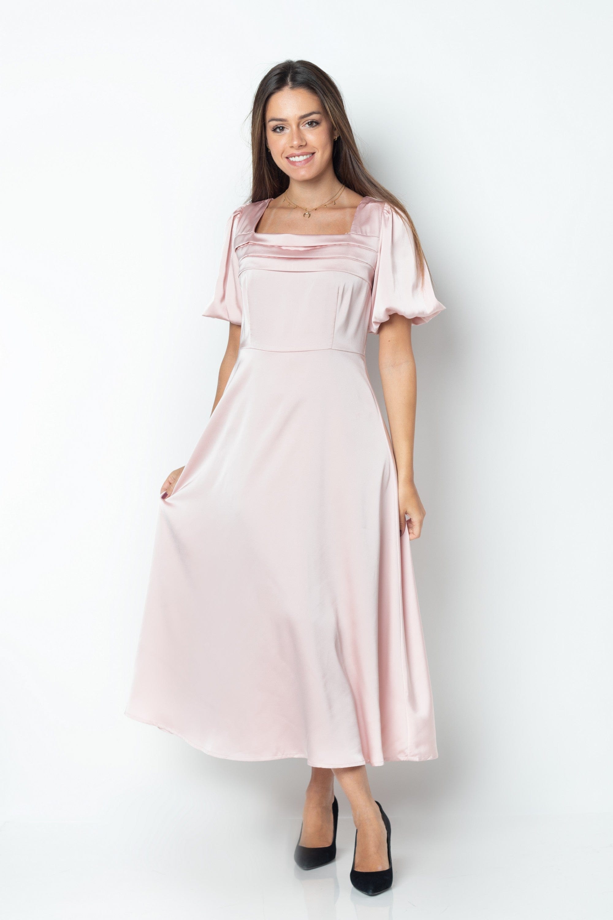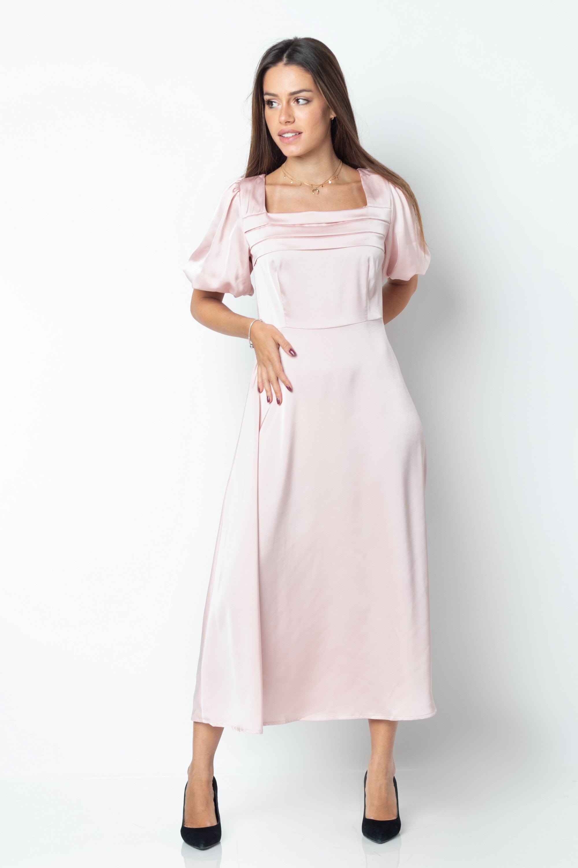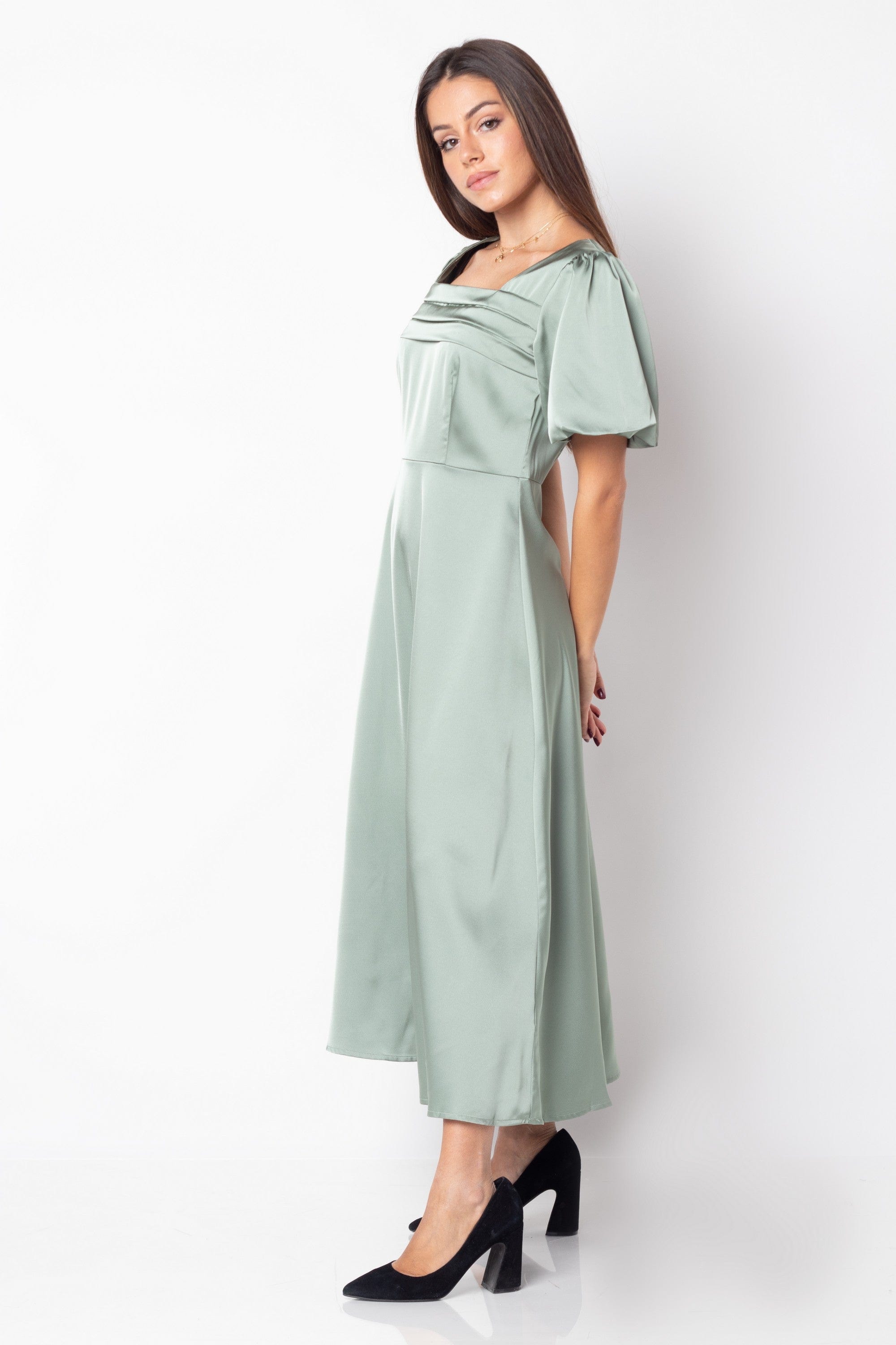 This green plain midi dress is a wardrobe essential that balances effortless style with everyday practicality. Cut in a flattering A-line silhouette from 100% polyester, the regular-fit design skims the waist and falls to a versatile midi length for polished coverage. The clean, unprinted surface and square collar create a modern, minimalist look while short sleeves and medium-weight fabric make it suitable across seasons. Unlined and pocketless for a sleek profile, the polyester composition delivers wrinkle-resistant wear and easy-care performance — perfect for busy days. Wear it casually with sneakers and a denim jacket, or dress it up with heels and a lightweight blazer for meetings or dinners. Discover this versatile piece at Fashion SA and add a dependable, stylish staple to your rotation today.