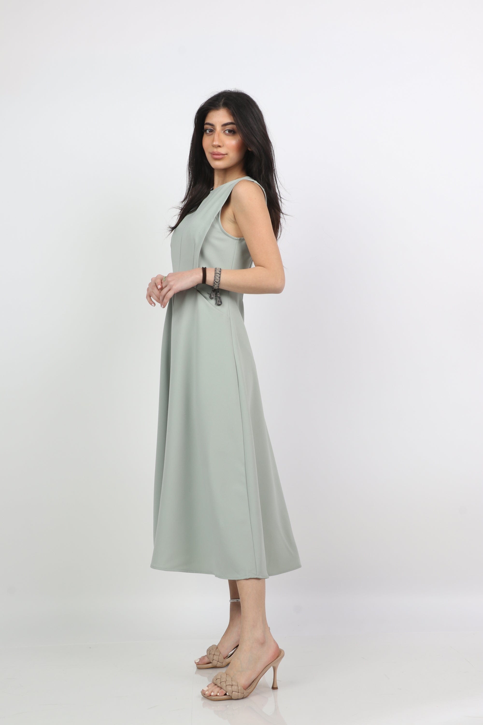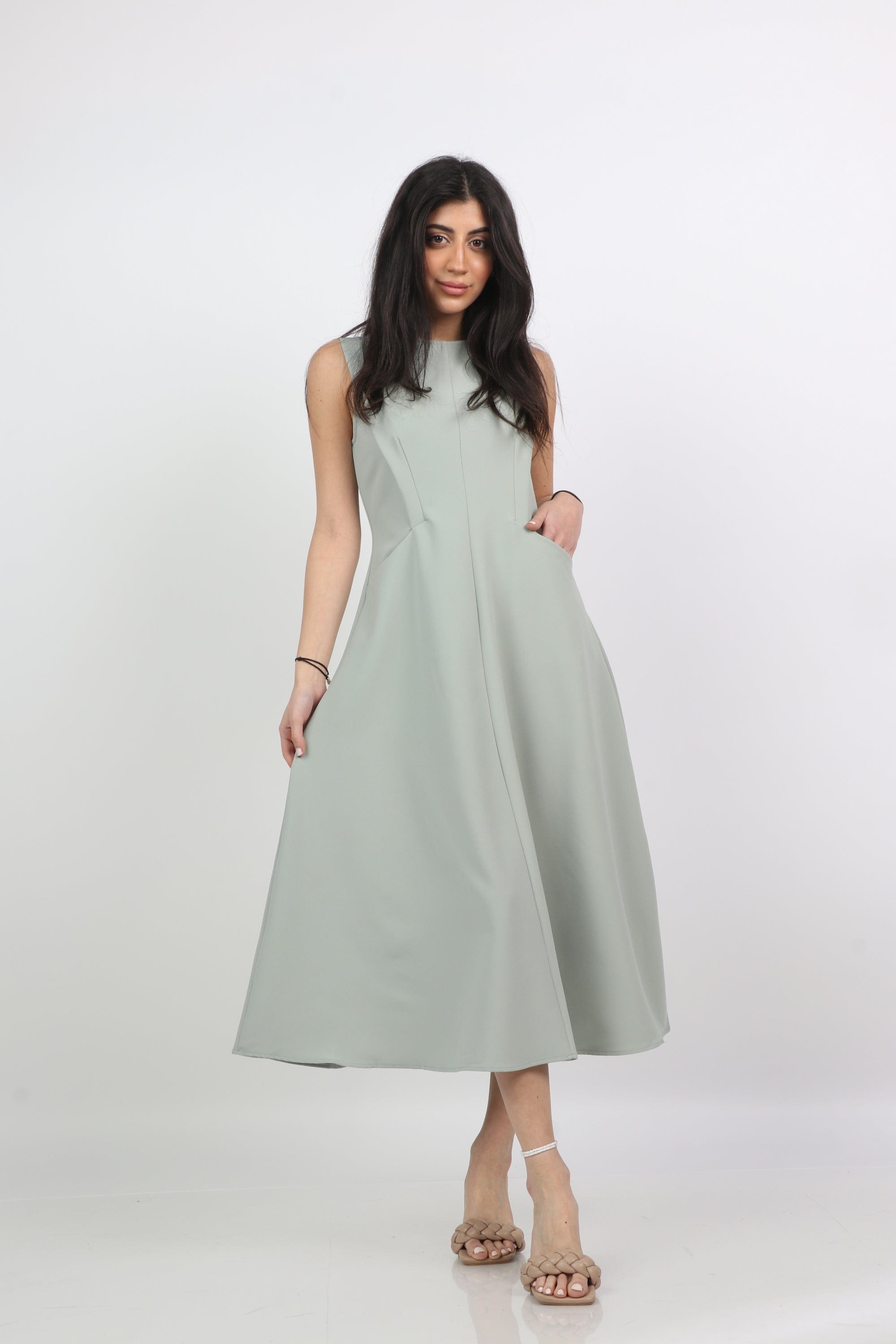 This Green Plain Midi Sleeveless Dress is a modern wardrobe essential that balances effortless style with practical comfort. The A-line silhouette skims the waist into a flowing midi hem for flattering movement, while the round neck and sleeveless cut keep the look clean and breathable. Crafted from 95% polyester and 5% elastane, the fabric offers wrinkle-resistant durability with gentle stretch for easy wear and a regular fit that flatters most shapes. Unlined for lightweight comfort and finished in a versatile plain green, it includes hidden pockets for discreet convenience. Medium-thickness construction makes it suitable across seasons for casual days, weekend brunches or travel. Easy to dress up or down, this beltless piece pairs with sneakers or strappy sandals for instant polish. Discover understated versatility at Fashion SA — add this wardrobe staple to your cart today.