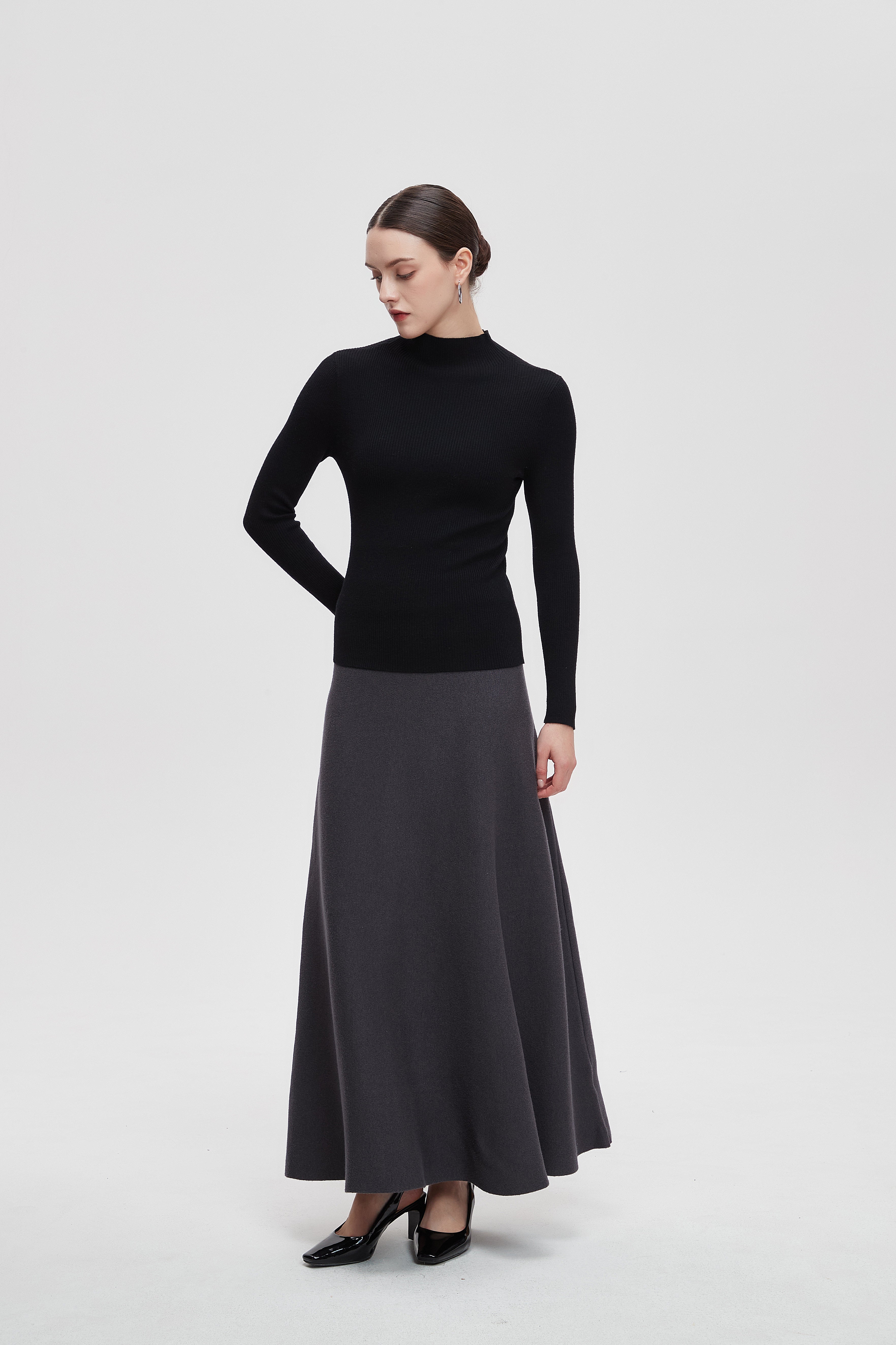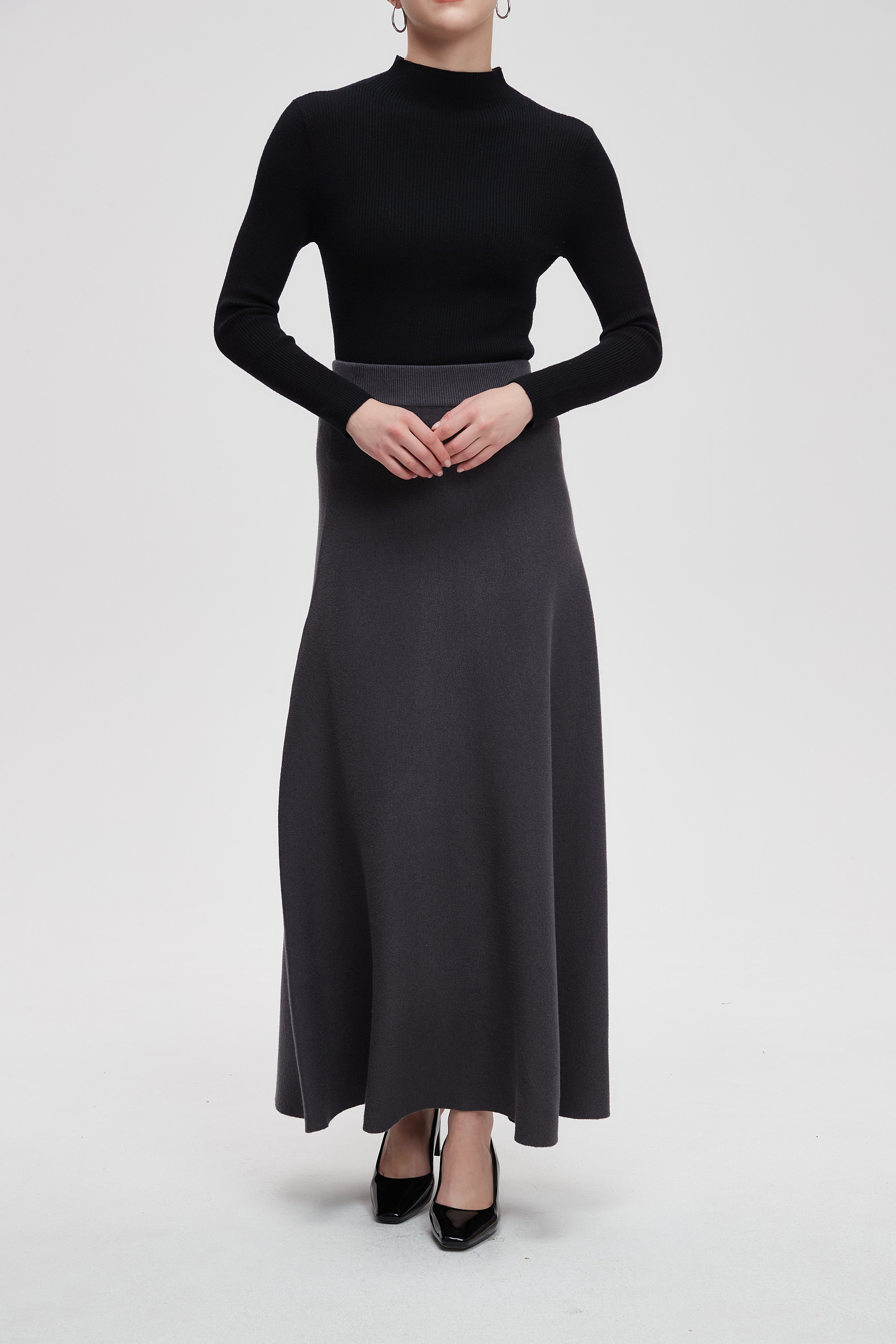 Solid Long Skirt with Wide Cut