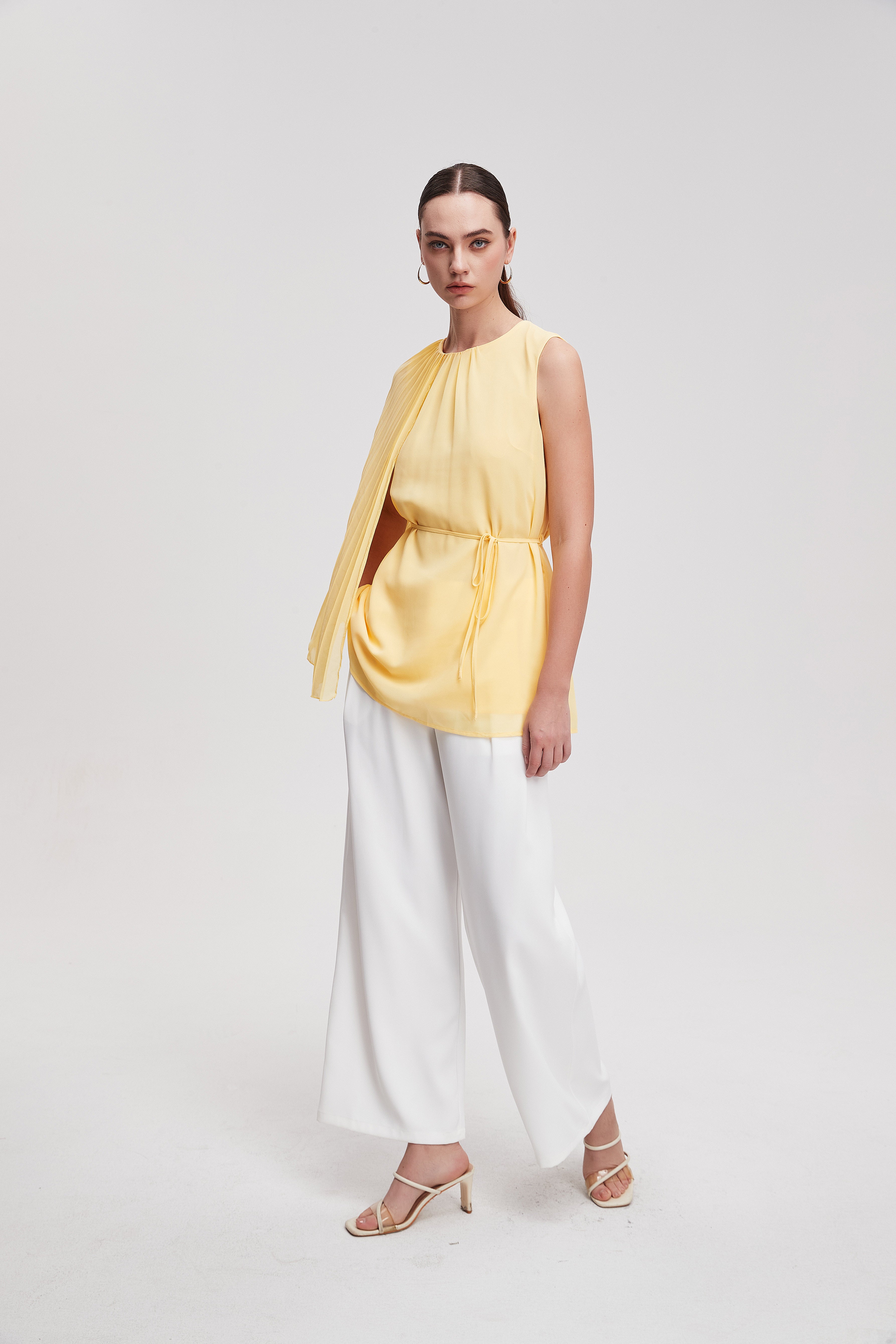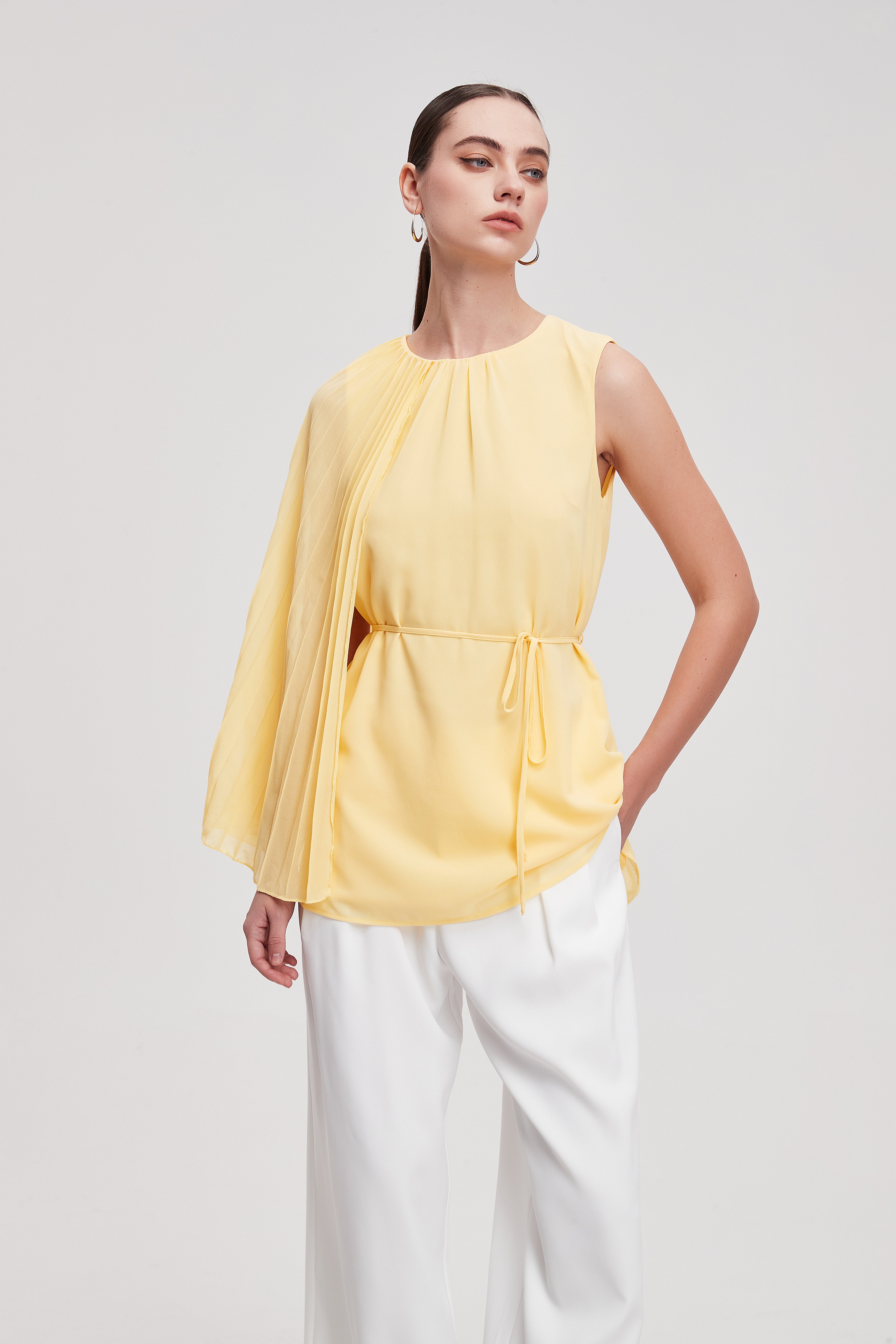 Crafted from 100% premium polyester, this fabric is renowned for its durability and resistance to wrinkles, making it an ideal choice for busy lifestyles. The material offers excellent color retention, ensuring the vibrant yellow shade remains bright wash after wash. Smooth and lightweight, the matching polyester lining adds an extra layer of quality, providing a soft touch against the body while maintaining the garment's structured shape.