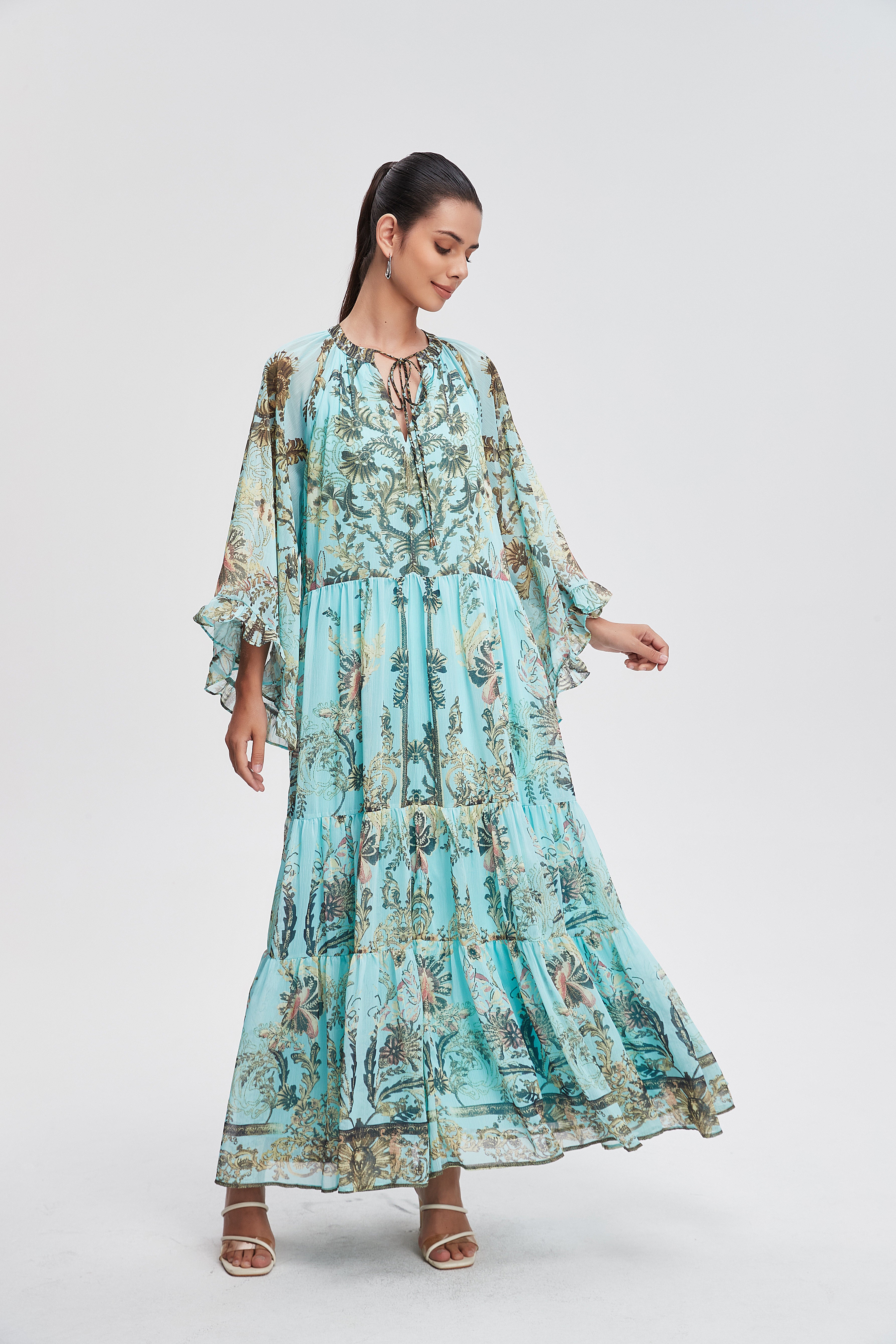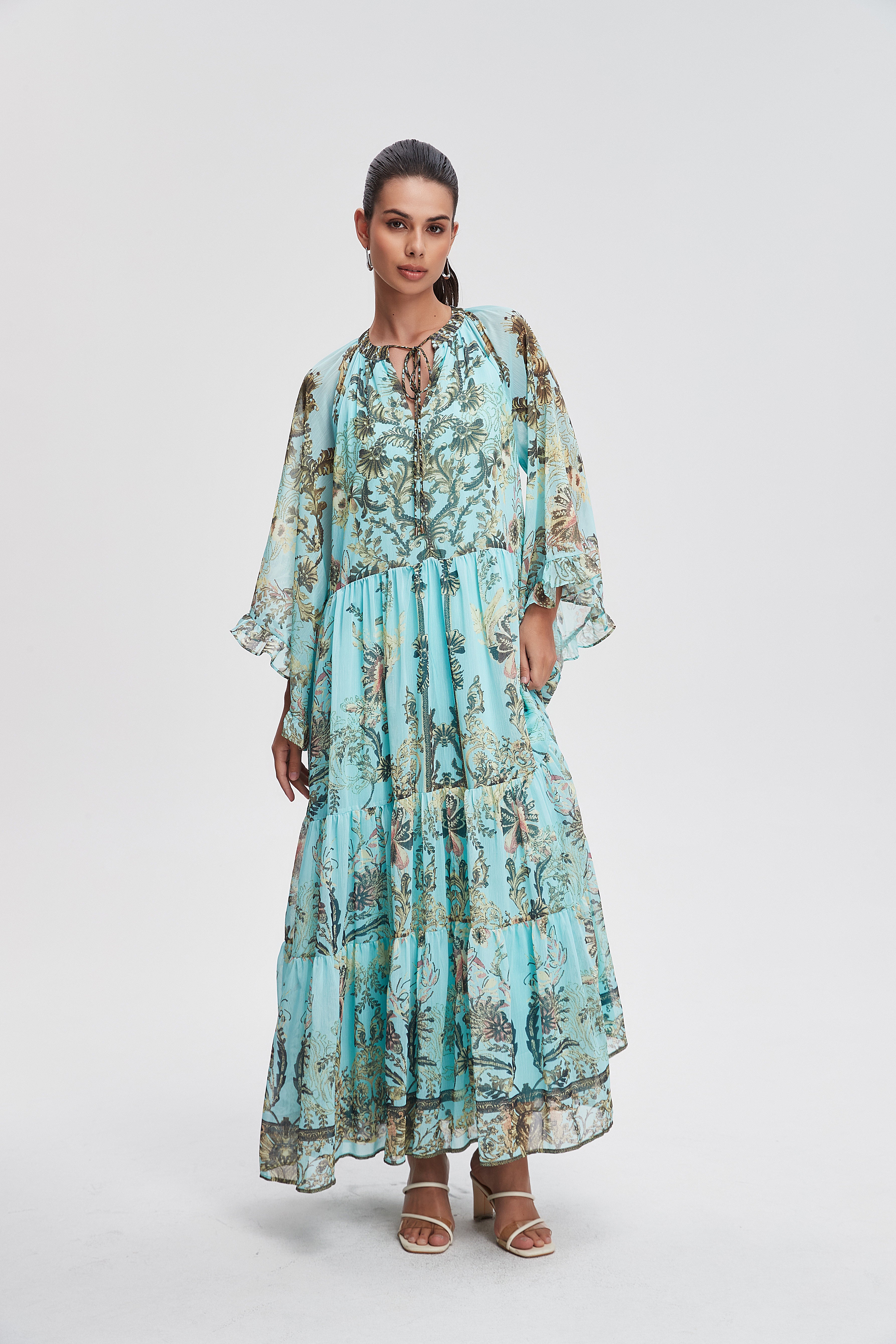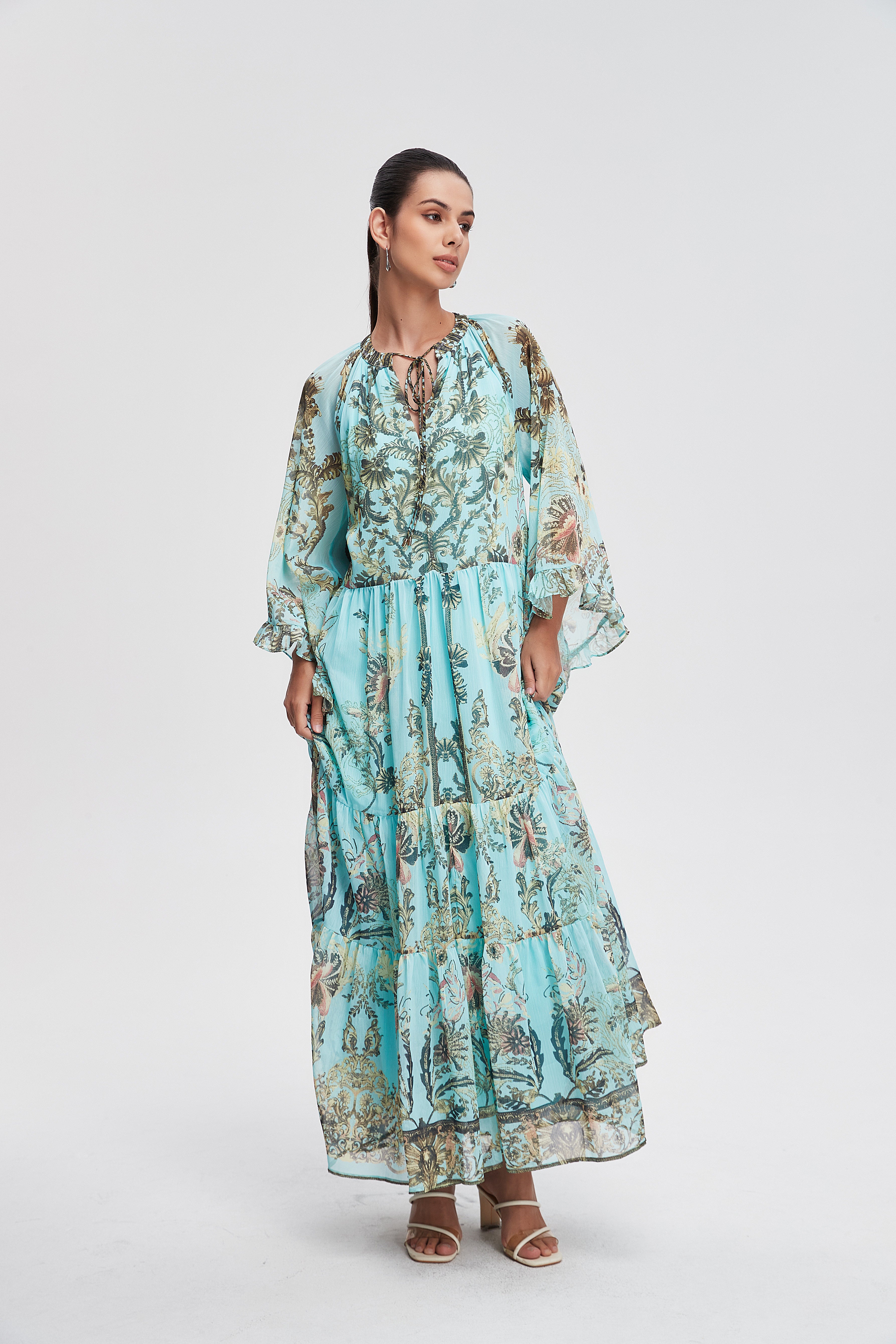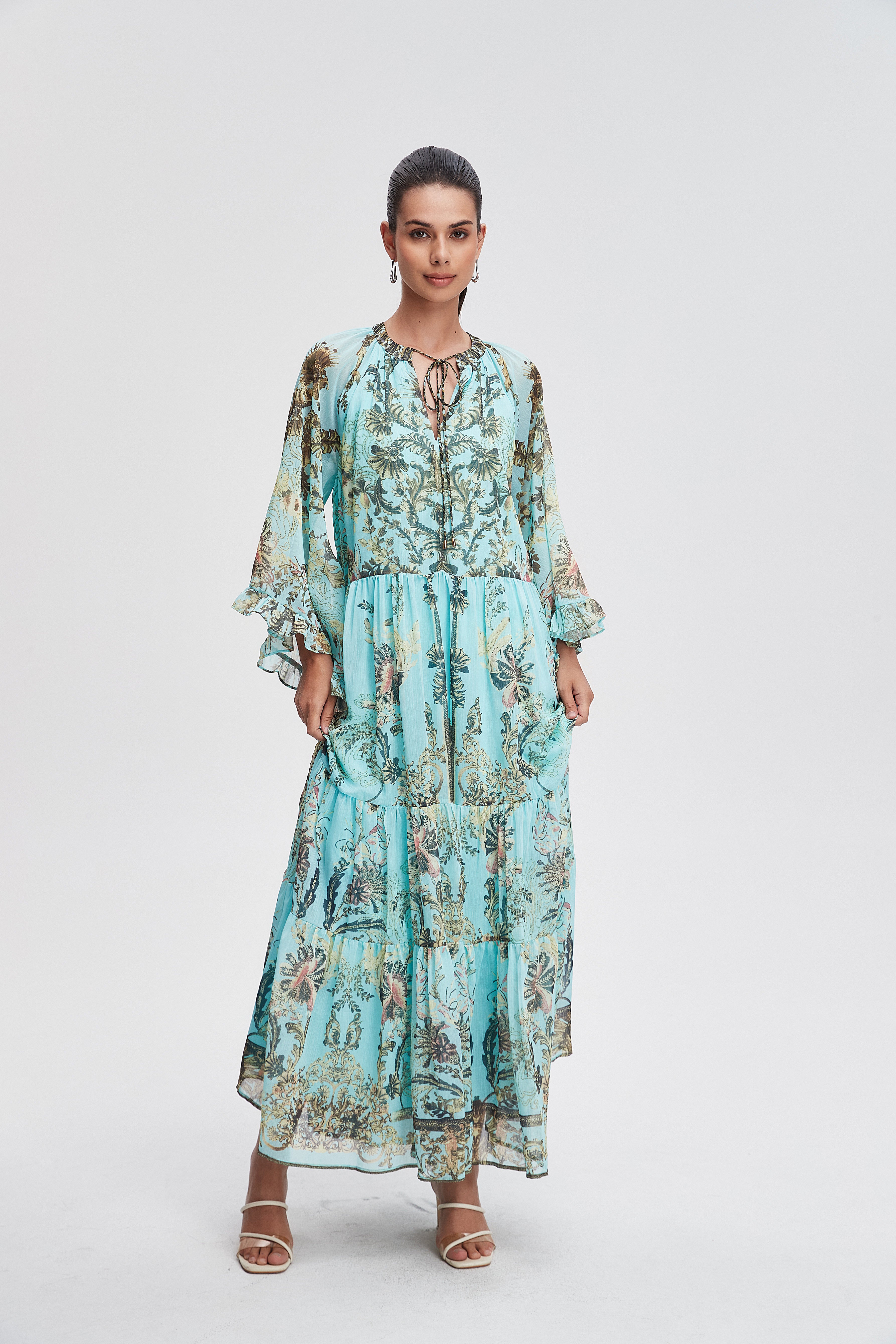 Unveil your style with the Long Printed Dress with Long Sleeves, a perfect blend of comfort and elegance. This stunning dress features a beautiful print that captures attention while offering a flattering silhouette for all body types. The long sleeves provide warmth and sophistication, making it a versatile choice for any occasion, from casual outings to special events. Made from soft, breathable fabric, it ensures you feel as great as you look. Product Number: nh26q1l3125