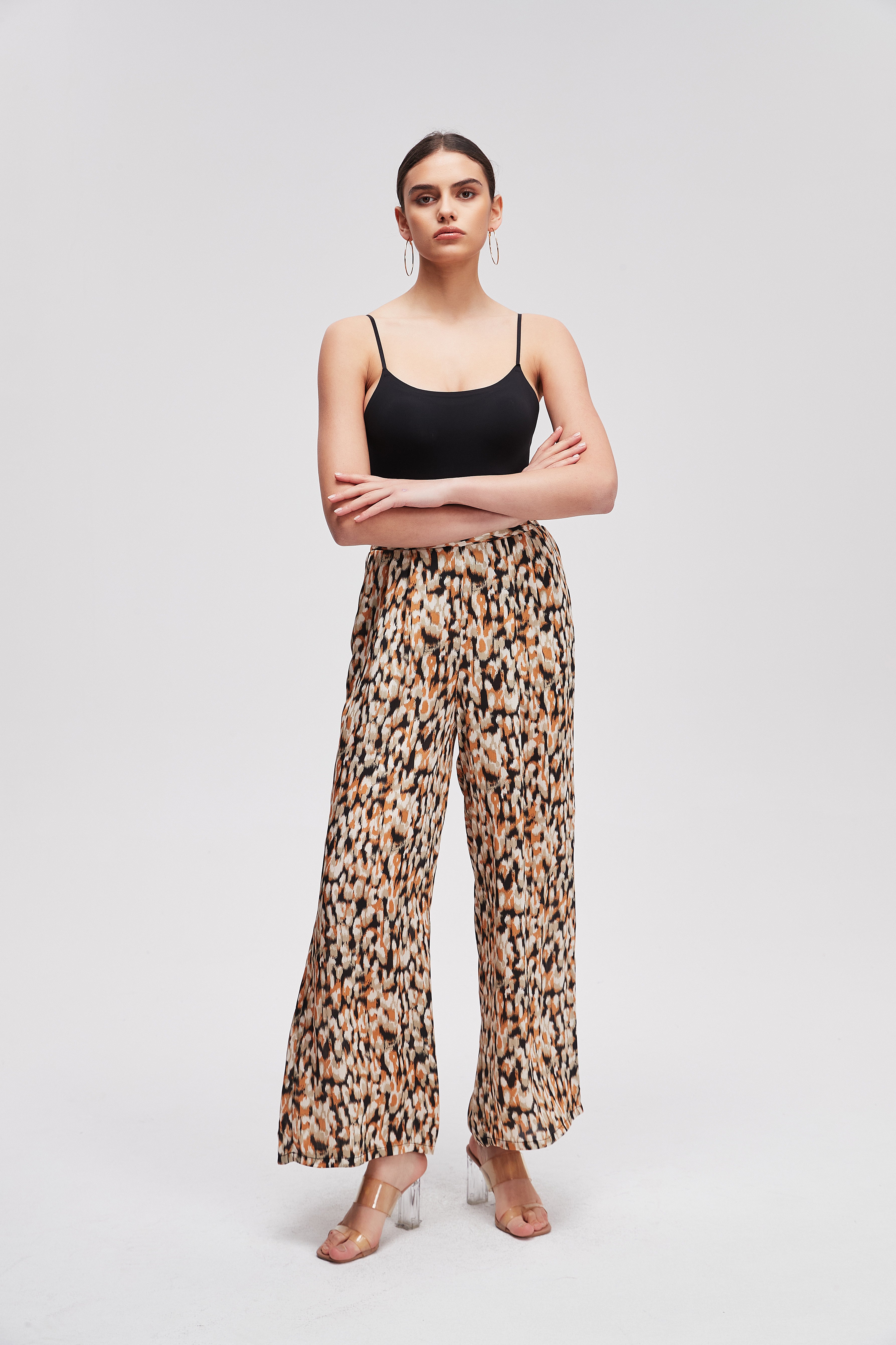 Unleash your style with our chic Print Wide-Leg Trousers, designed for the modern woman who values comfort and flair. These trousers feature a playful print that adds a touch of personality to any outfit. The wide-leg cut offers a relaxed fit, making them perfect for both casual outings and more polished occasions. Crafted with breathable fabric, they provide all-day comfort without compromising on style. Pair them with your favorite top for an effortlessly fashionable look. Product Number: nh26q1lc2664s