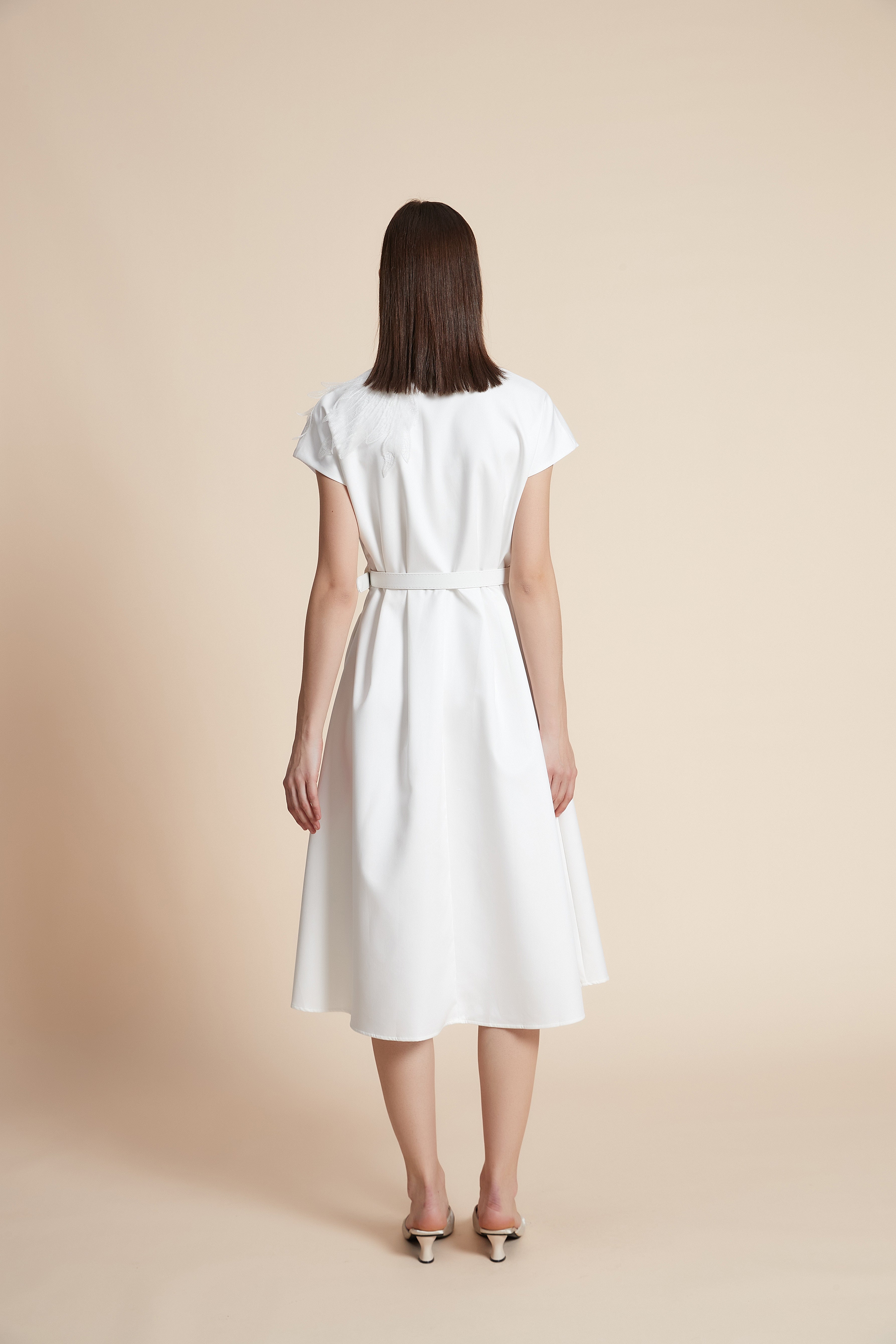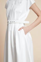 Solid Short Sleeve Midi Dress with Belt