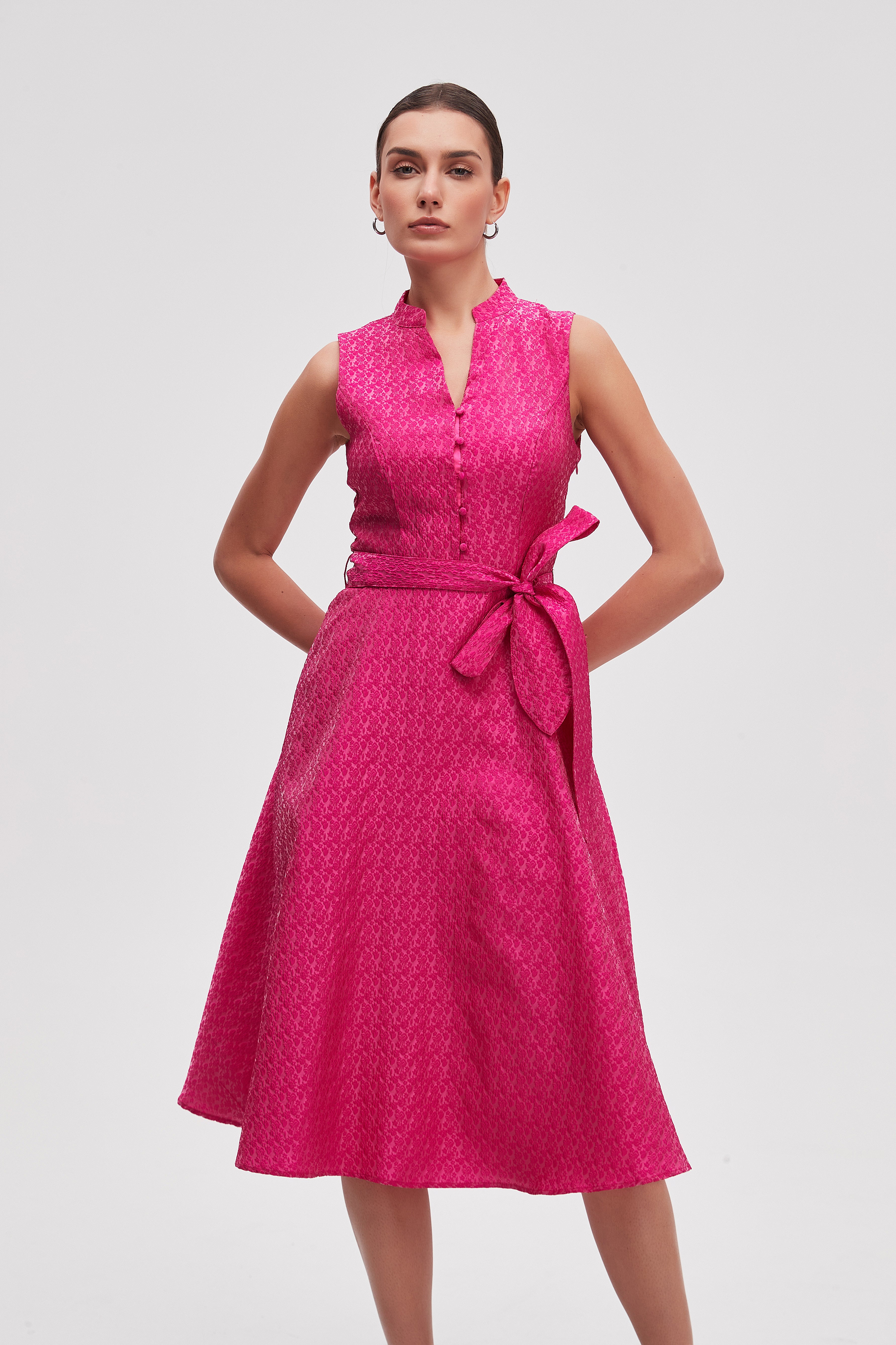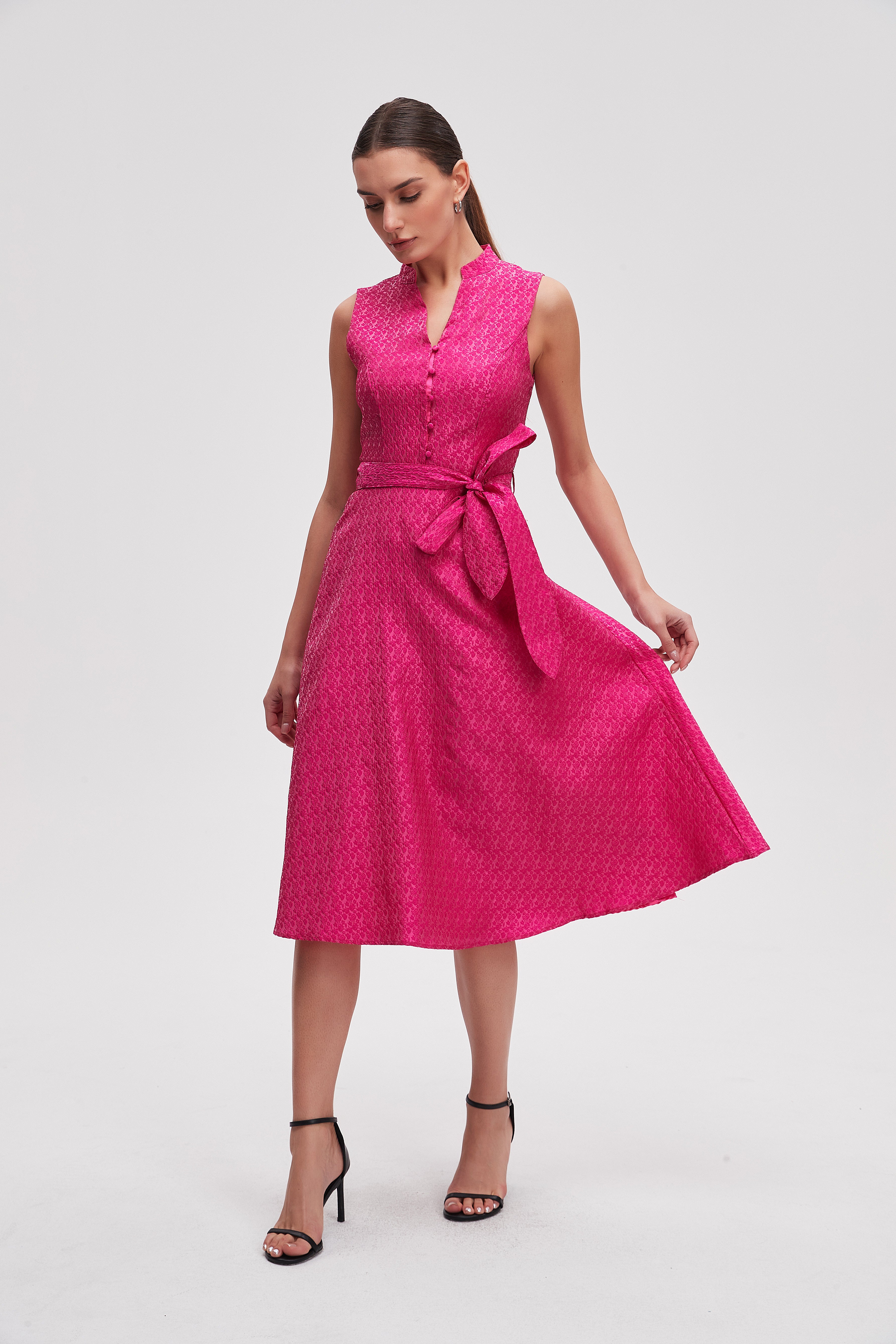 Unleash your inner style with our Printed Sleeveless Midi Dress with Belt, a perfect blend of comfort and elegance. This dress features a vibrant tapestry of colors that draws inspiration from the beauty of a summer landscape. The intricate design effectively captures attention, making it a pivotal piece in your wardrobe. The included belt ensures a flattering silhouette while allowing you to showcase your unique flair. Product Number: nh26q1ll041