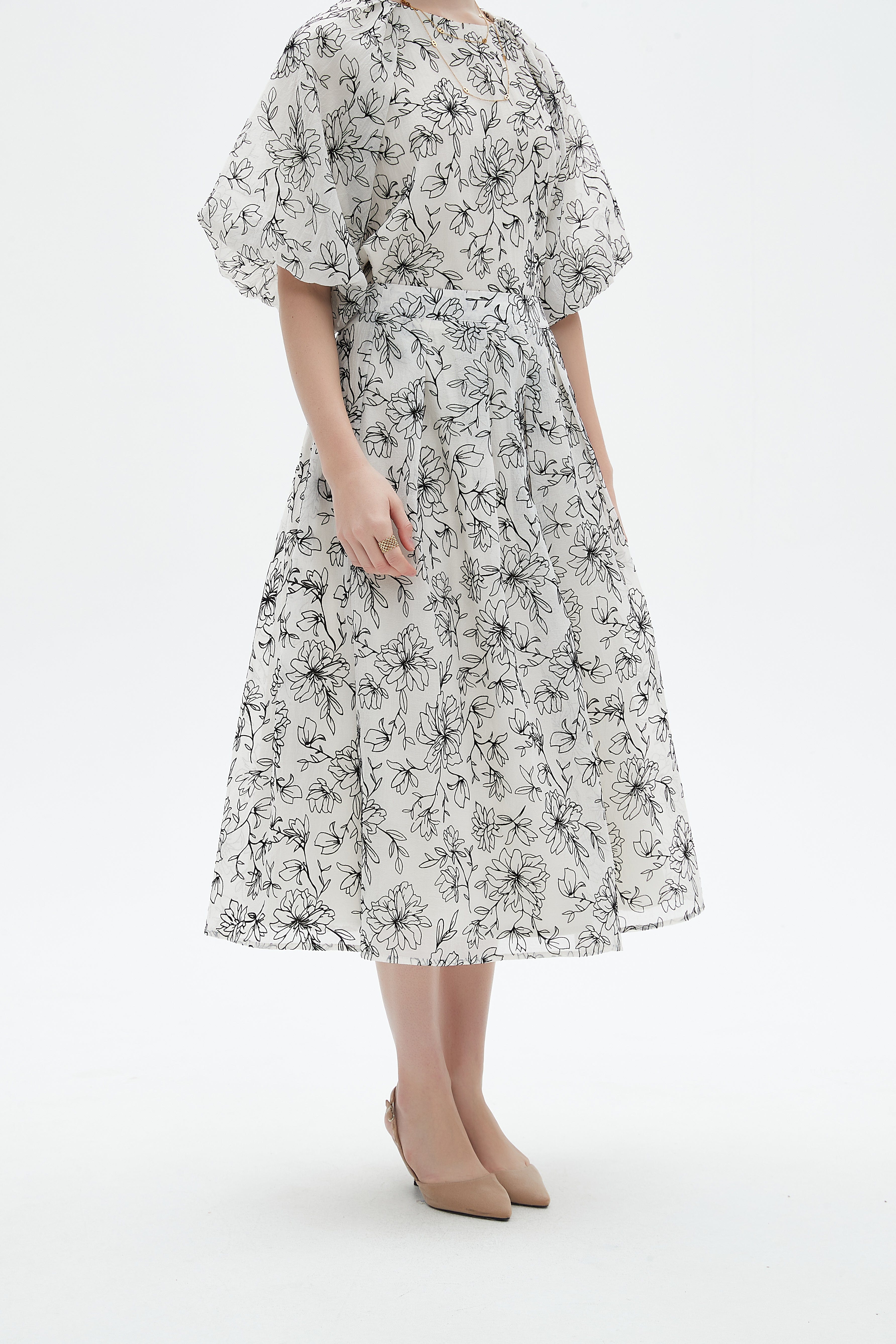 Embrace the charm of effortless style with the Ruffled Floral Midi Skirt by Nichii. This delightful piece features a lovely floral pattern that dances with every step, making it the perfect choice for both casual outings and special occasions. The ruffled hem adds a playful touch, enhancing your silhouette while providing comfort and movement. Pair it with a simple top and your favorite sandals for a fresh daytime look, or dress it up with heels for a night out. Don't miss out on this versatile wardrobe staple—order yours today through Fashion Saudi! Product Number: ol252st25q202