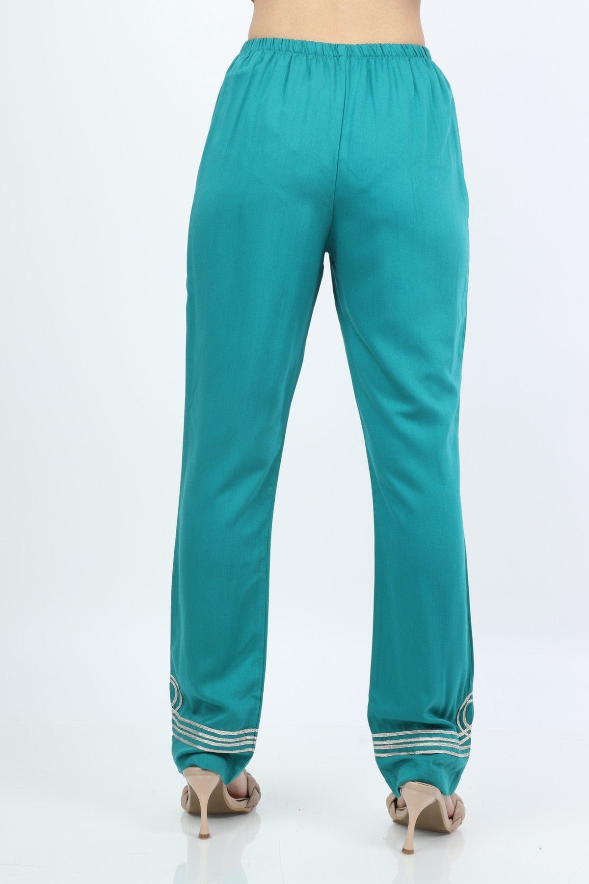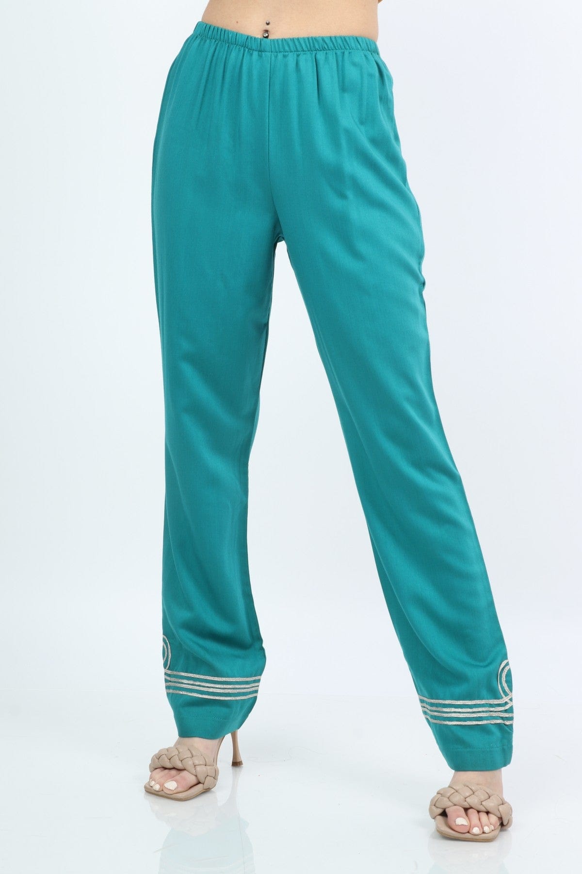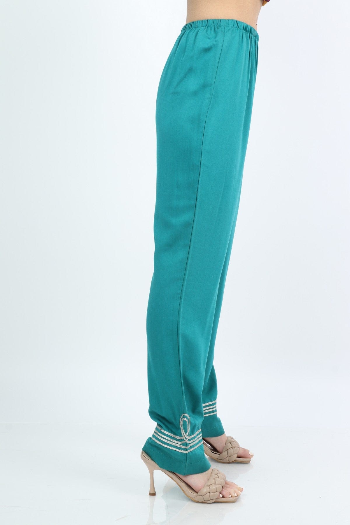 Get ready to shine with plain trousers embroidered at the bottom in a chic and sophisticated design from Diamantine. These trousers are available in three different colours including Dark Purple, Black and Green. Designed with a high-quality fabric that's super comfortable, these trousers feature beautiful embroidered details on the underlegs. This design adds a unique touch of beauty and elegance to your look. Wear these trousers for formal occasions or everyday use, as they add a touch of elegance and femininity to your look. Get now plain embroidered trousers from the bottom in a variety of colors from Fashion Saudi Arabia and get ready to shine with your own elegance. Order now! Manufacturer No: PT124HU