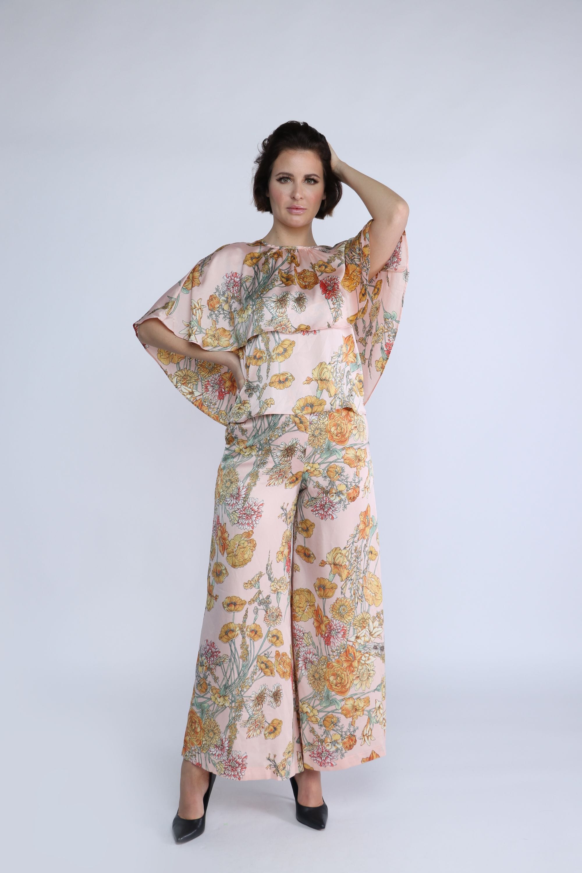 Floral Butterfly Half-Sleeve Top
