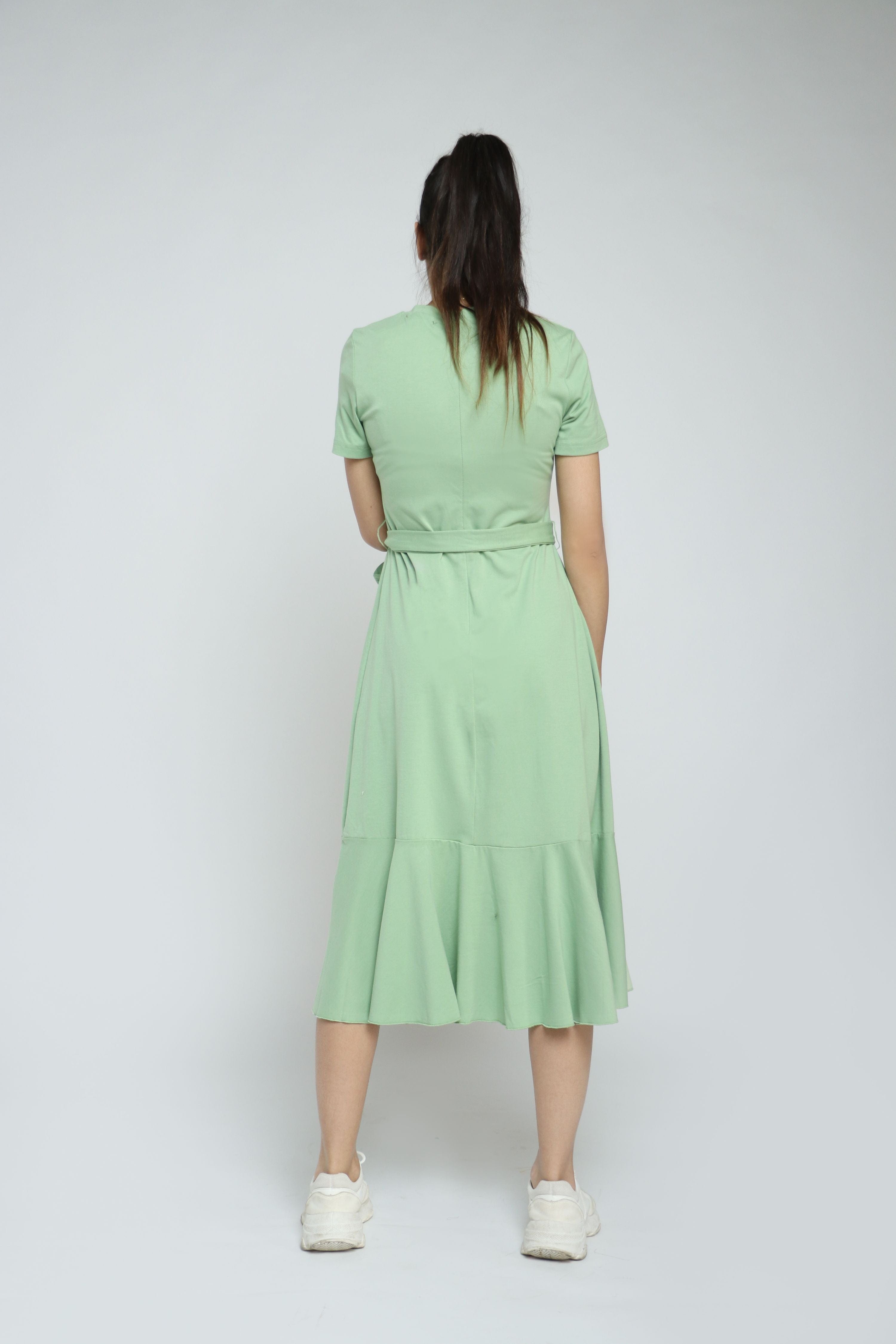 Solid Midi Dress with Short Sleeves